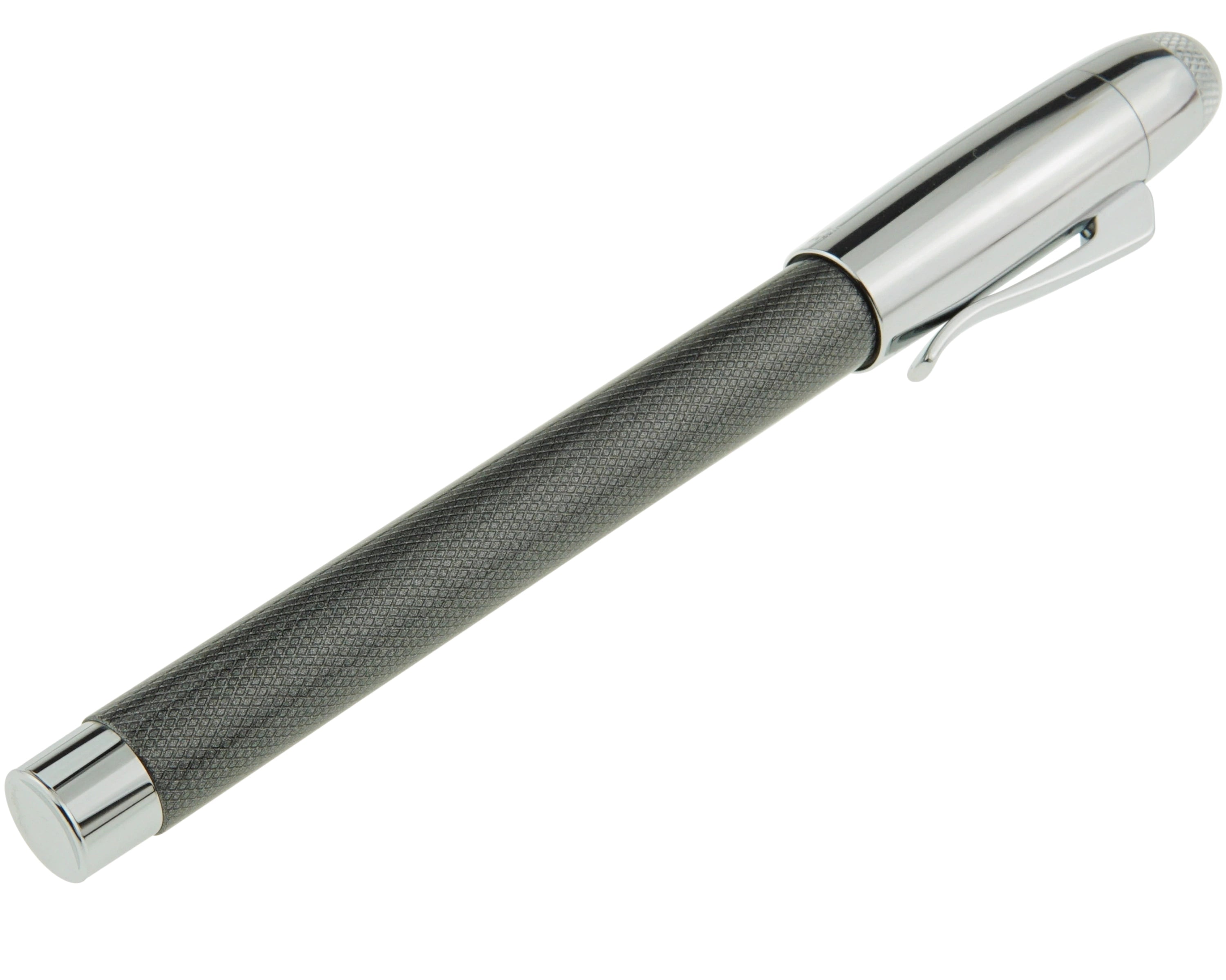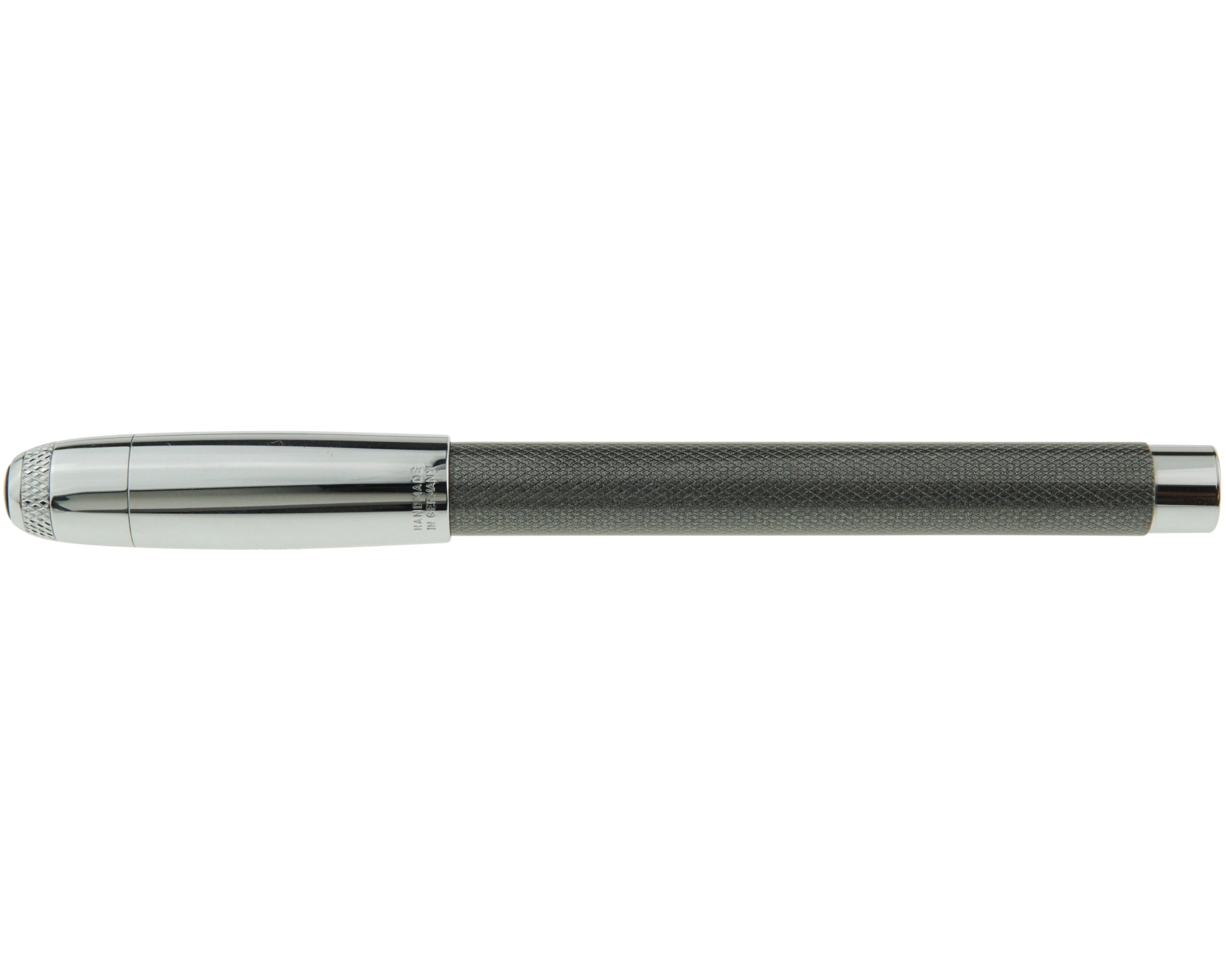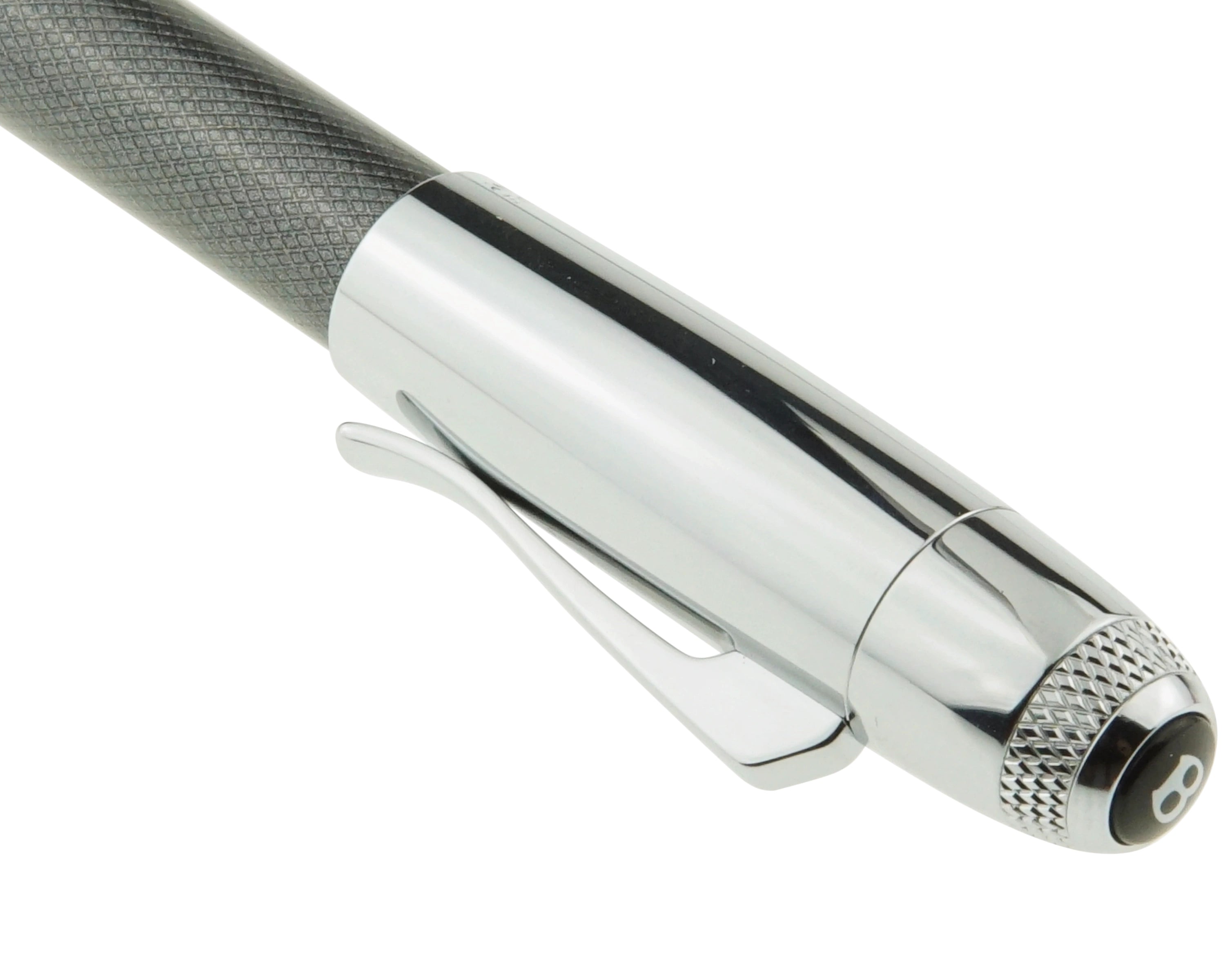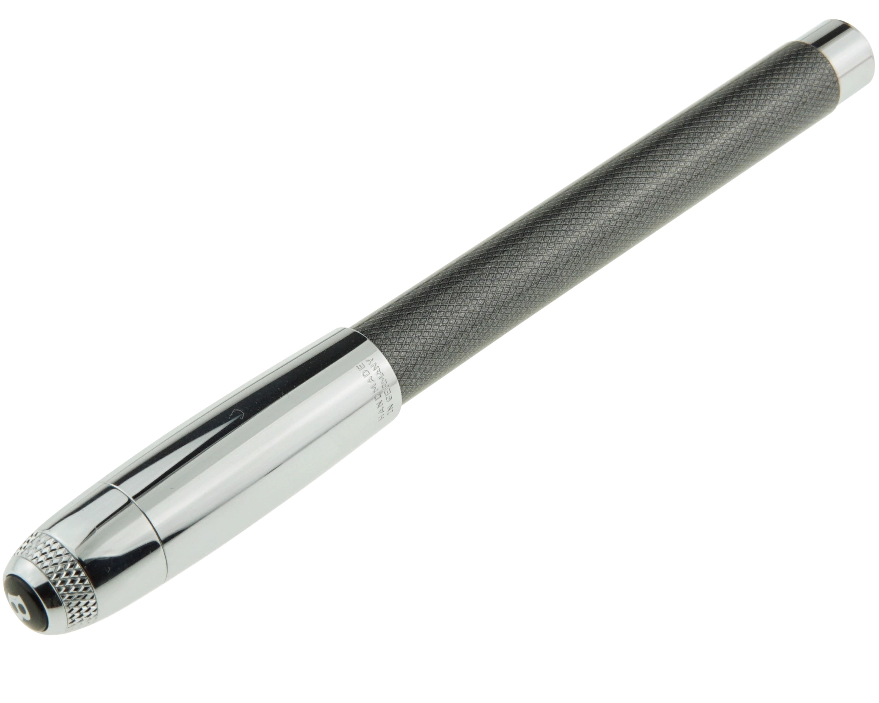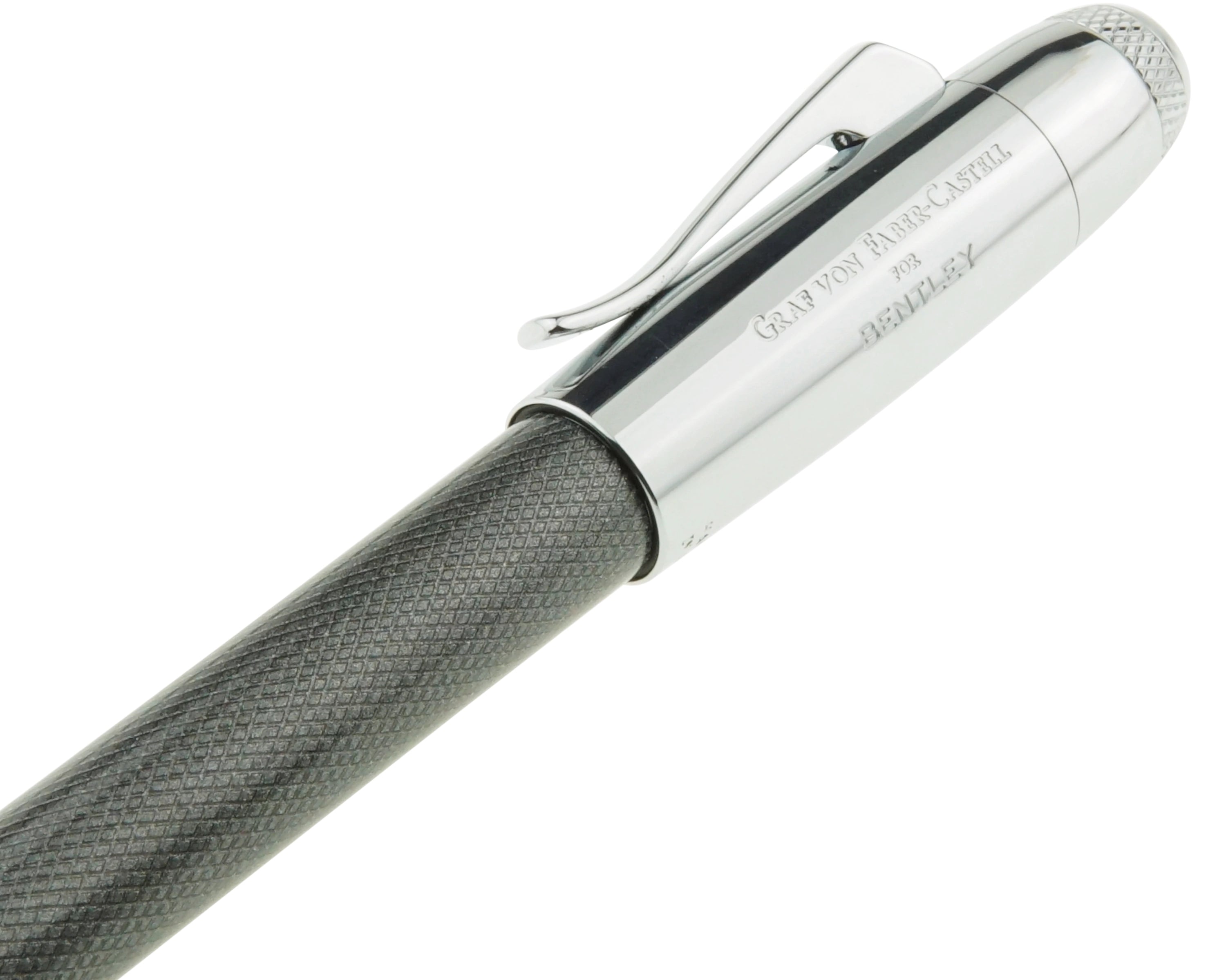 Das Schreibgerät besticht durch einen lackierten Metallschaft mit dem markanten Bentley-Diamantmuster, das mittels Guilloche-Verfahren präzise gefertigt wurde. Verchromte, hochglänzend polierte Metallteile ergänzen das elegante Erscheinungsbild, während die Kappe mit dem Bentley-B-Logo und der typischen Rändelung für zusätzlichen Wiedererkennungswert sorgt.