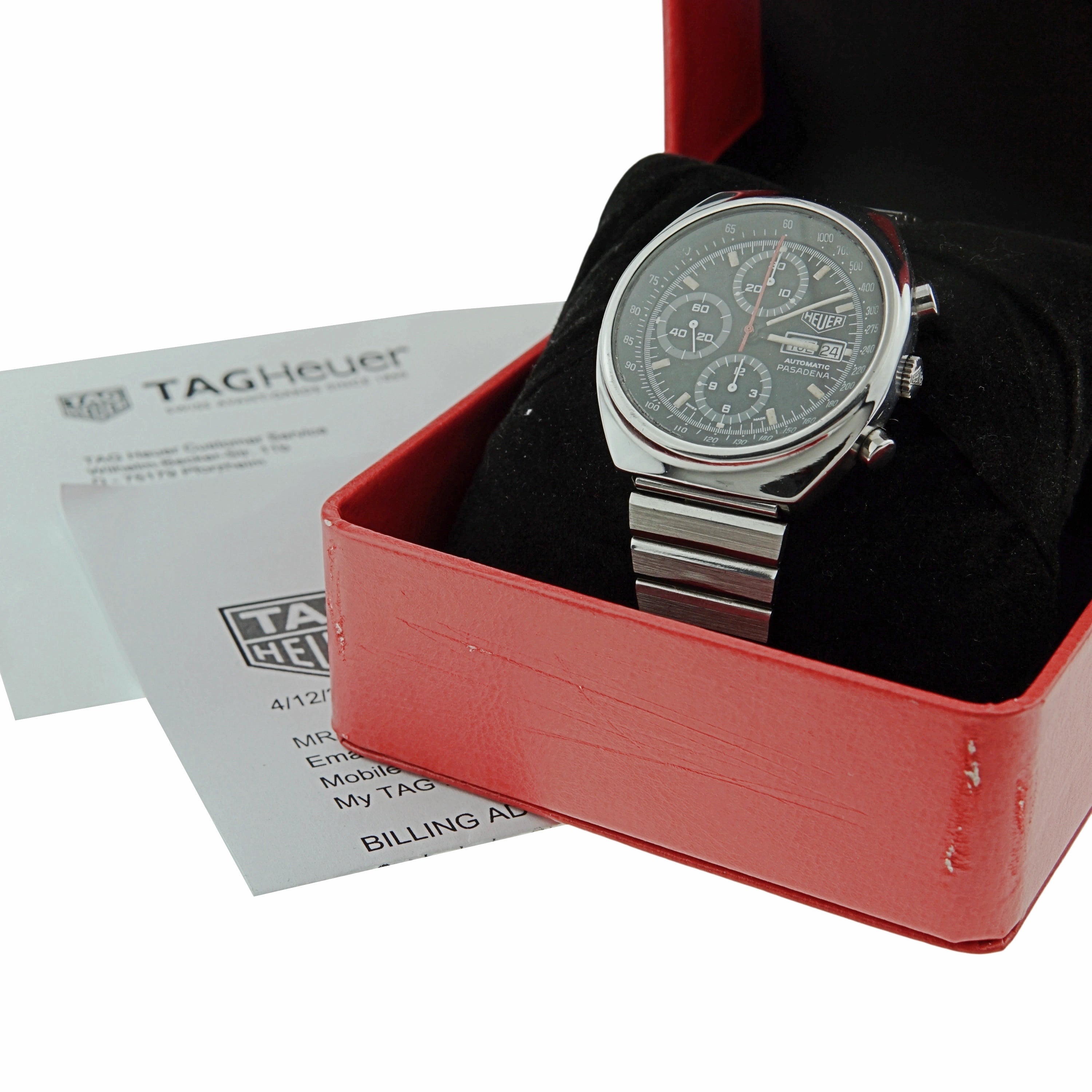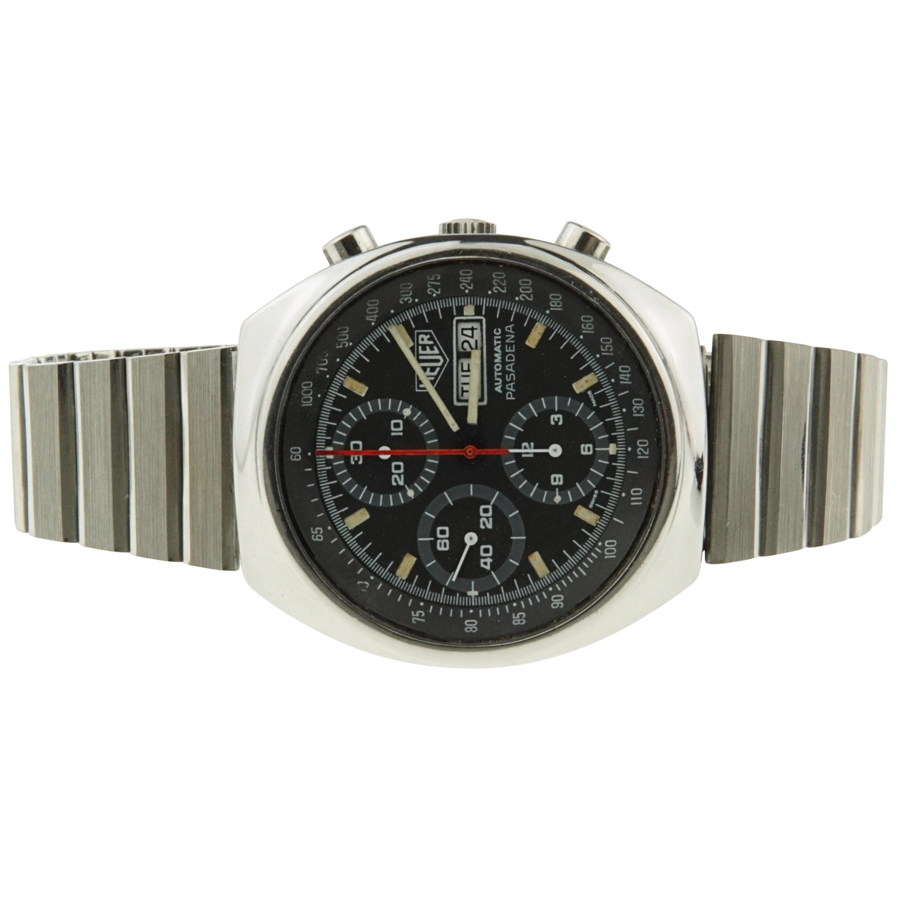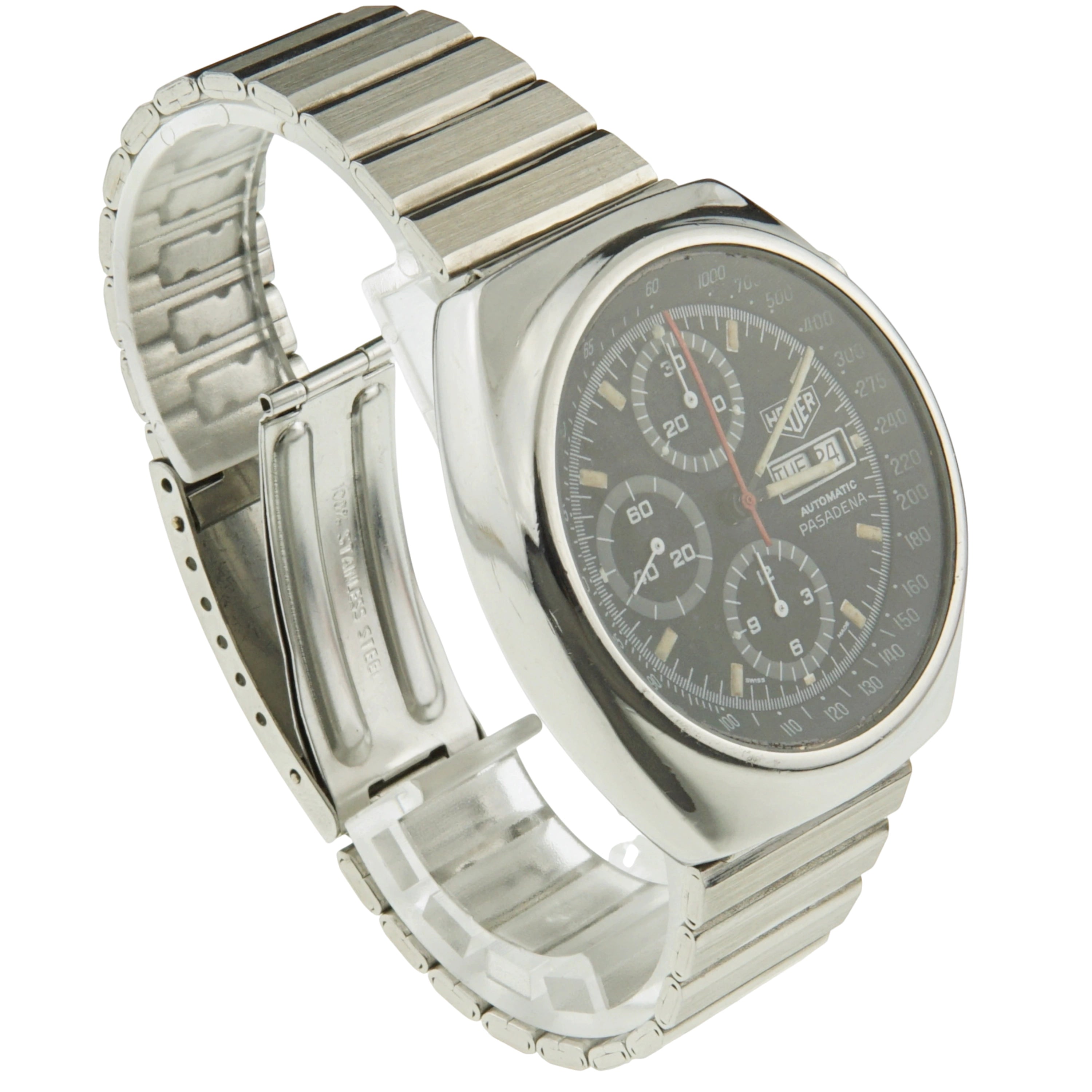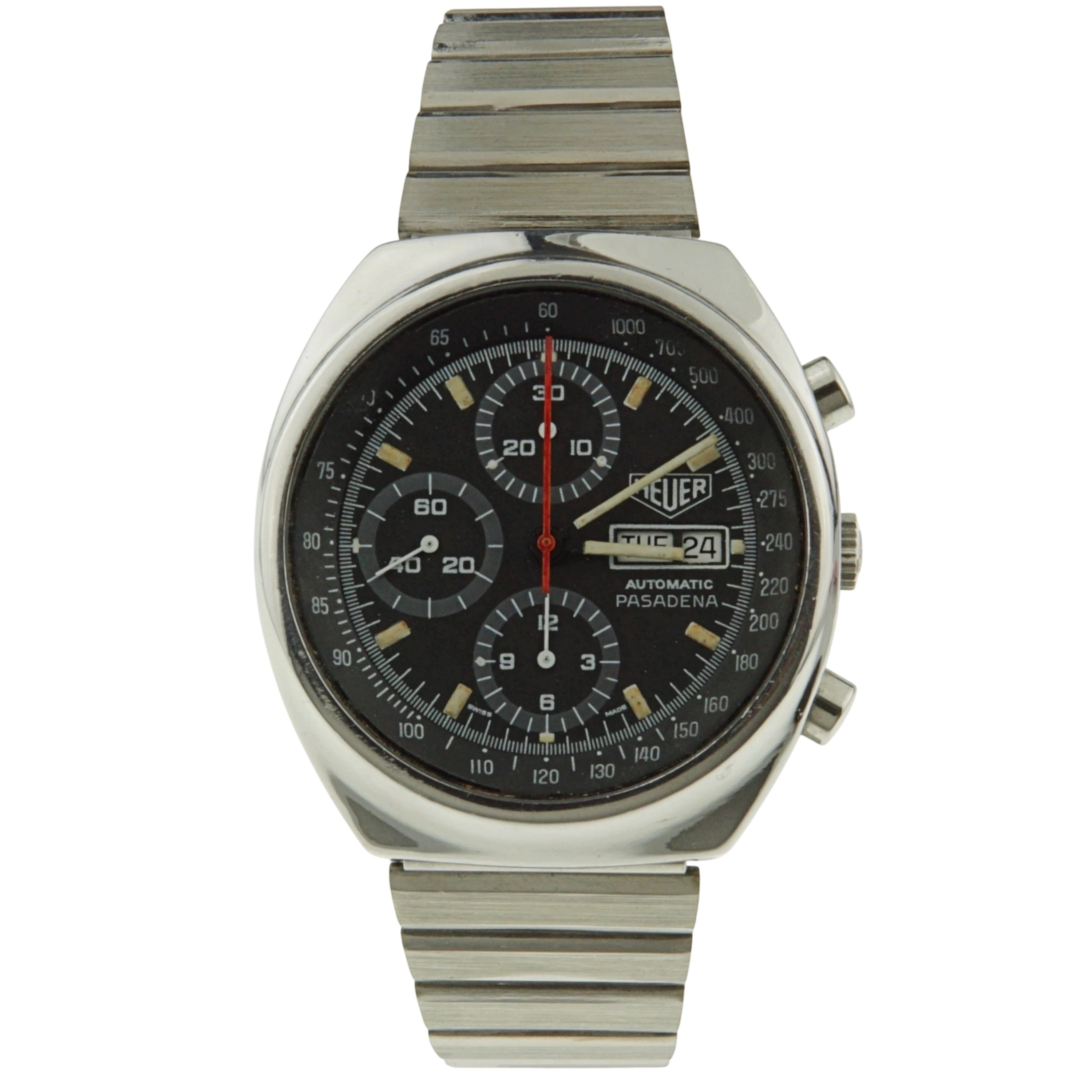 Charakteristisch ist das Gehäuse ohne klassische Bandanstöße, wie es bei vielen Chronographen der 1970er Jahre üblich war. Zwar gab es auch eine Variante in blankem Edelstahl, doch die schwarze Pasadena ist das bekannteste Modell.