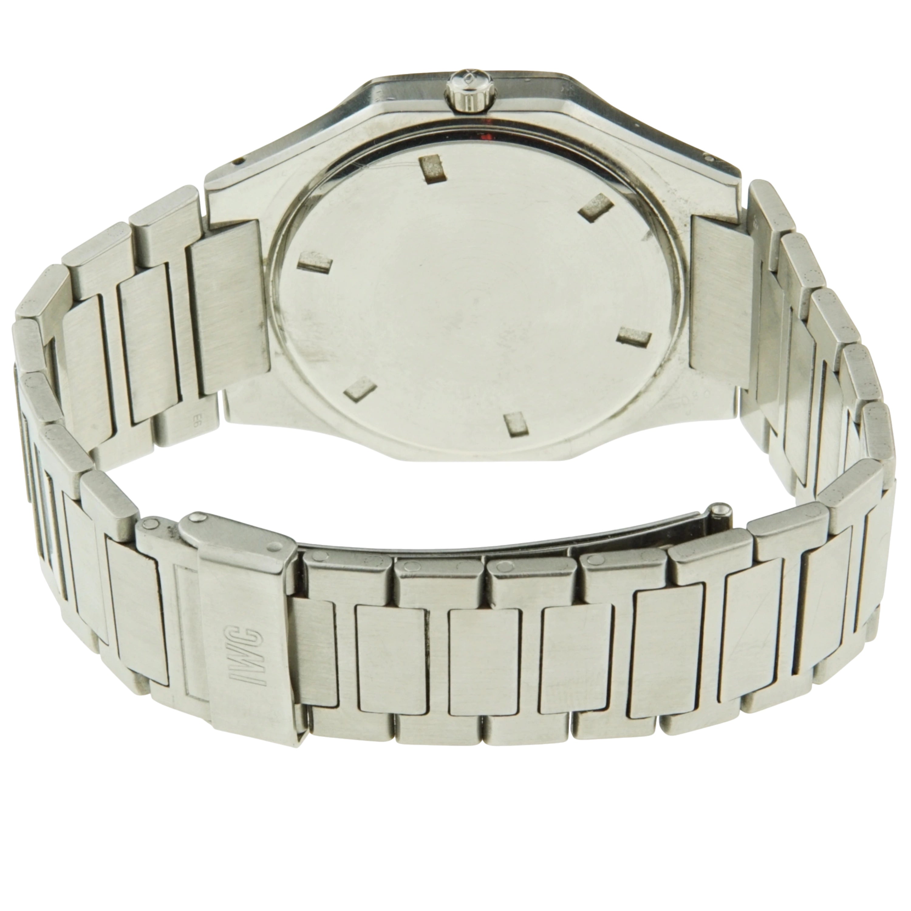 Die IWC Yacht Club II Jumbo (Ref. 3312) wurde in den frühen 1980er Jahren eingeführt und zeichnet sich durch ein markantes Design aus, das von Gerald Genta entworfen wurde. Das Gehäuse misst 38mm und wirkt durch das integrierte Stahlband deutlich großzügiger. Zudem unterstreicht das Band den damaligen Zeitgeist der Sport-Stahluhren wie der Royal Oak von Audemars Piguet und der Nautilus von Patek Philippe.