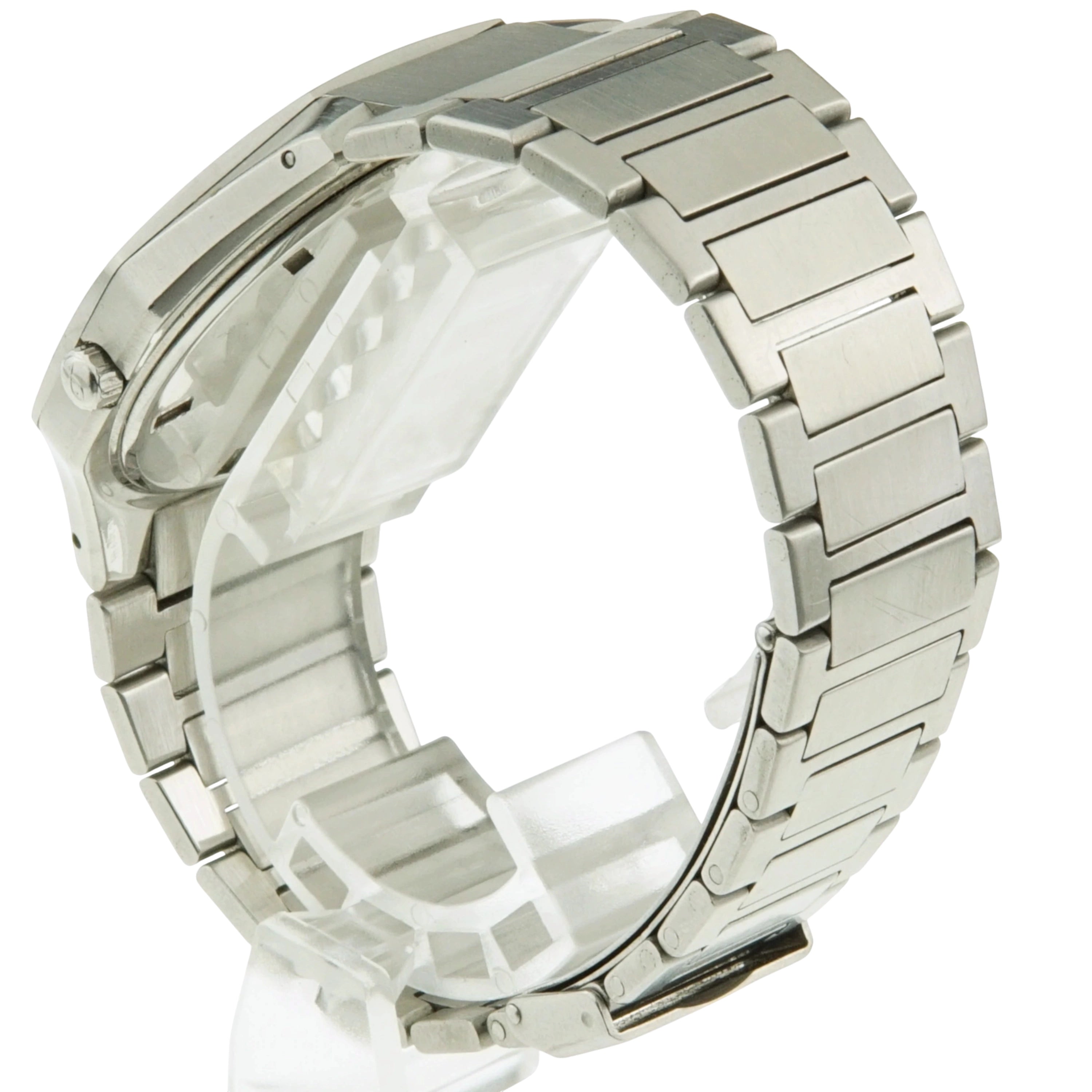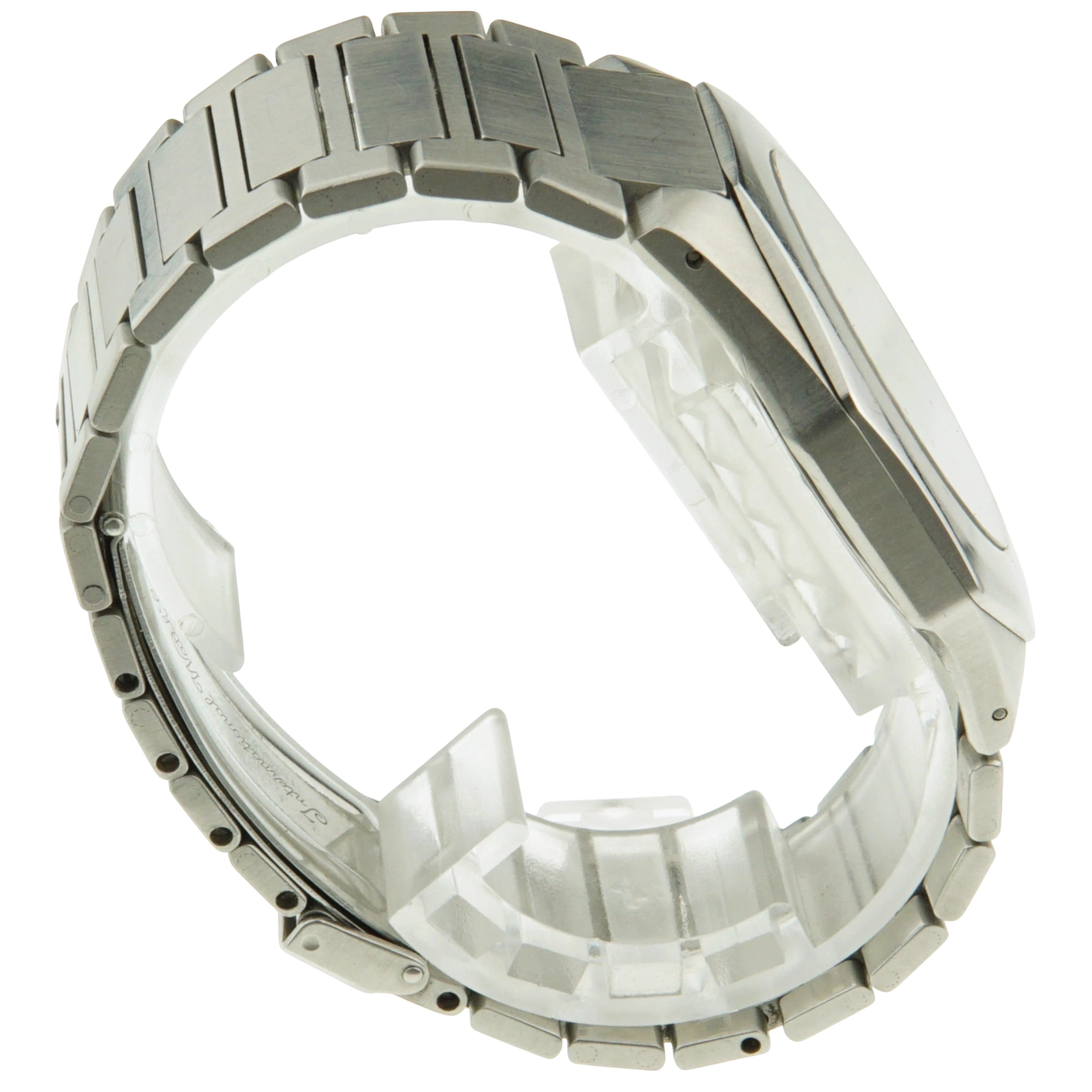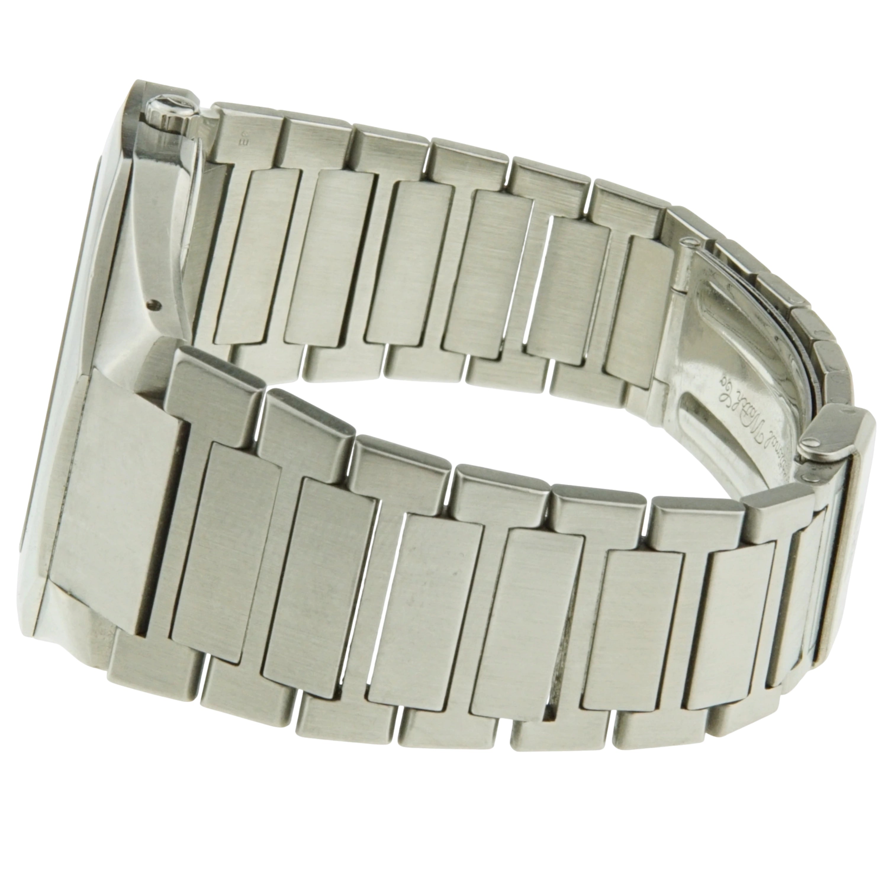 Angetrieben wird die Uhr von einem Quarzwerk, das für die damalige Zeit eine hohe Ganggenauigkeit und geringe Wartung erforderte. Das Armband besteht aus Edelstahl und ist mit einem integrierten Verschluss ausgestattet, der das Design harmonisch abrundet.