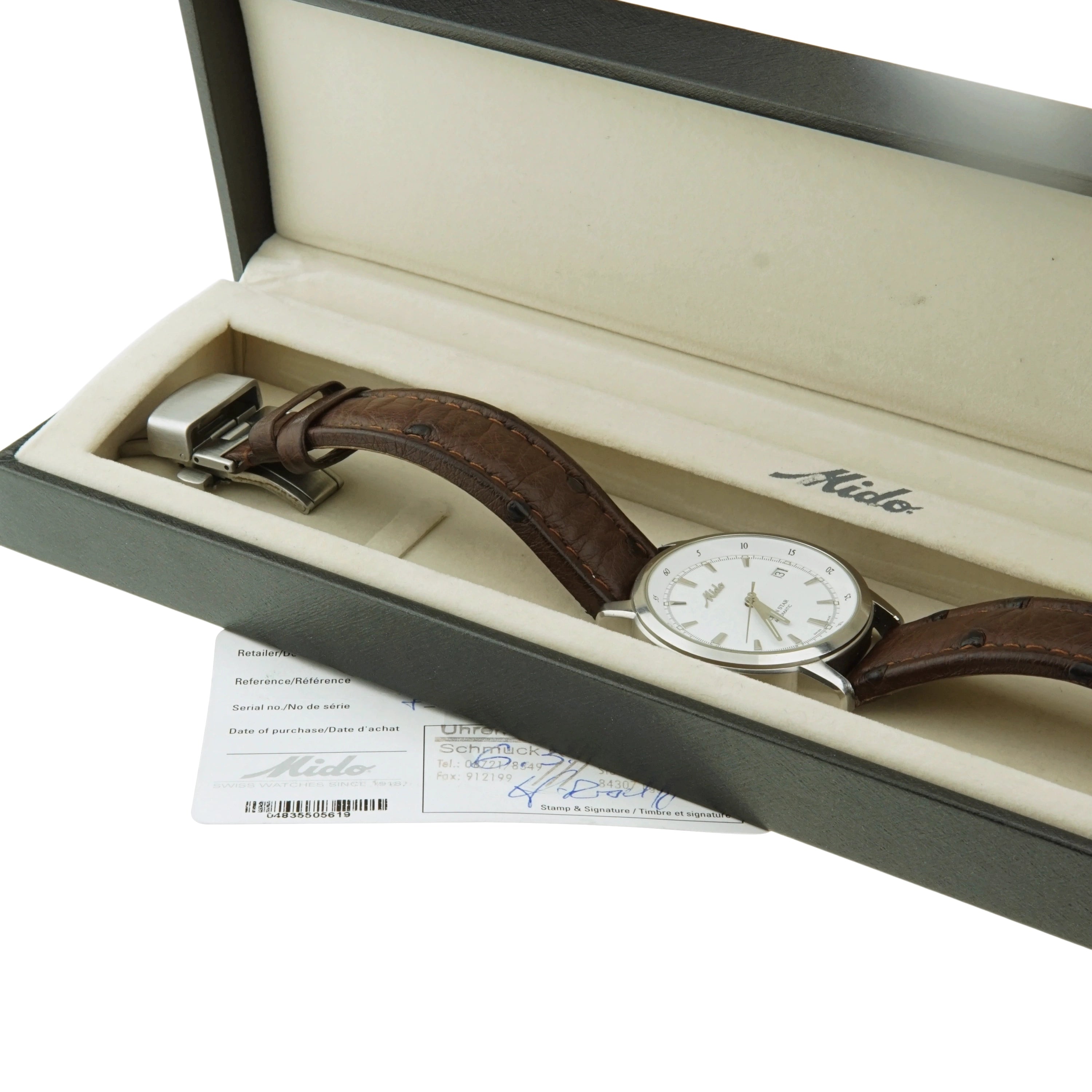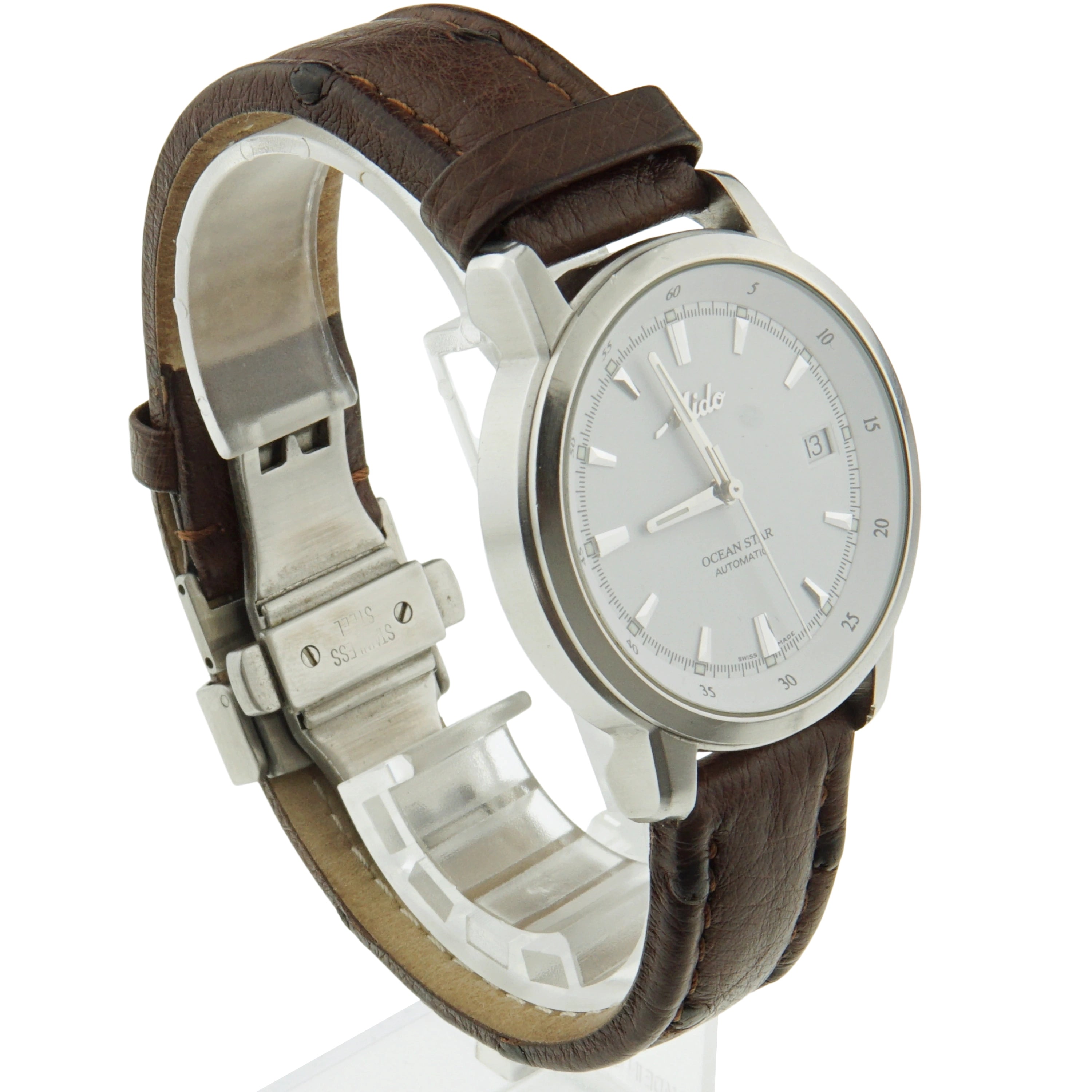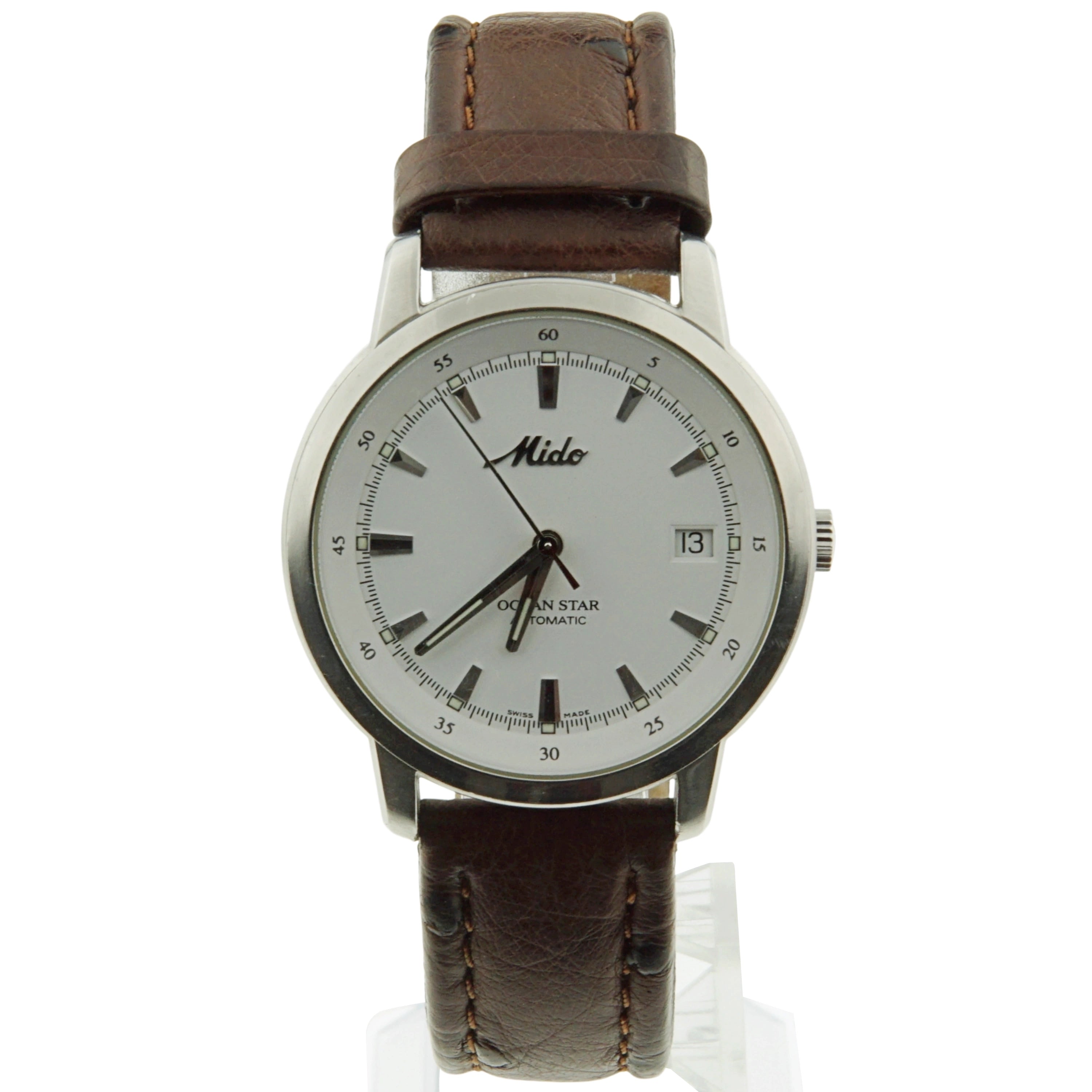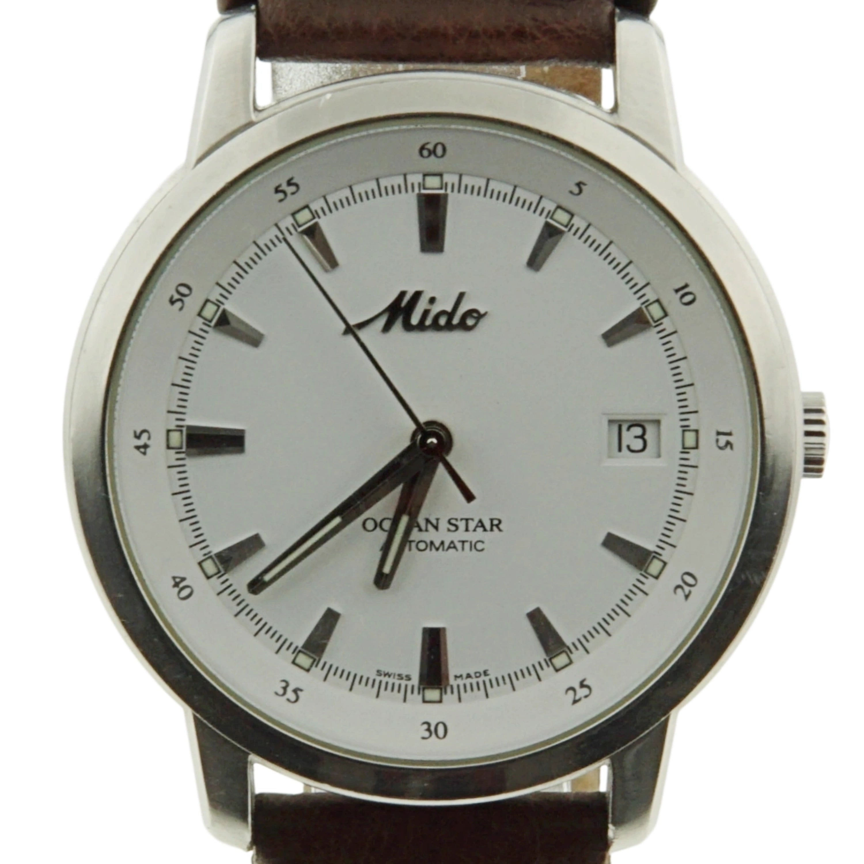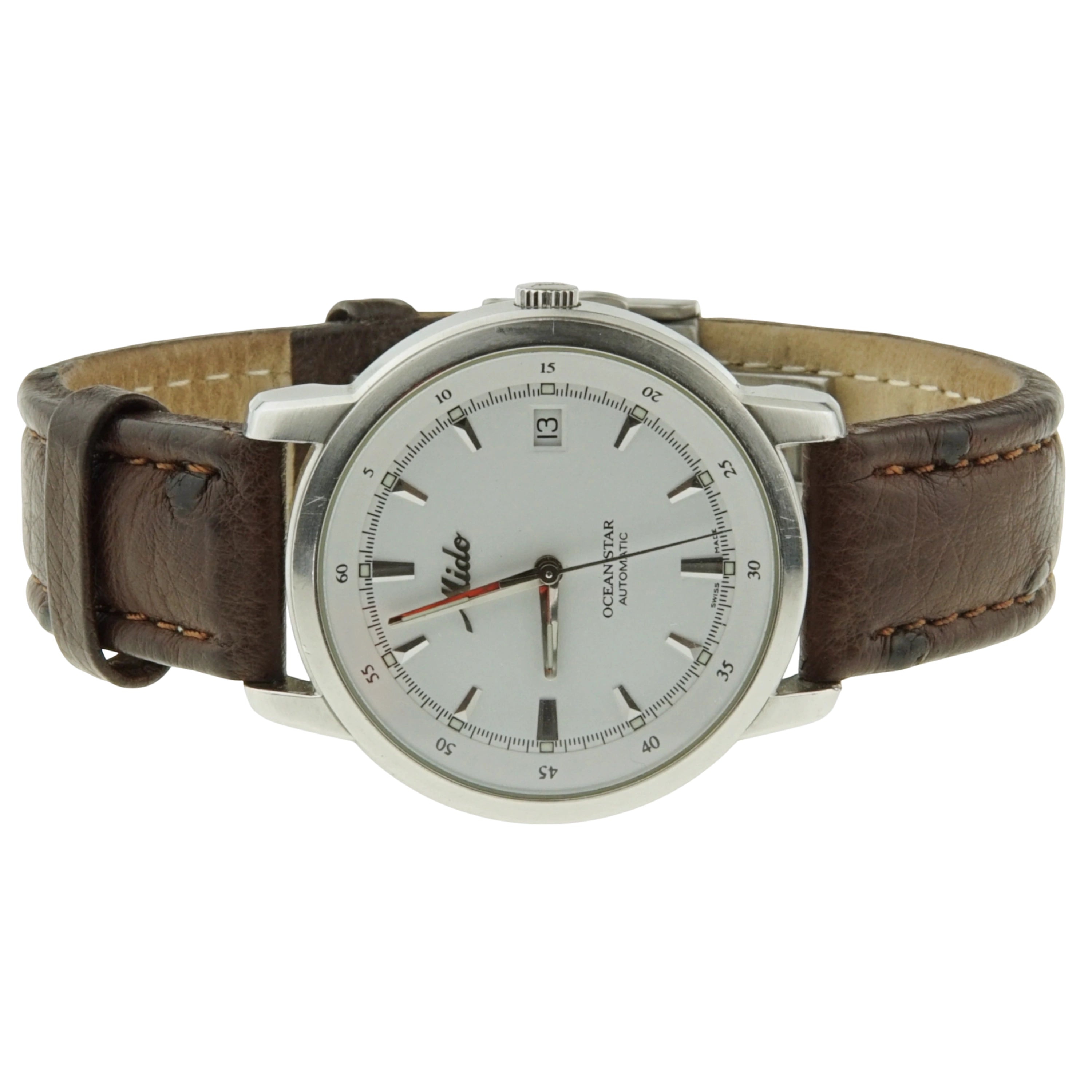 Die Mido Ocean Star (Ref. 8720) verbindet sportliche Funktionalität mit dezenter Eleganz. Im 38mm Edelstahlgehäuse arbeitet ein zuverlässiges Schweizer Automatikwerk mit Datumsanzeige, das für Präzision und Alltagstauglichkeit steht.