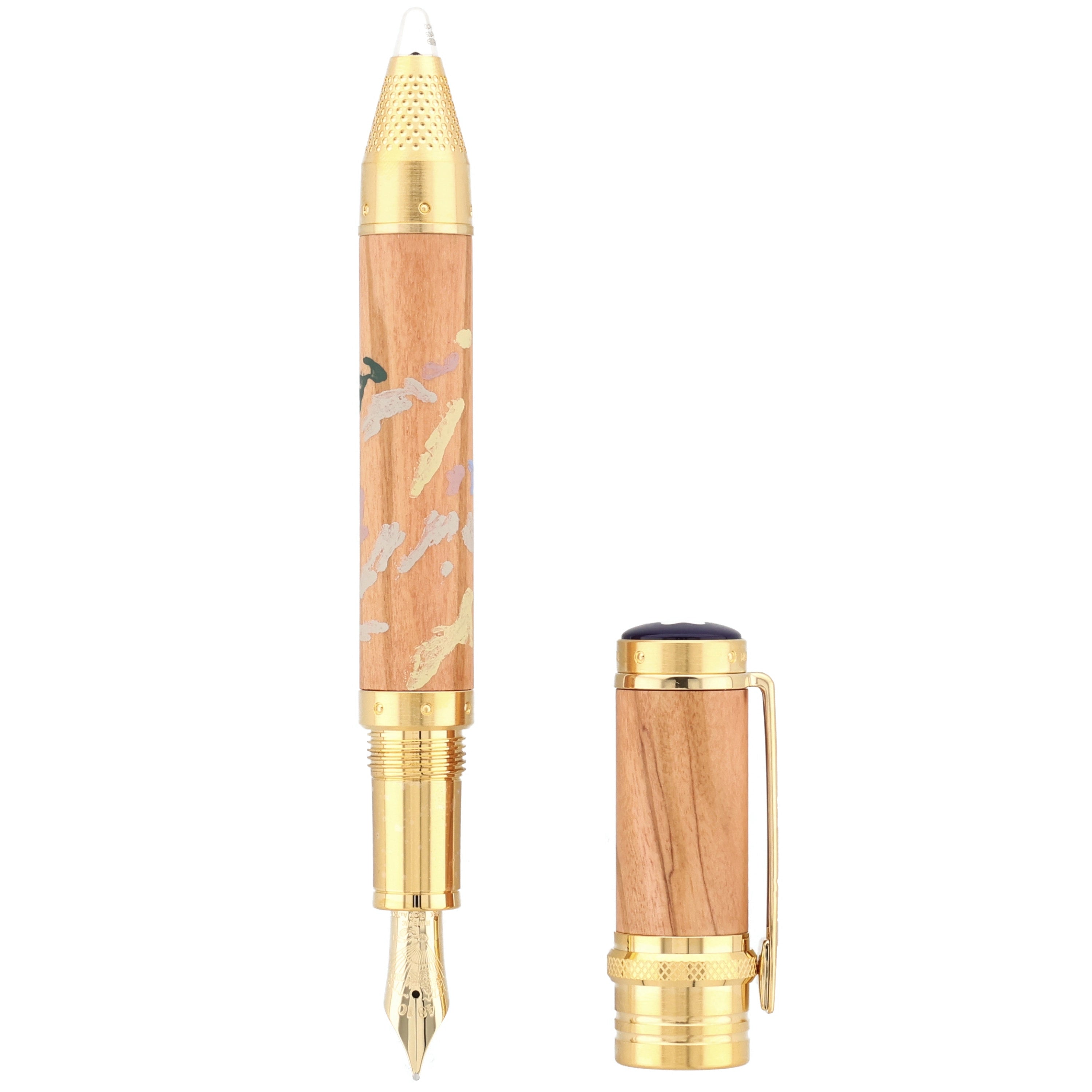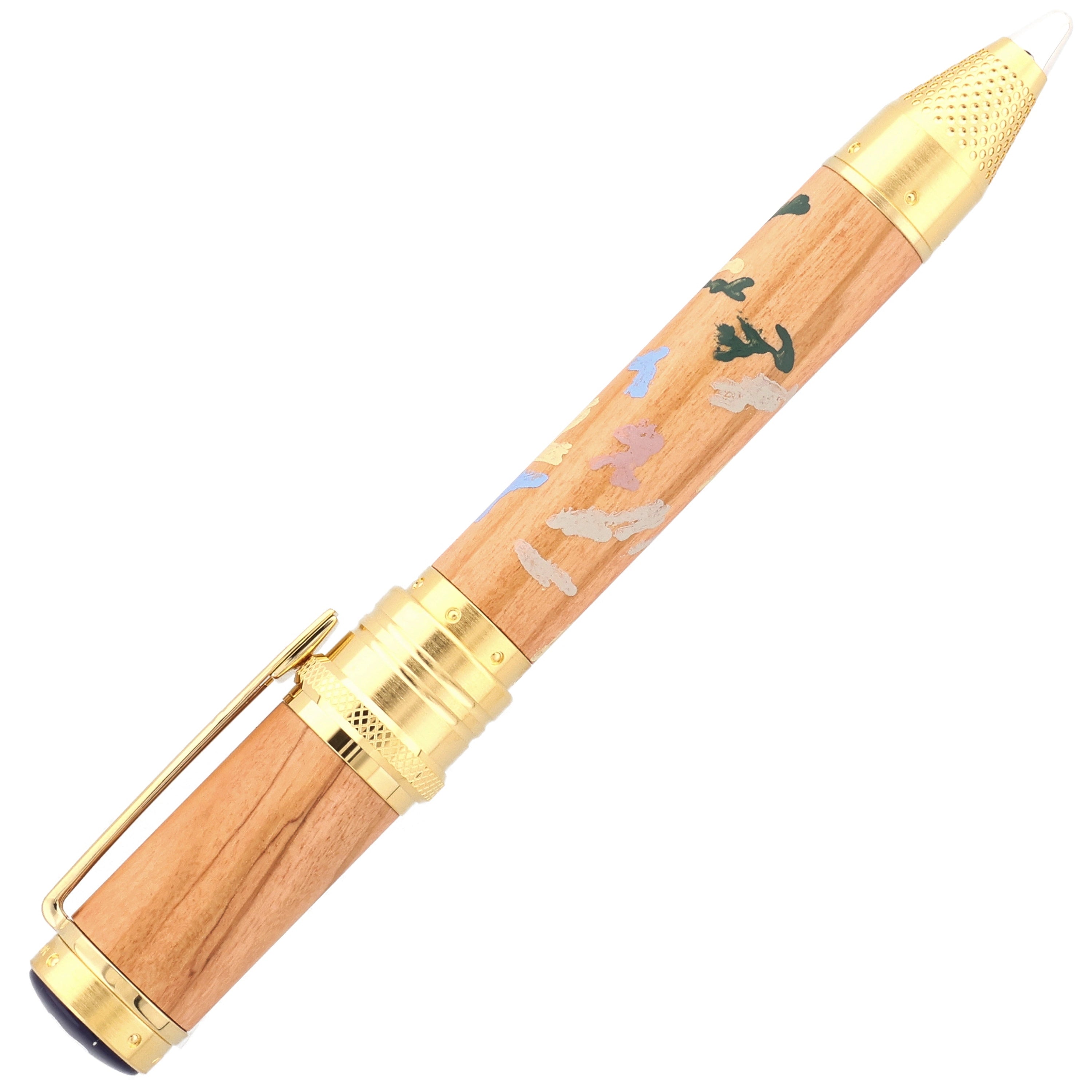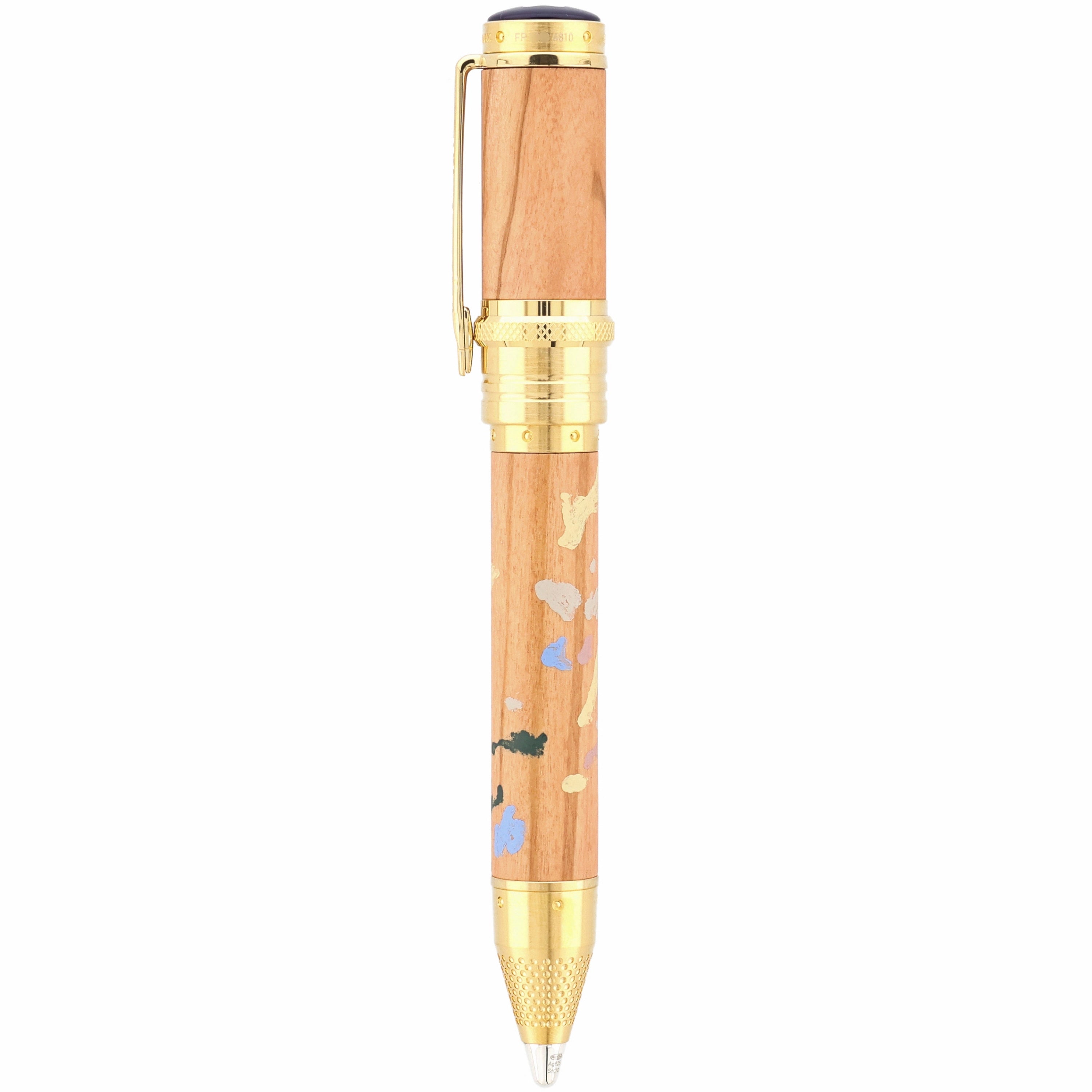 Dieses Schreibgerät ist eine Hommage an die impressionistische Farb- und Lichtkunst des großen Meisters. Schaft und Kappe aus edlem Olivenholz sind mit zarten Farbnuancen versehen, die an Renoirs lebendige Palette erinnern. Feine vergoldete Metallapplikationen und ein elegant gravierter Clip setzen glanzvolle Akzente, während die handpolierte Oberfläche das Licht in sanften Reflexionen einfängt. Die harmonisch proportionierte Spitze und das sorgfältig ausbalancierte Gewicht garantieren ein außergewöhnlich flüssiges, luxuriöses Schreibgefühl.