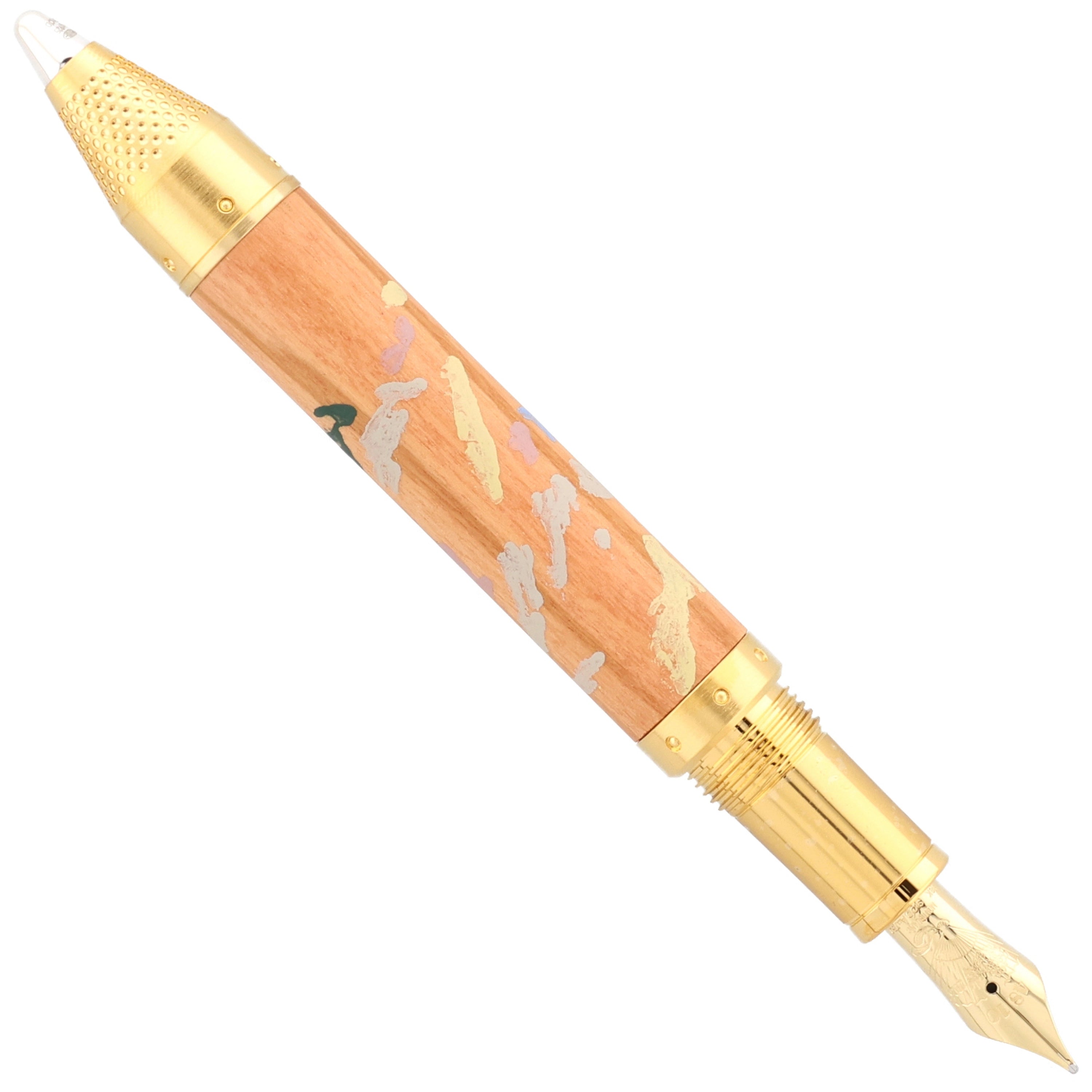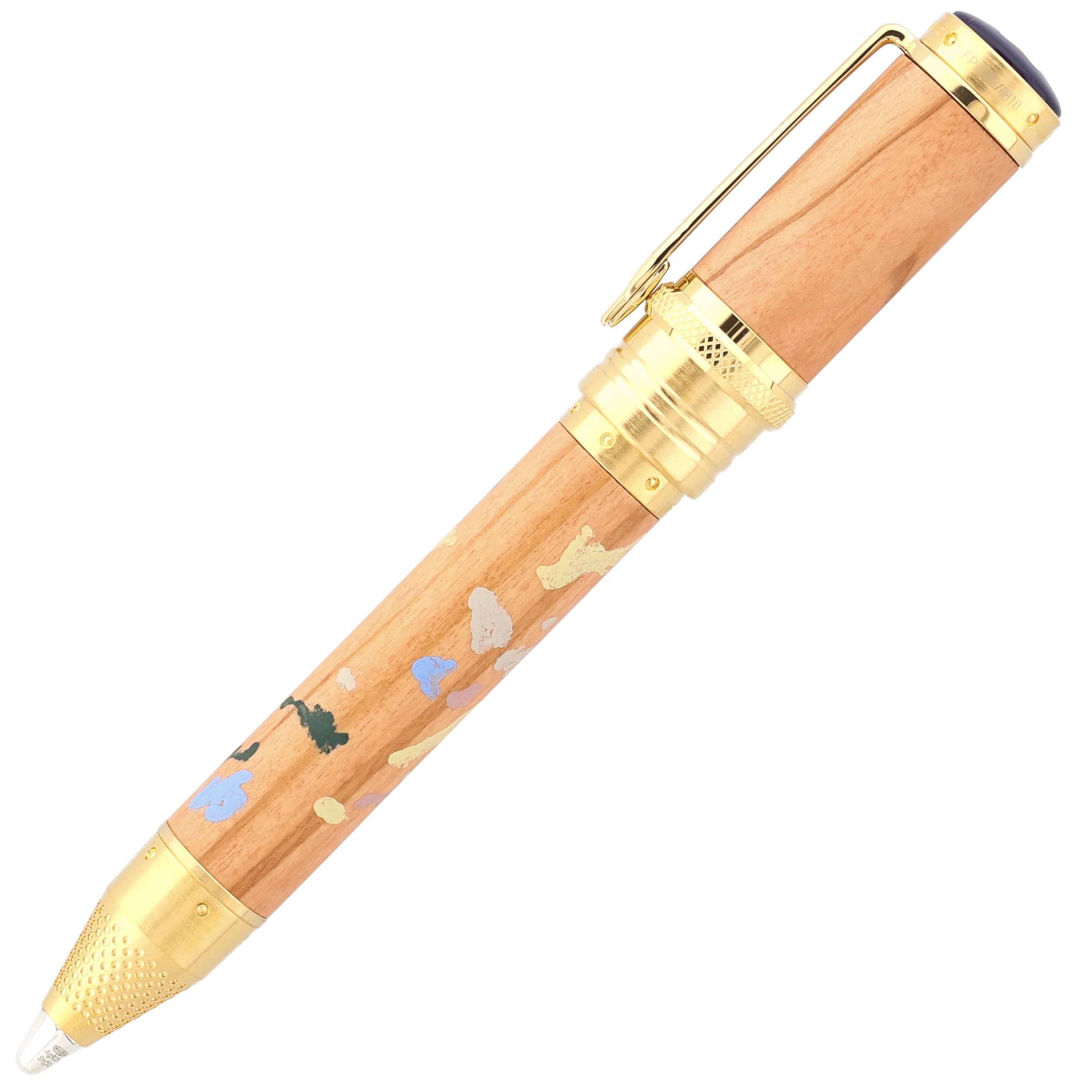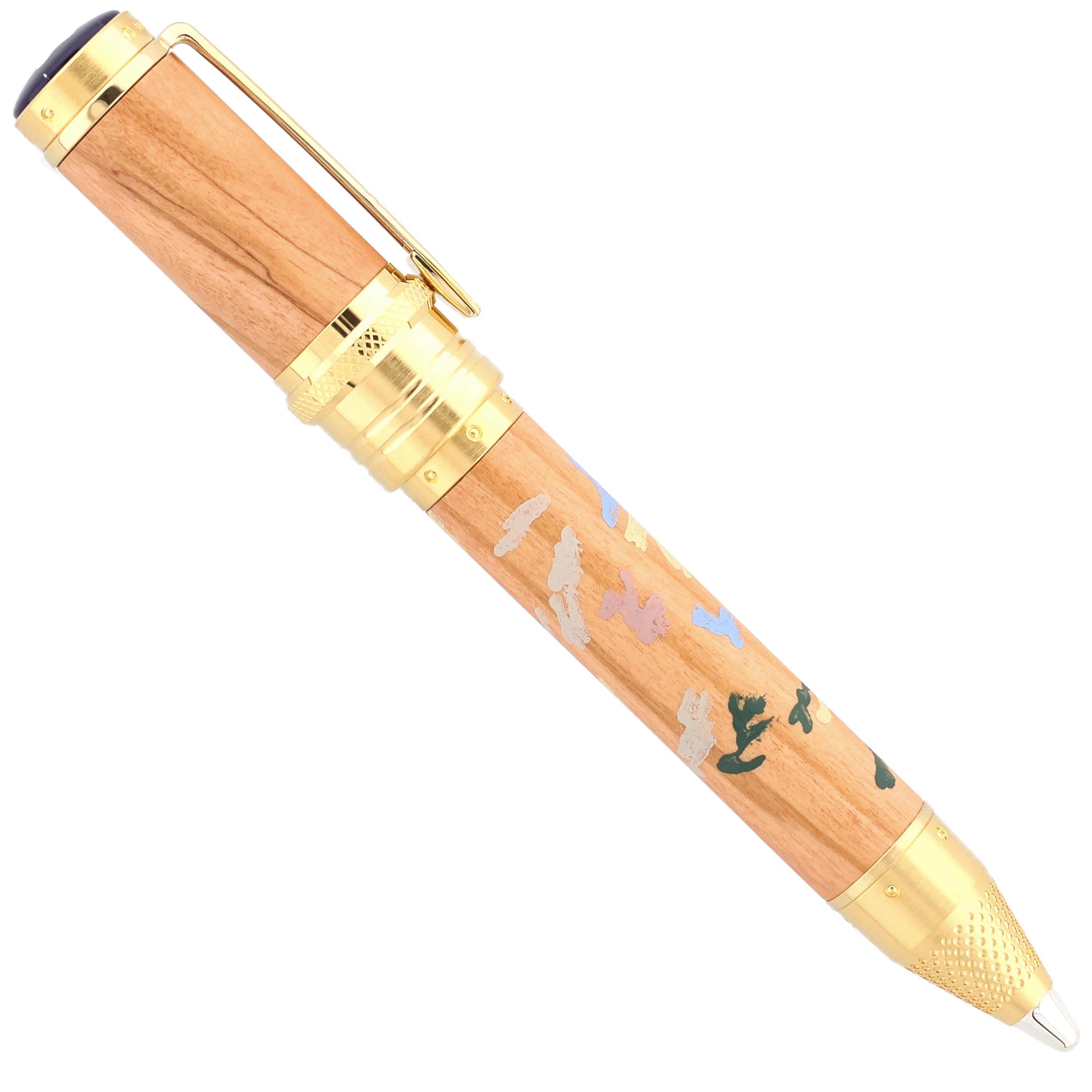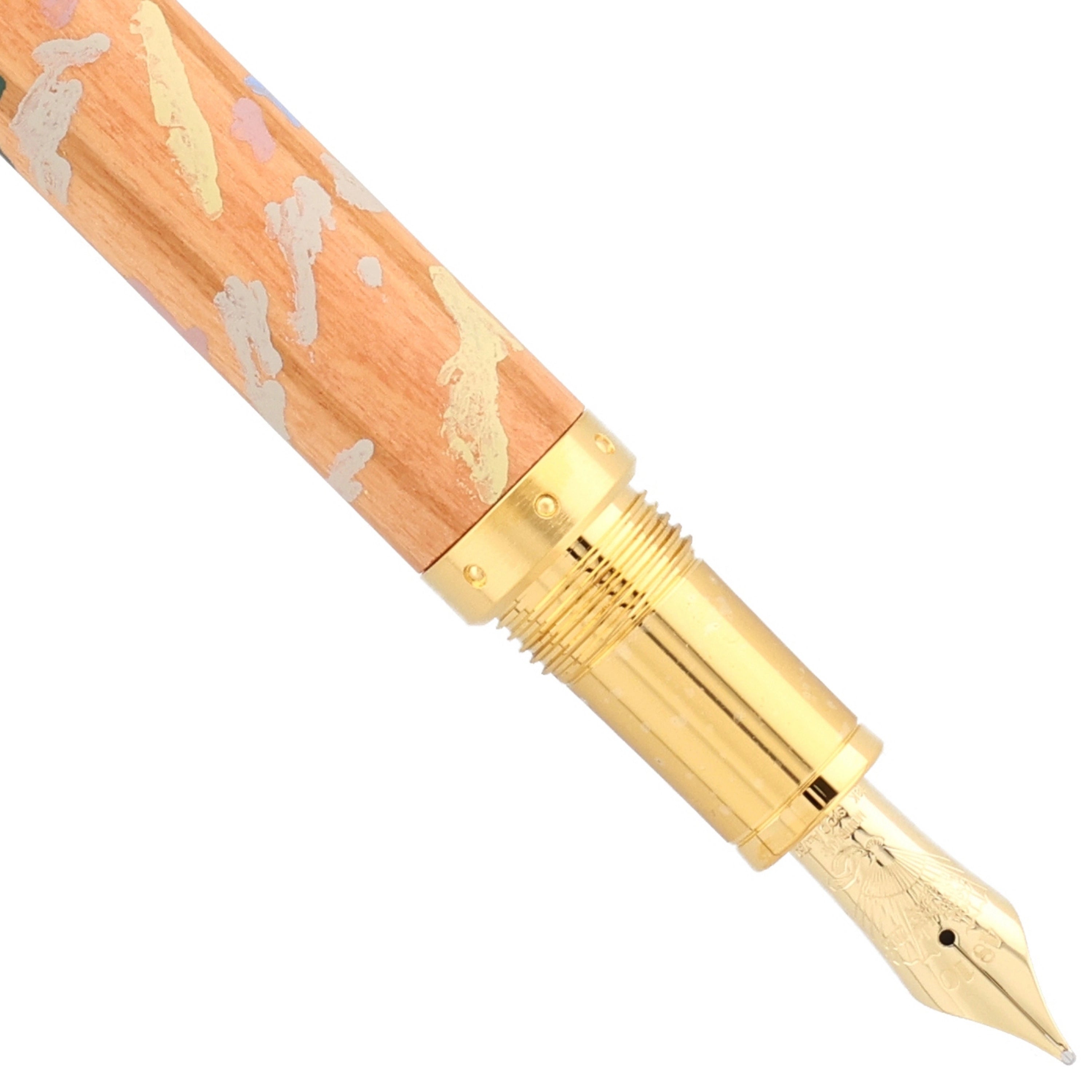Dieses Schreibgerät ist eine Hommage an die impressionistische Farb- und Lichtkunst des großen Meisters. Schaft und Kappe aus edlem Olivenholz sind mit zarten Farbnuancen versehen, die an Renoirs lebendige Palette erinnern. Feine vergoldete Metallapplikationen und ein elegant gravierter Clip setzen glanzvolle Akzente, während die handpolierte Oberfläche das Licht in sanften Reflexionen einfängt. Die harmonisch proportionierte Spitze und das sorgfältig ausbalancierte Gewicht garantieren ein außergewöhnlich flüssiges, luxuriöses Schreibgefühl.
