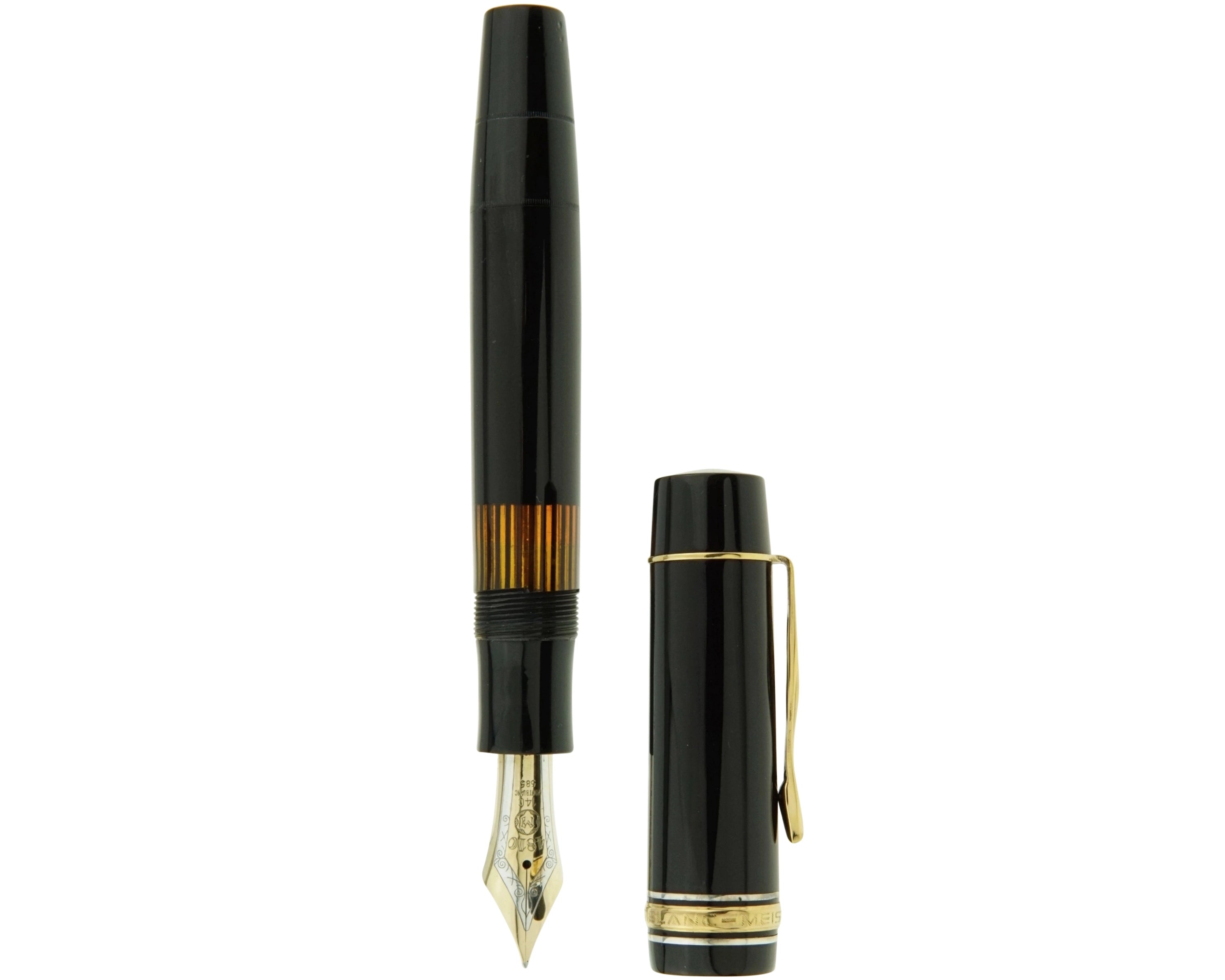 Gefertigt aus hochwertigem Zelluloid und veredelt mit vergoldeten Akzenten, verkörpert dieses Schreibgerät zeitlose Eleganz. Eine besondere Eigenschaft der Vintage-Modelle im Vergleich zu heutigen Füllern ist der klassische Kolbenmechanismus mit traditionellem Dichtkorken.