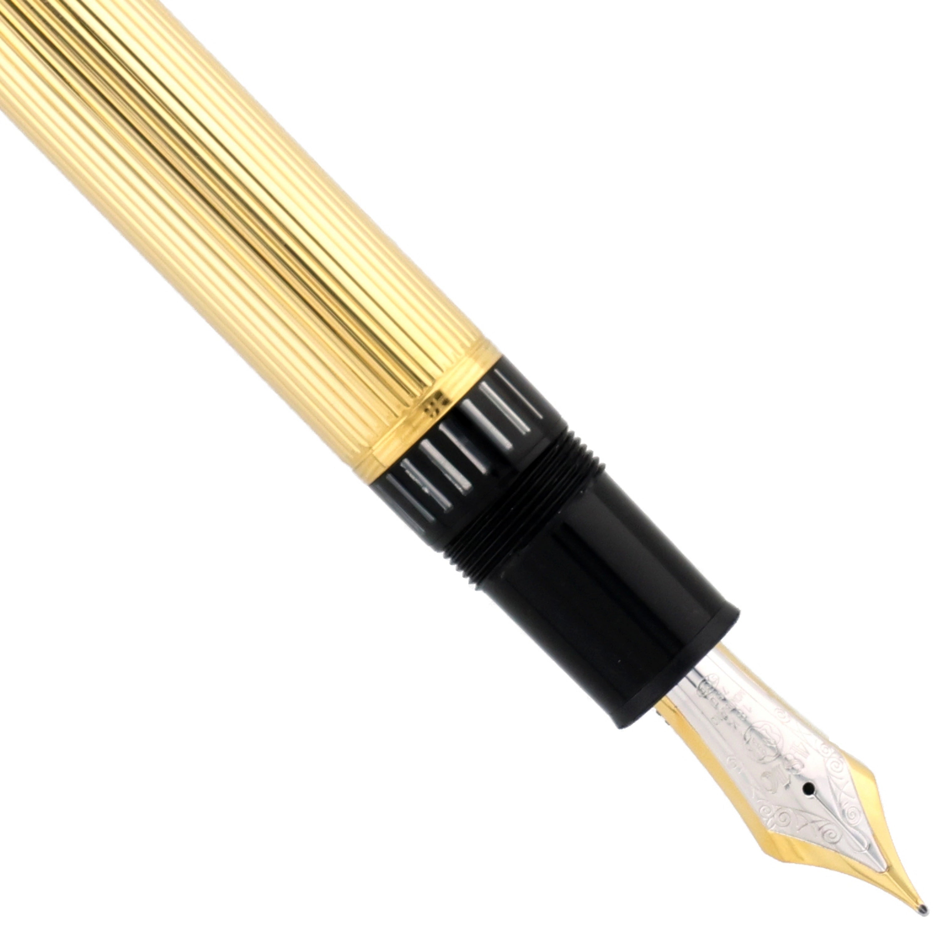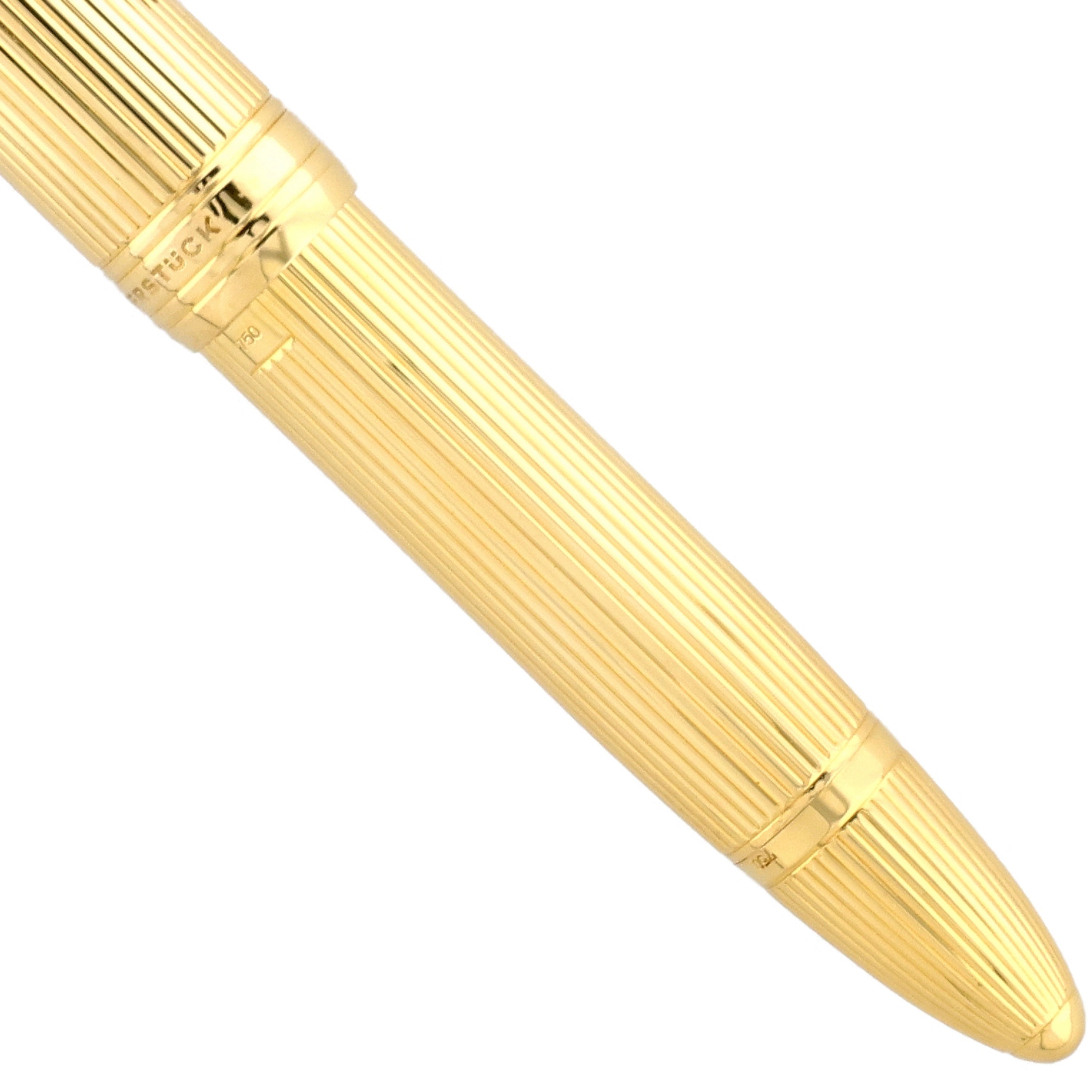 Das Schreibgerät – Korpus, Kappe, Beschläge und Clip – wurde vollständig aus massivem 750er Gold gefertigt. Die fein ausgearbeitete Oberflächenstruktur verleiht dem Füller eine außergewöhnliche optische Tiefe und schafft ein ebenso luxuriöses wie unverwechselbares haptisches Erlebnis.