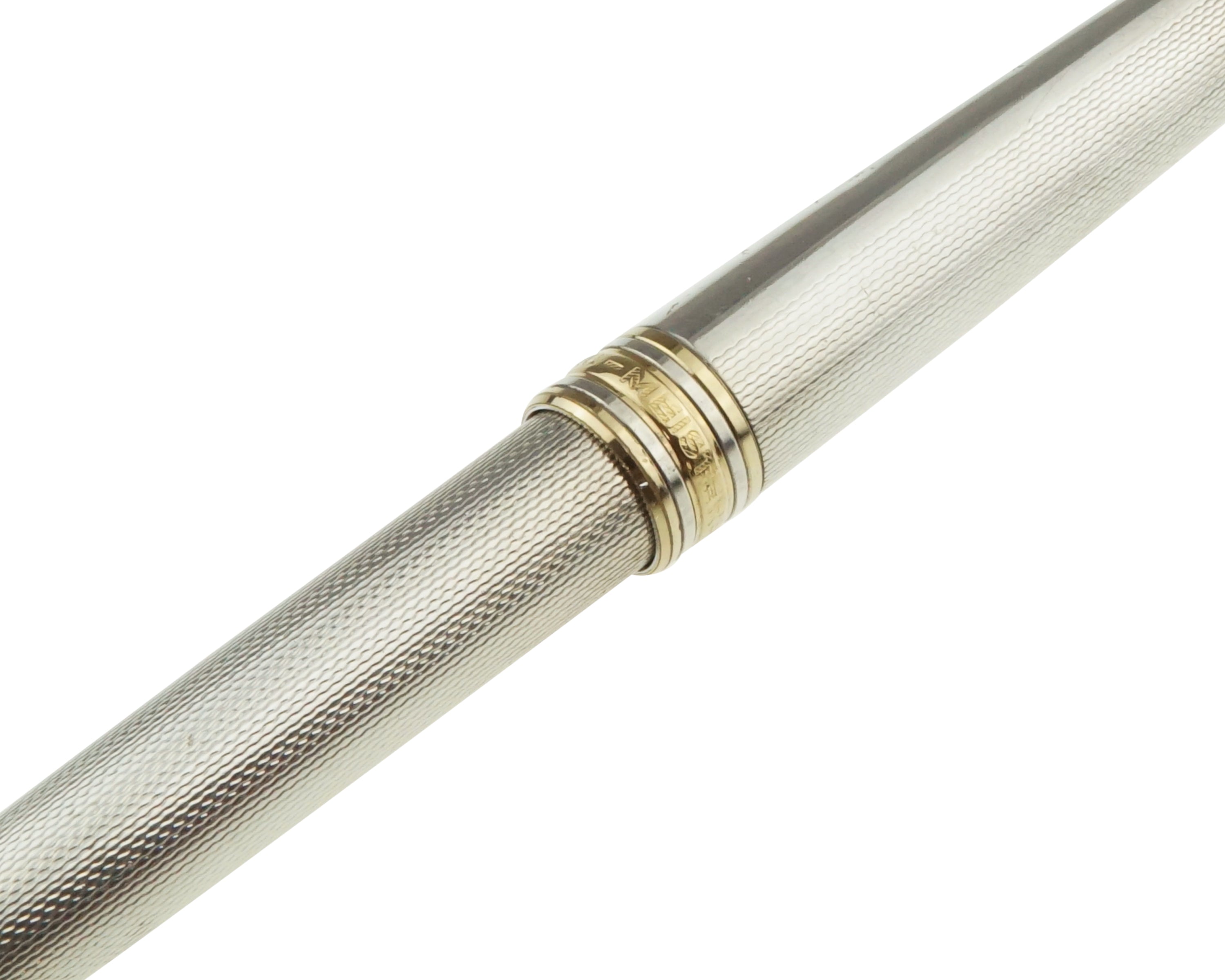 Dieses Schreibgerät fasziniert durch seine edle Fertigung aus massivem 925er Sterling-Silber. Die vergoldeten Details, darunter der Clip und die Beschläge, setzen luxuriöse Akzente. Ein besonderes optisches und haptisches Highlight bildet die feine Korn-Guilloche, deren filigranes Muster die Oberfläche veredelt und dem Schreiber einen unverwechselbaren Charakter verleiht.