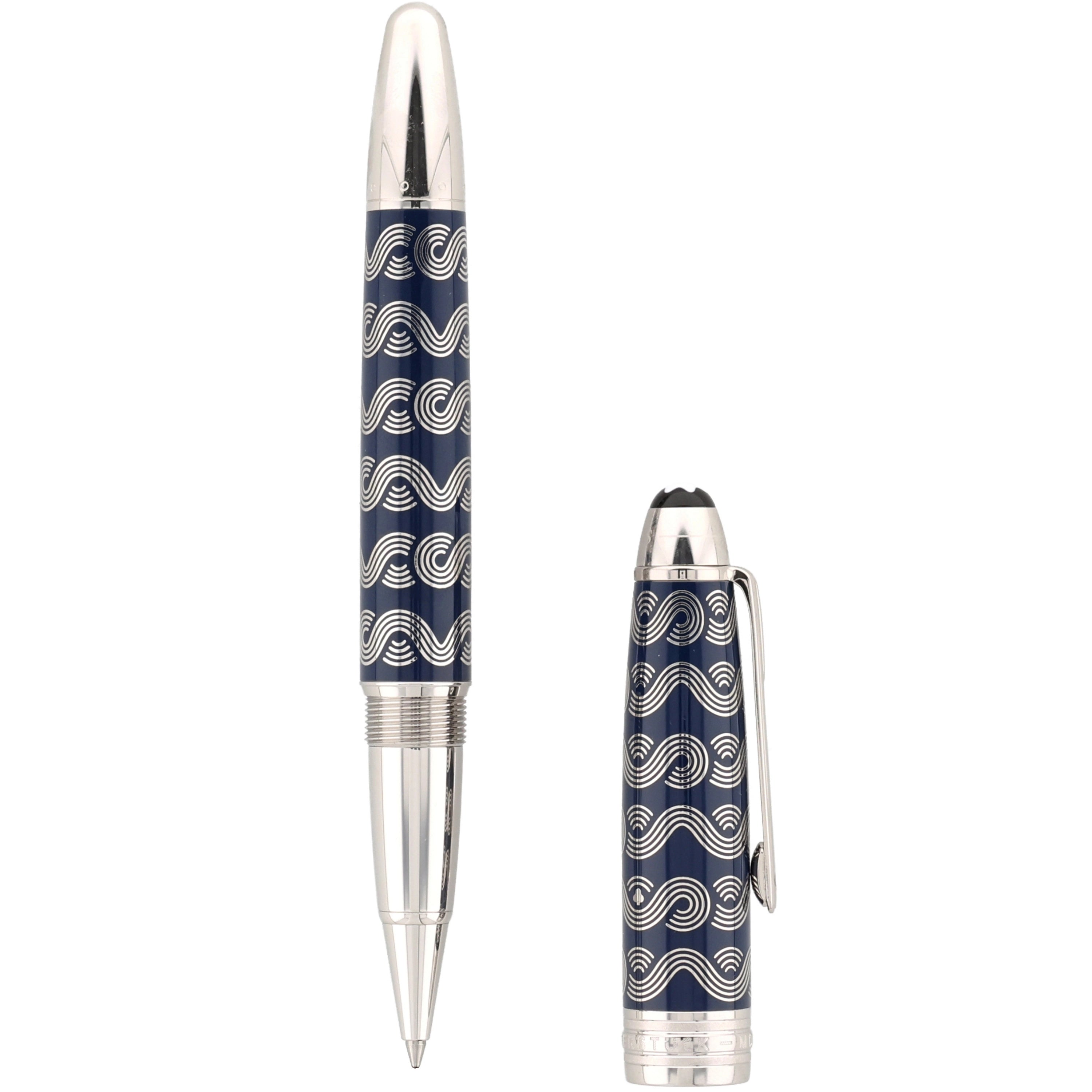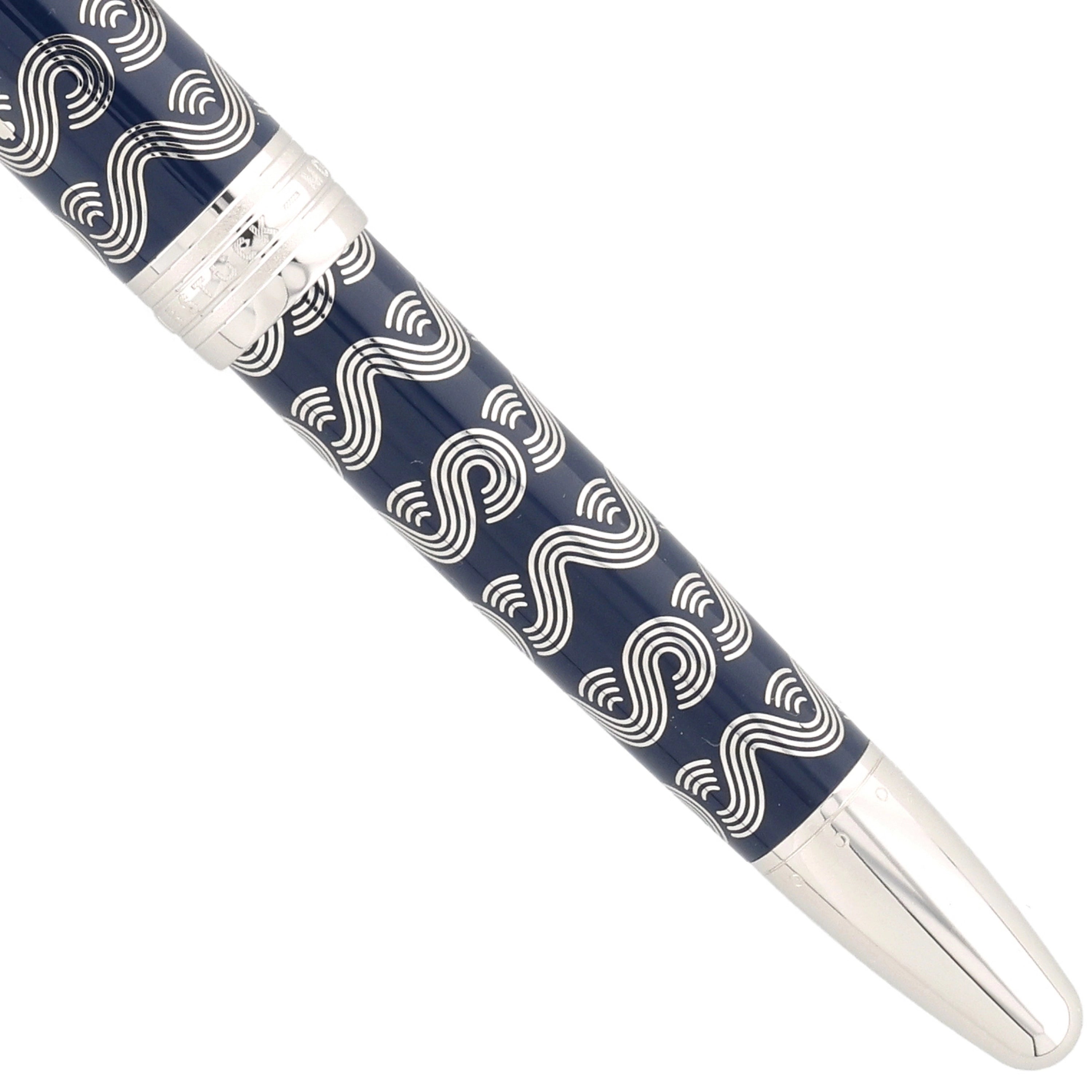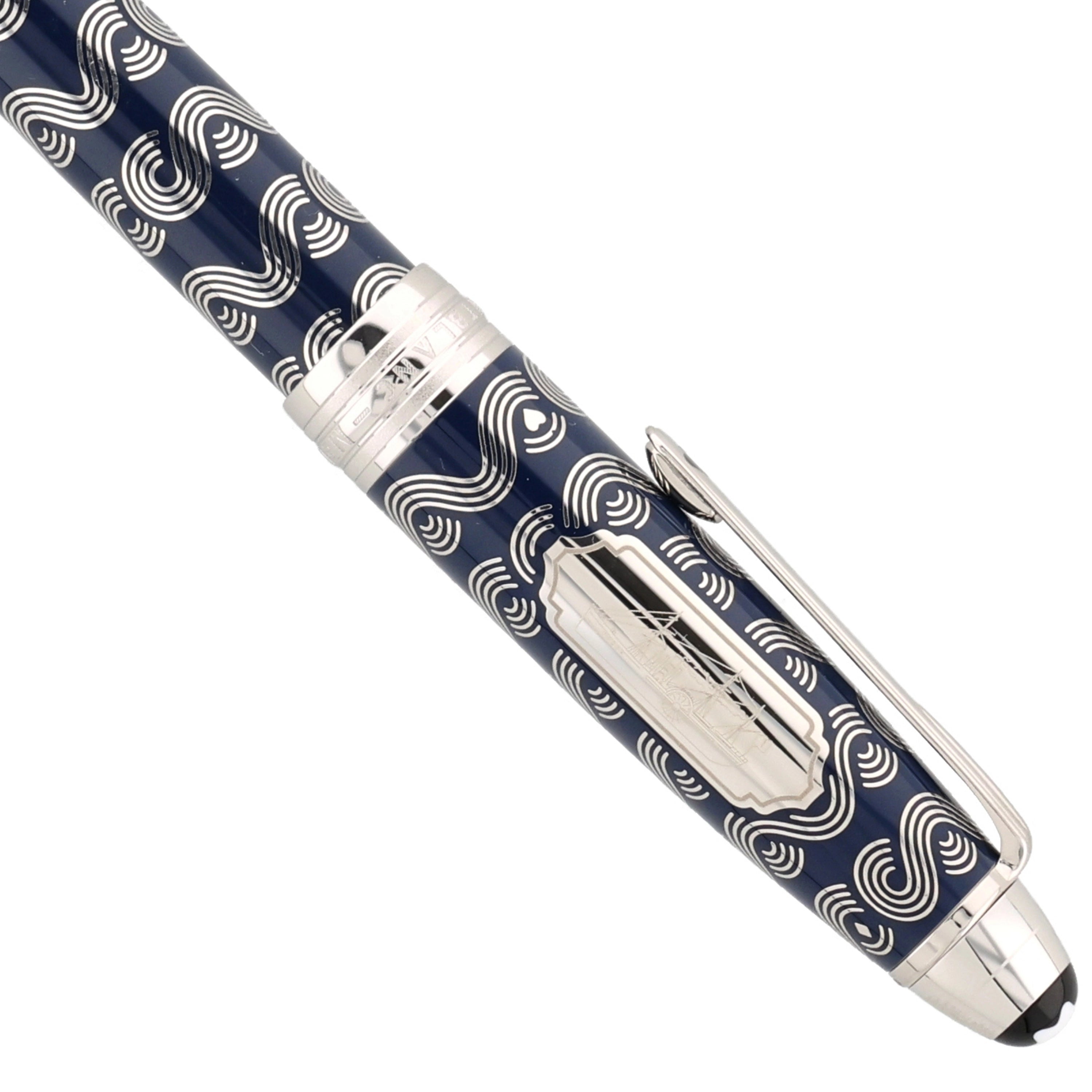 Dieses Schreibgerät besticht durch einen Metallkorpus mit transluzenter Lackierung, der von fein ausgearbeiteten Gravuren in Form eines eleganten Wellenmusters durchzogen ist. Die dekorativen Strukturen und dezenten Farbakzente greifen Motive aus Jules Vernes Welt von Zeit, Technik und Reisen auf. So verbindet dieses Schreibgerät erzählerische Inspiration mit der für Montblanc charakteristischen, luxuriösen Verarbeitung.