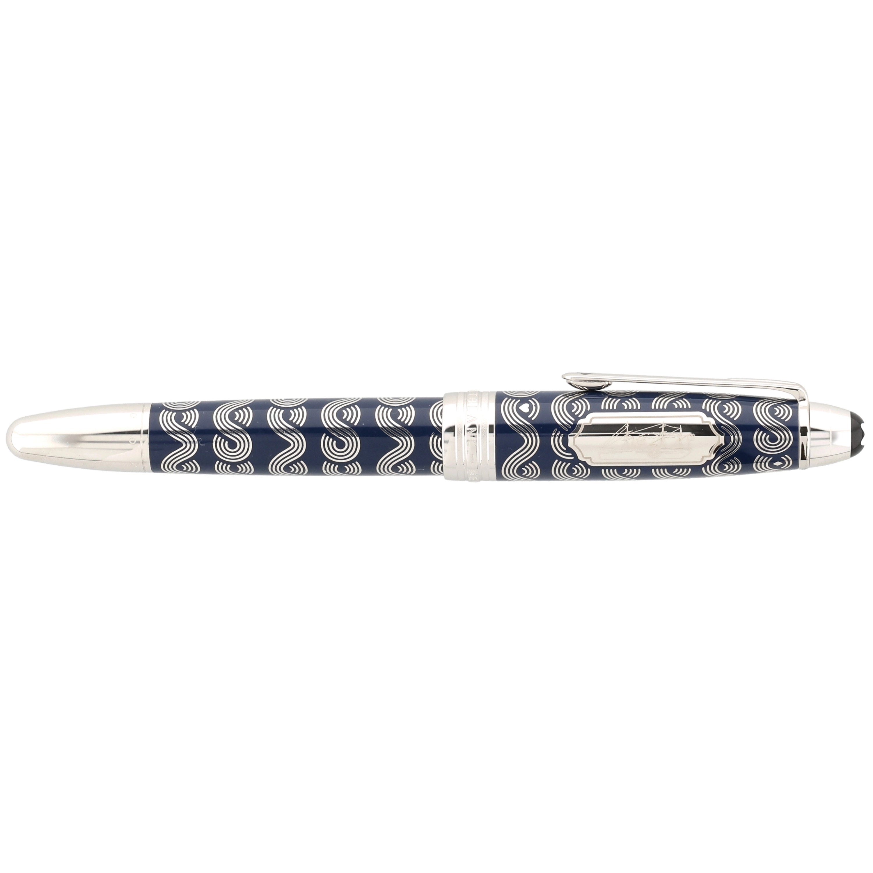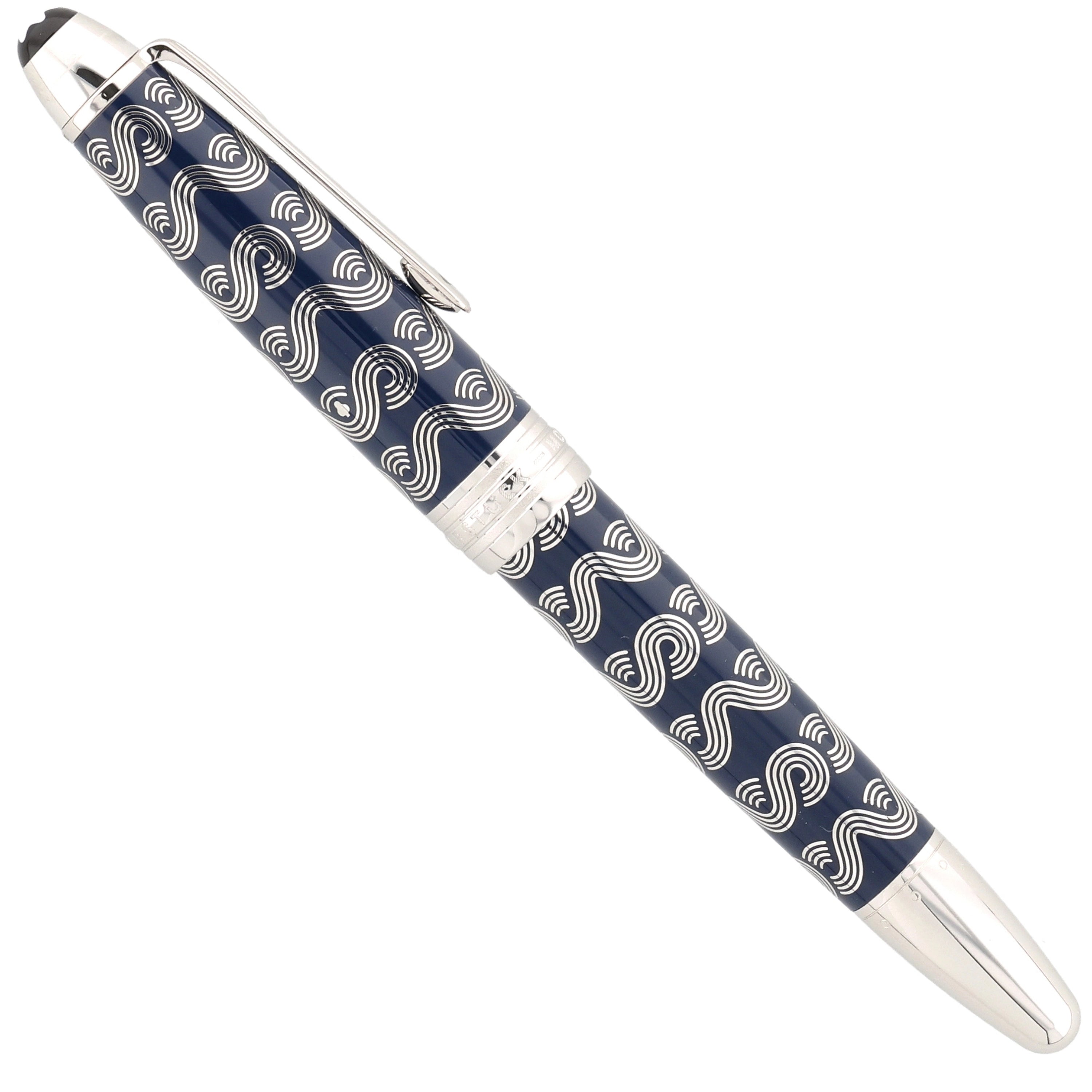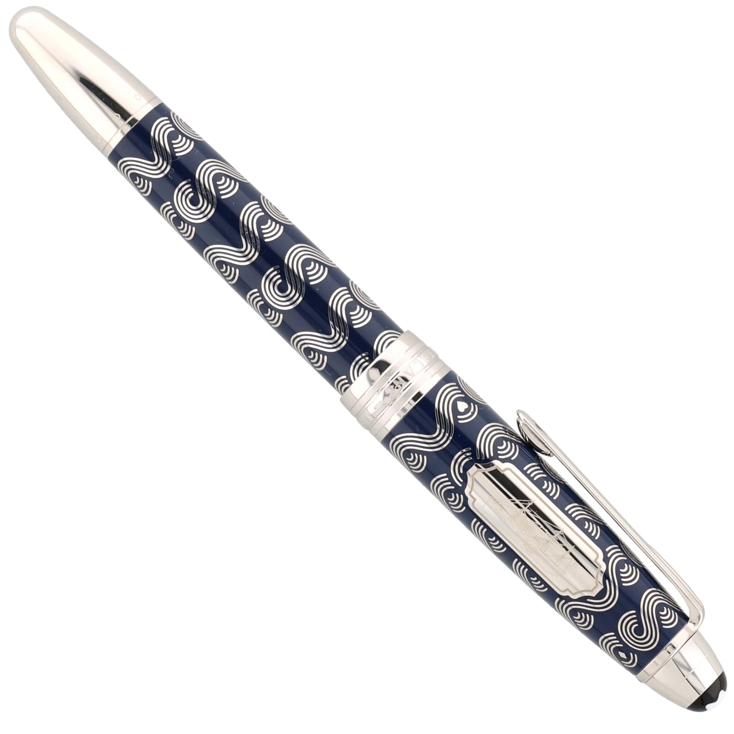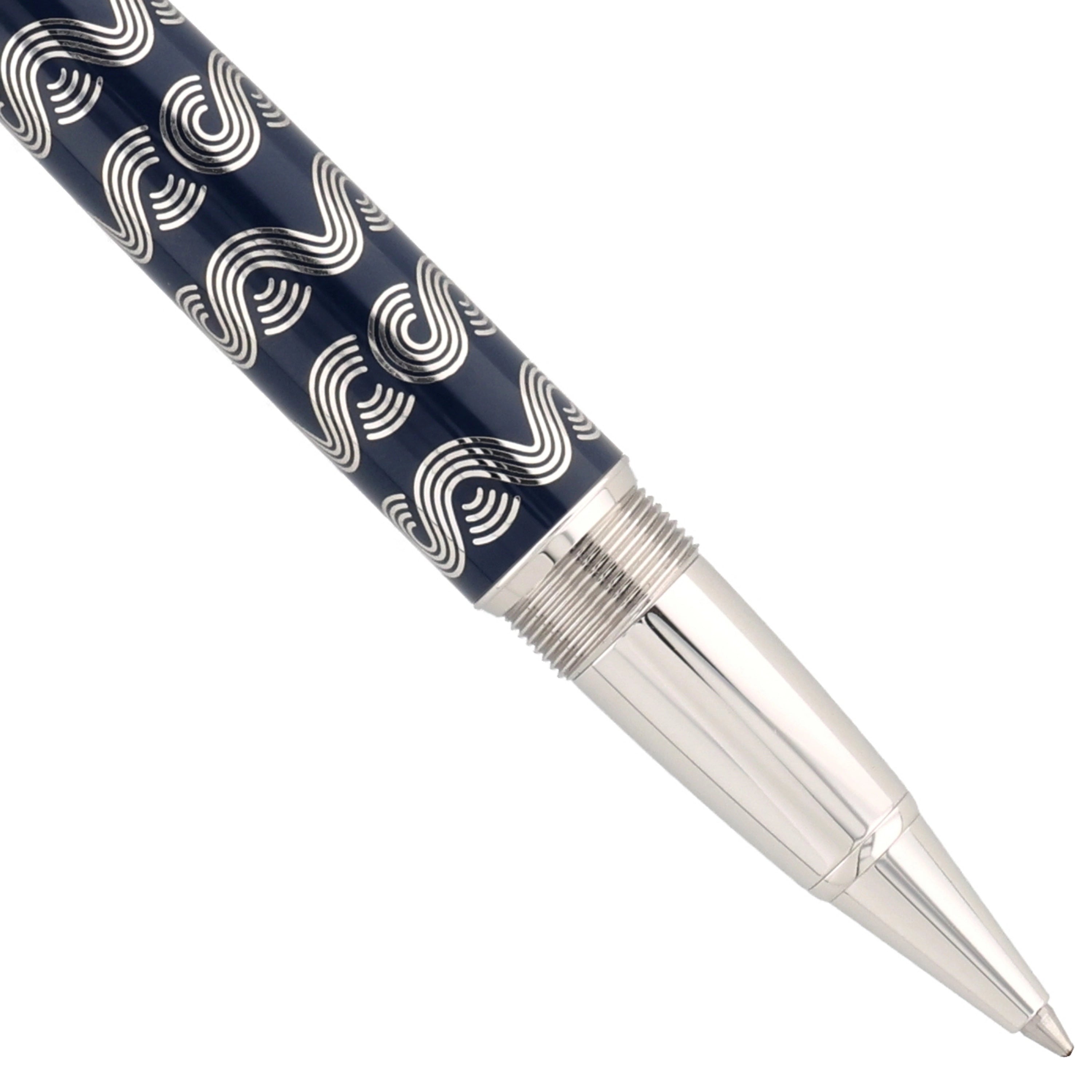 Dieses Schreibgerät besticht durch einen Metallkorpus mit transluzenter Lackierung, der von fein ausgearbeiteten Gravuren in Form eines eleganten Wellenmusters durchzogen ist. Die dekorativen Strukturen und dezenten Farbakzente greifen Motive aus Jules Vernes Welt von Zeit, Technik und Reisen auf. So verbindet dieses Schreibgerät erzählerische Inspiration mit der für Montblanc charakteristischen, luxuriösen Verarbeitung.