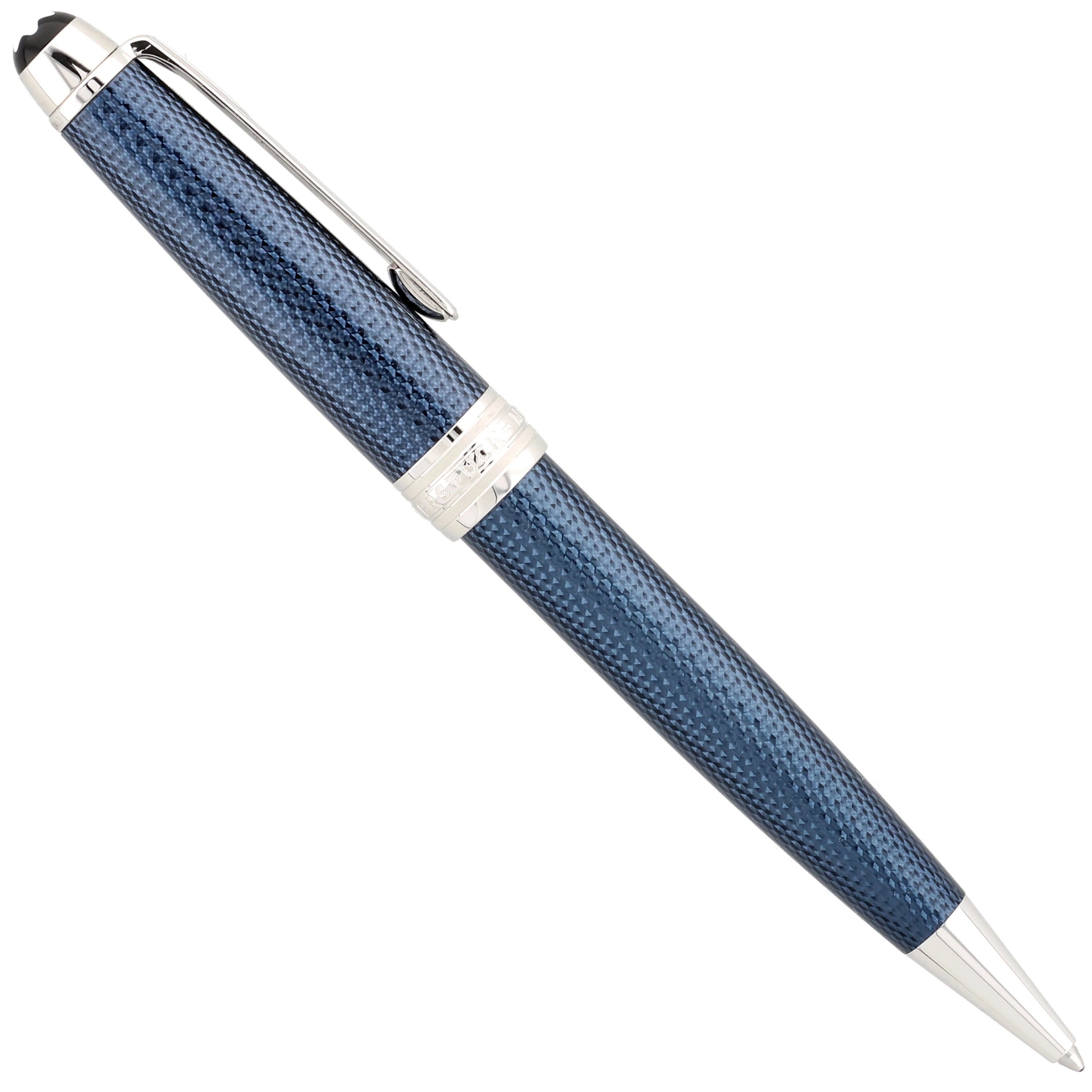 Das Schreibgerät besticht durch seine tiefblaue Lackoberfläche mit geometrischem Muster und platinierten Details, darunter der Clip und die Beschläge. Inspiriert von der magischen Stunde der Dämmerung verleiht es dem zeitlosen Design der Meisterstück-Serie eine moderne Note.