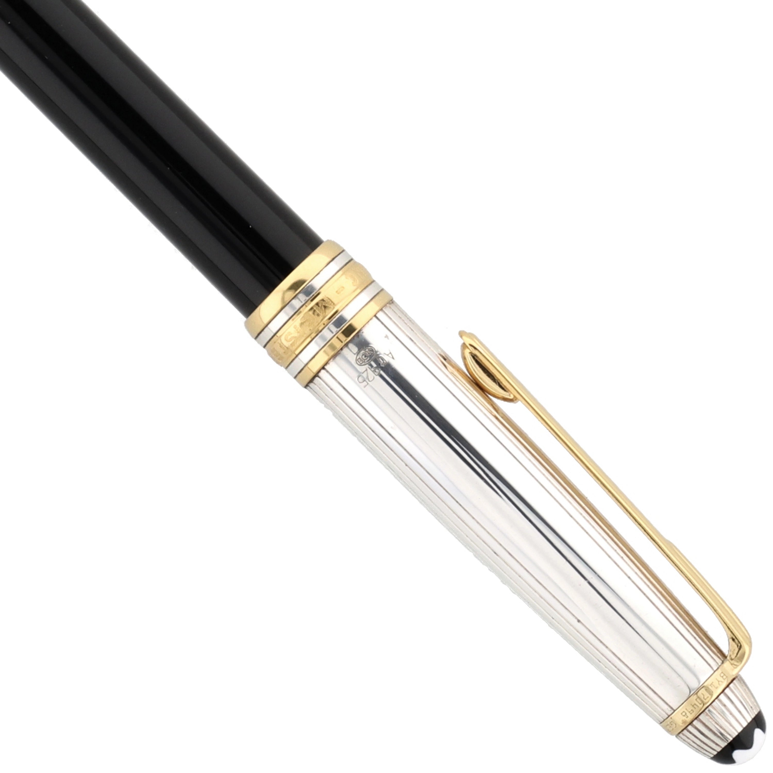 Der Korpus des Schreibgeräts wurde aus schwarzem Edelharz gefertigt. Die Kappe aus 925er Sterling Silber stellt das Highlight dar und verleiht dem ikonischen, zeitlosen Stil der Meisterstück-Serie eine exquisite Note. Vergoldete Details, darunter der Clip und die Beschläge, fügen sich nahtlos in das Gesamtbild ein und runden das Gesamtbild des Schreibgeräts stimmig ab.