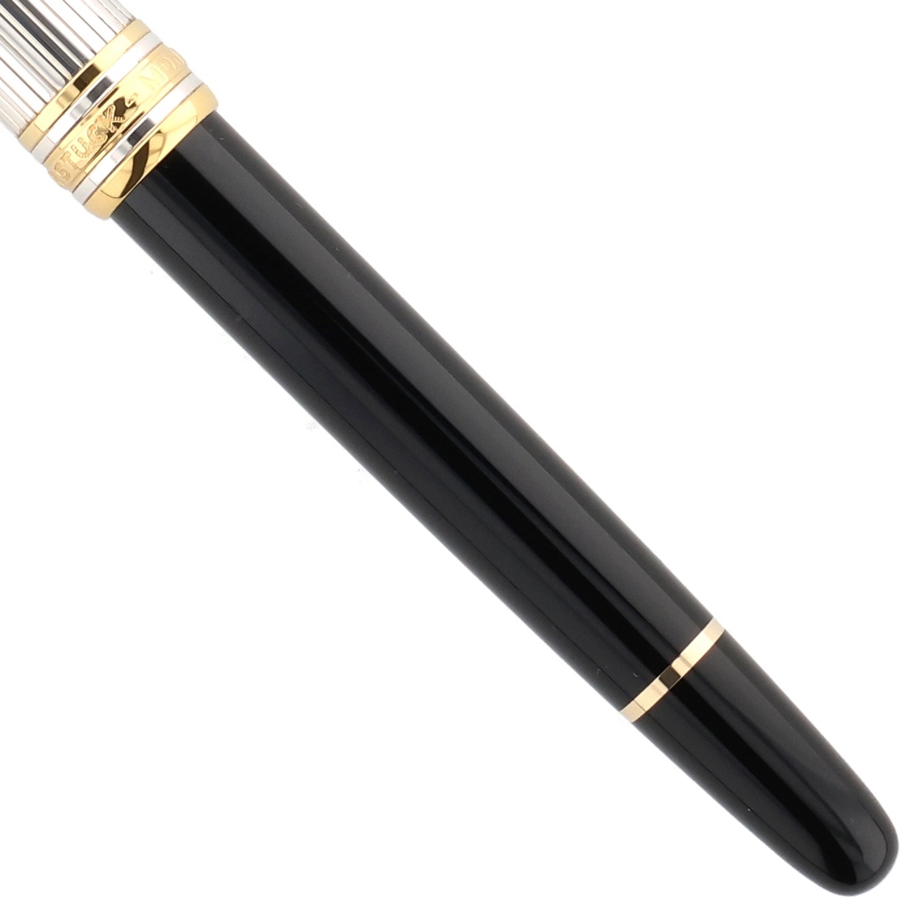 Der Korpus des Schreibgeräts wurde aus schwarzem Edelharz gefertigt. Die Kappe aus 925er Sterling Silber stellt das Highlight dar und verleiht dem ikonischen, zeitlosen Stil der Meisterstück-Serie eine exquisite Note. Vergoldete Details, darunter der Clip und die Beschläge, fügen sich nahtlos in das Gesamtbild ein und runden das Gesamtbild des Schreibgeräts stimmig ab.