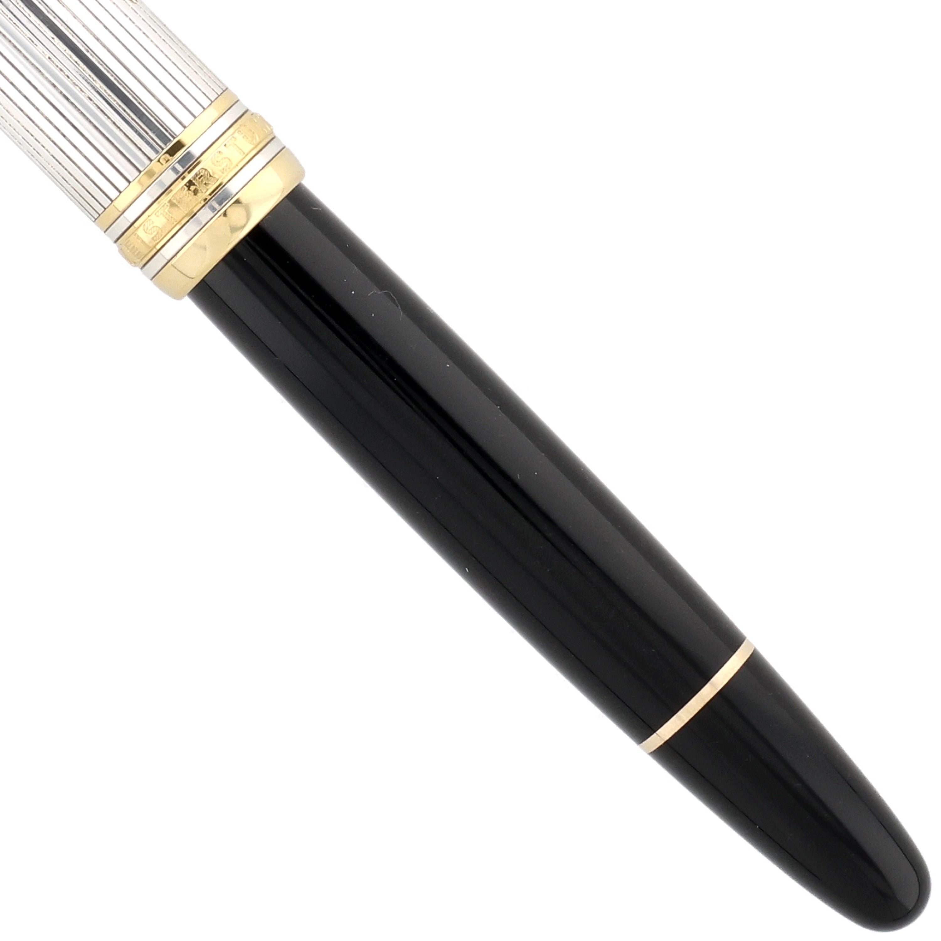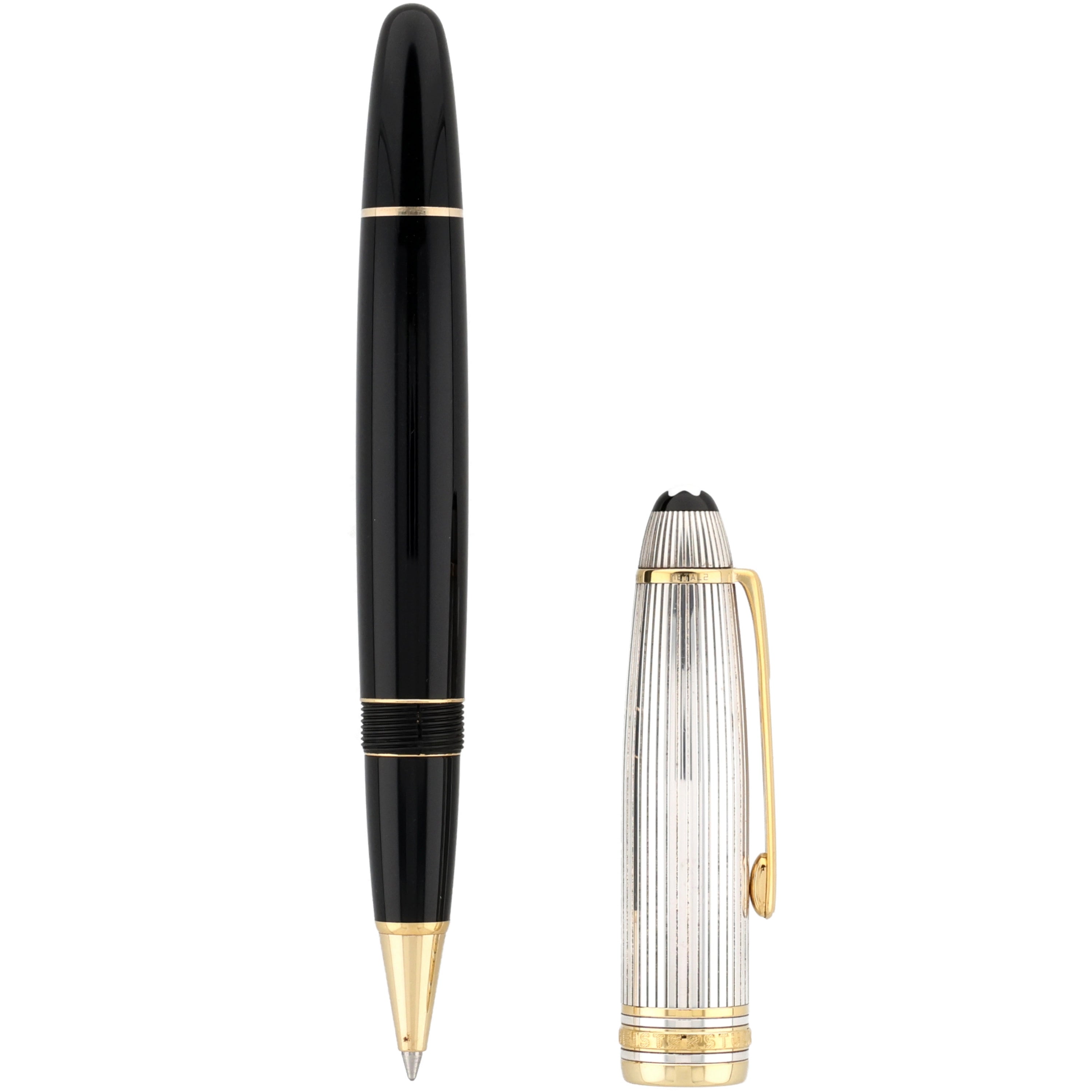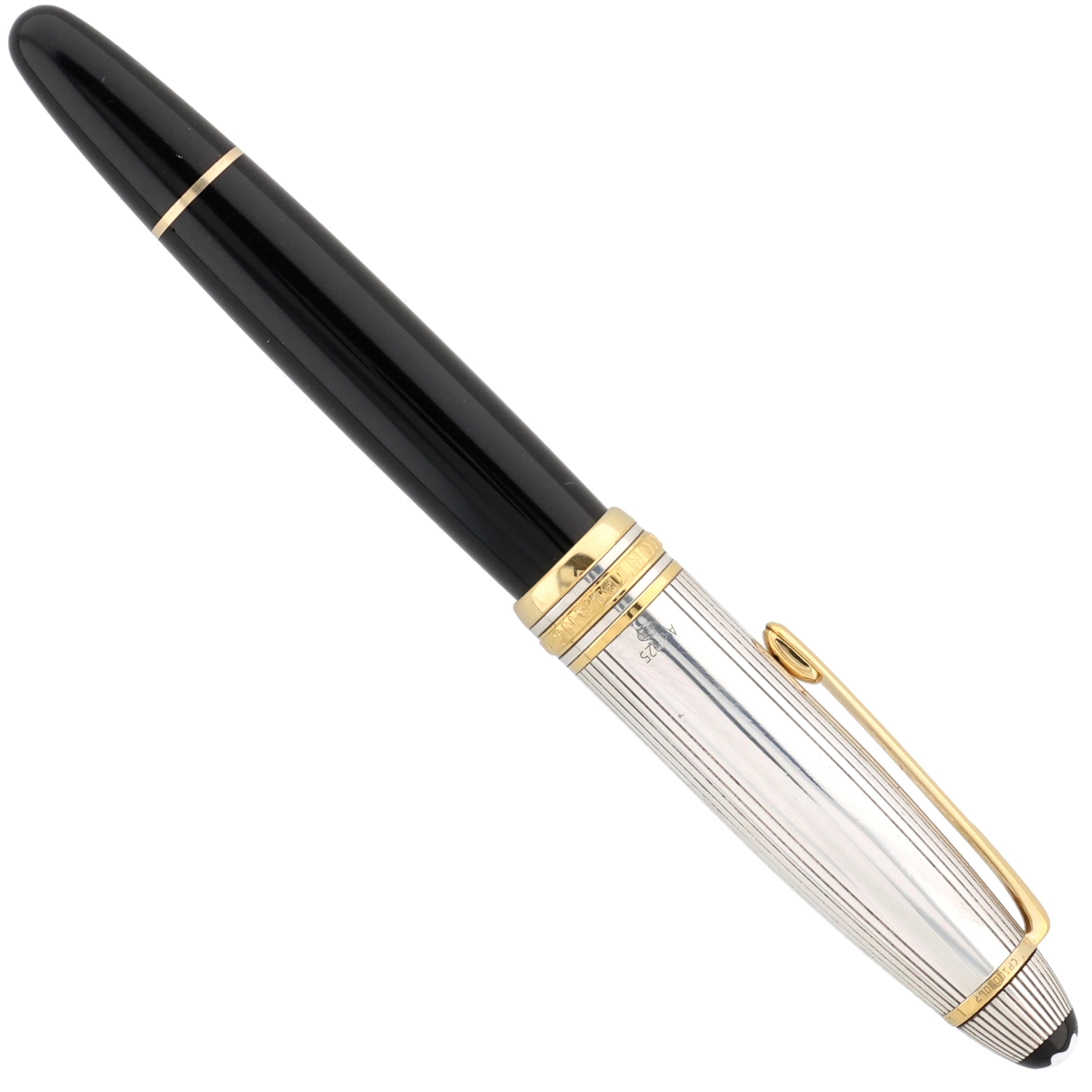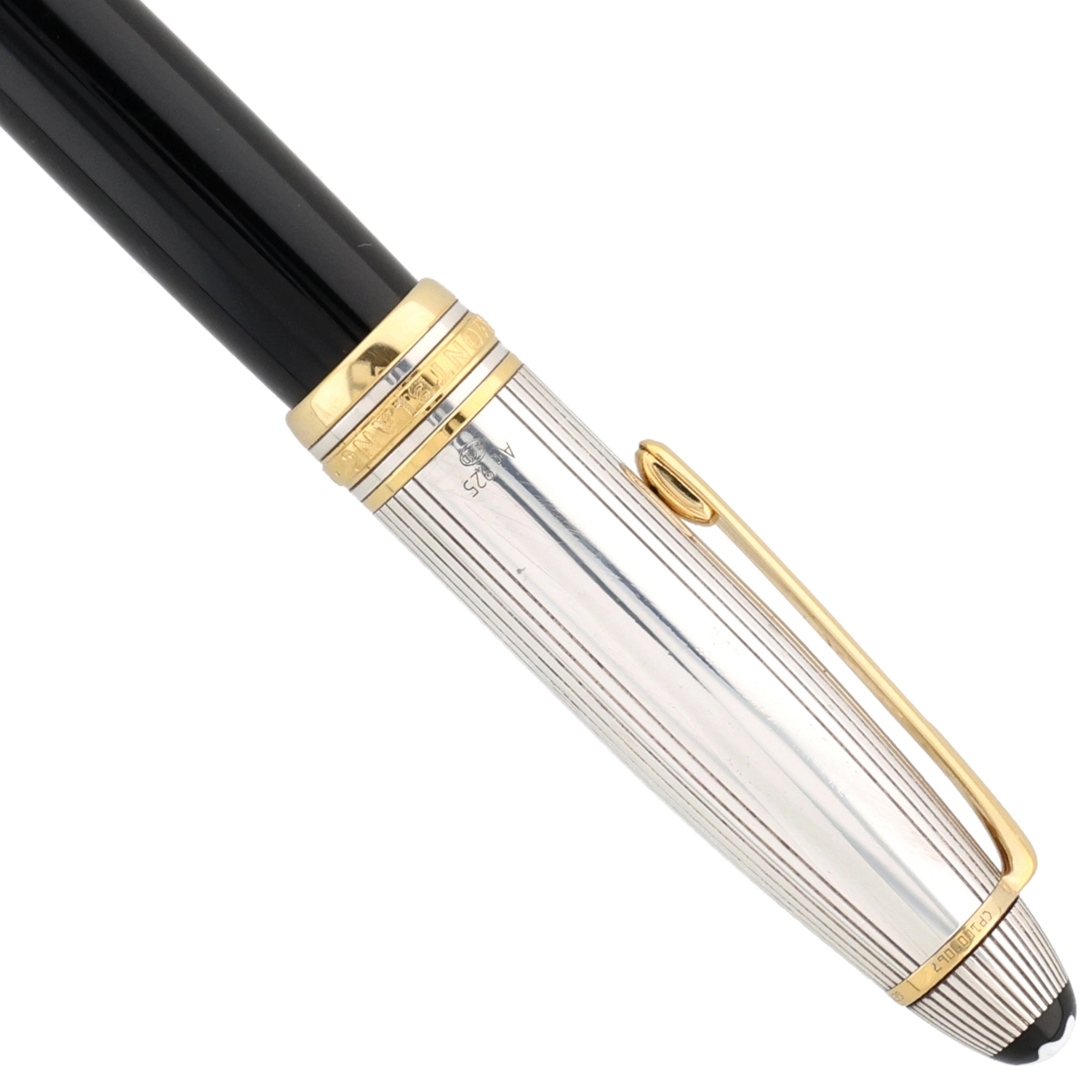 Der Korpus des Schreibgeräts wurde aus schwarzem Edelharz gefertigt. Die Kappe aus 925er Sterling Silber stellt das Highlight dar und verleiht dem ikonischen, zeitlosen Stil der Meisterstück-Serie eine exquisite Note. Vergoldete Details, darunter der Clip und die Beschläge, fügen sich nahtlos in das Gesamtbild ein und runden das Gesamtbild des Schreibgeräts stimmig ab.