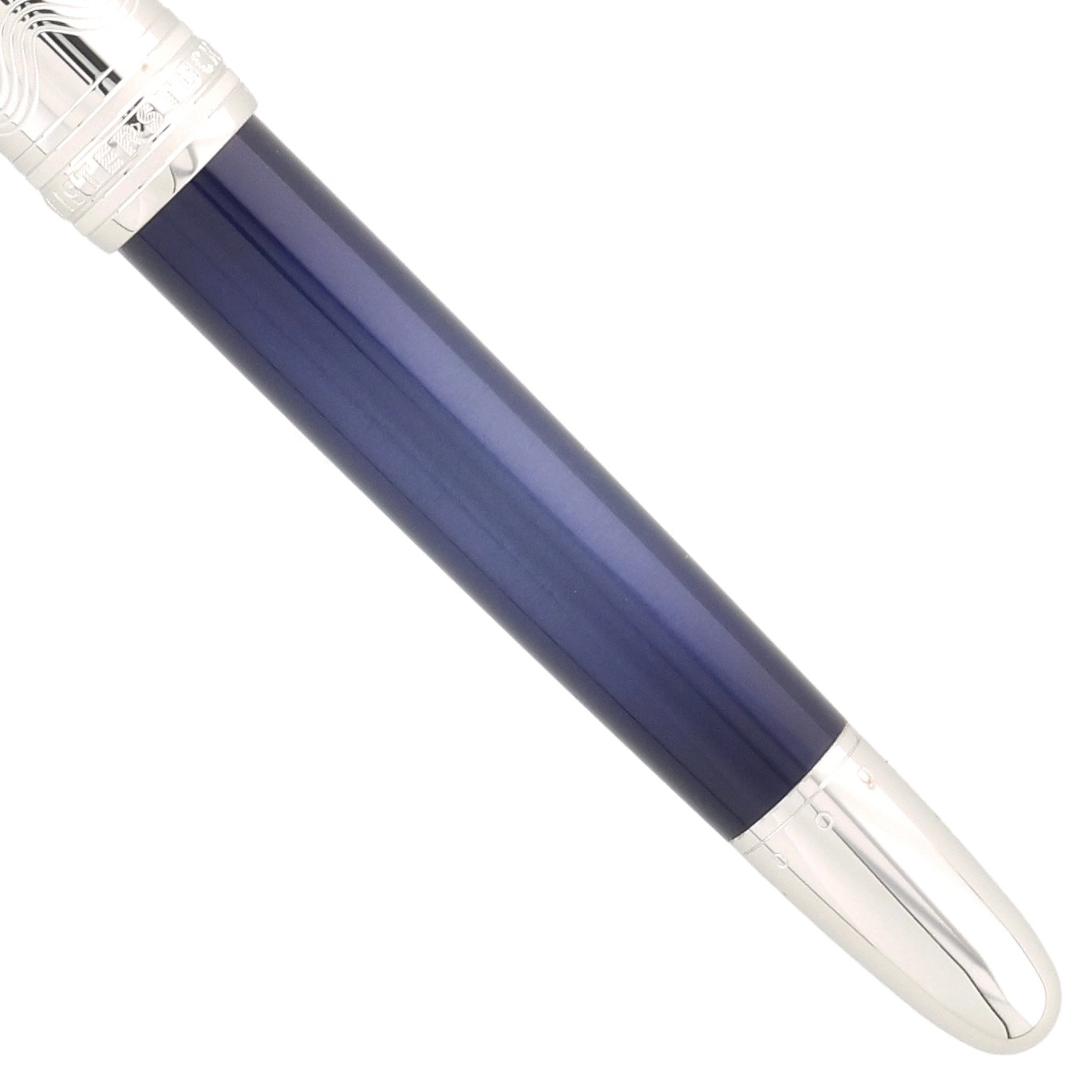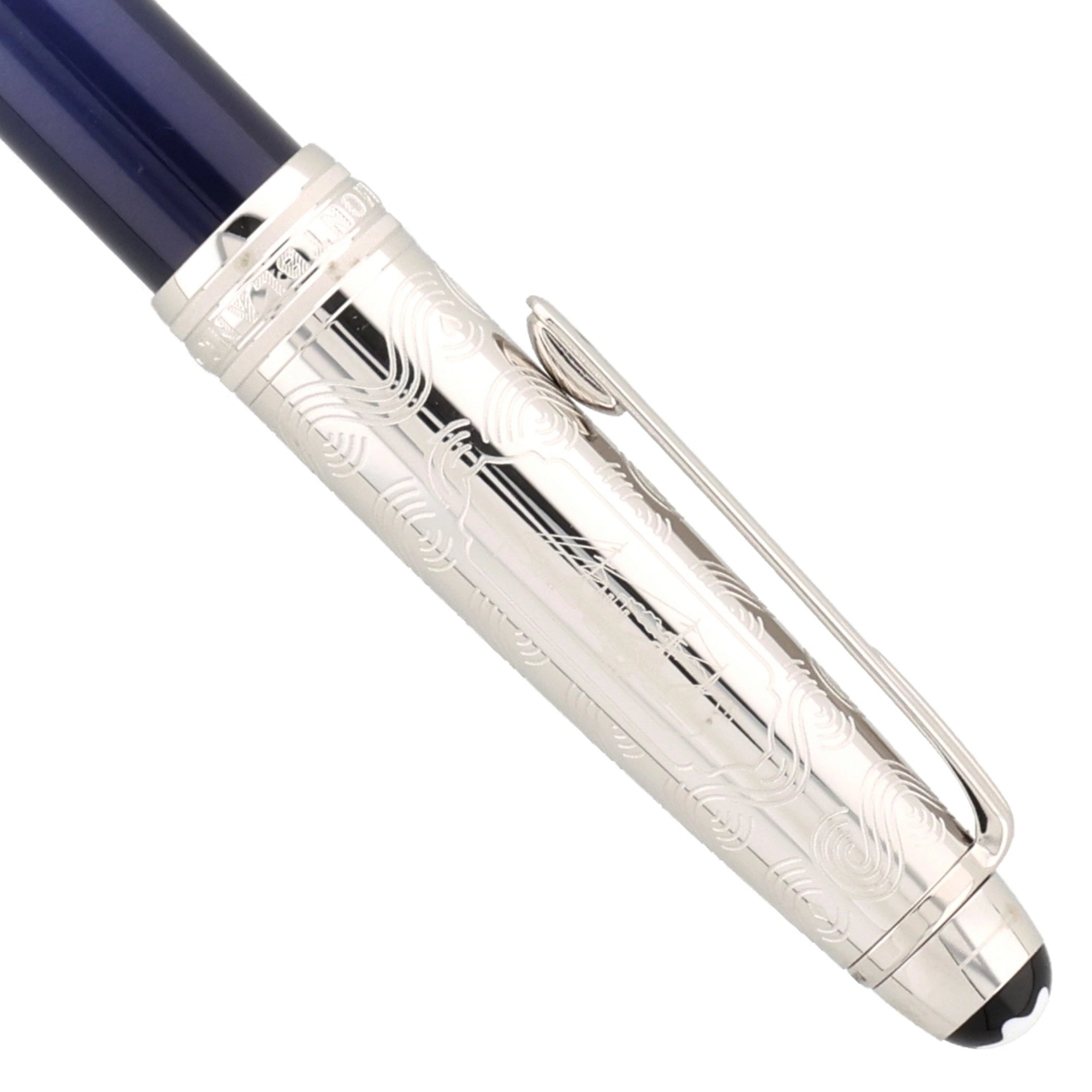 Das Schreibgerät besitzt einen Korpus aus blauem Edelharz, dessen Farbton an das Mittelmeer erinnert und den maritimen Charakter der ersten Reiseetappe aufgreift. Die platin-beschichtete Kappe ist mit fein gravierten Wellen, einem Dampfschiff sowie Kartenfarben verziert. Am Kappenkopf erinnern die Gravuren „18“ und „80“ an die Dauer der ersten Etappe und der gesamten Reise, während der Clip mit einem Pik-Ass in schwarzem Lack Foggs Leidenschaft für Kartenspiele zitiert.