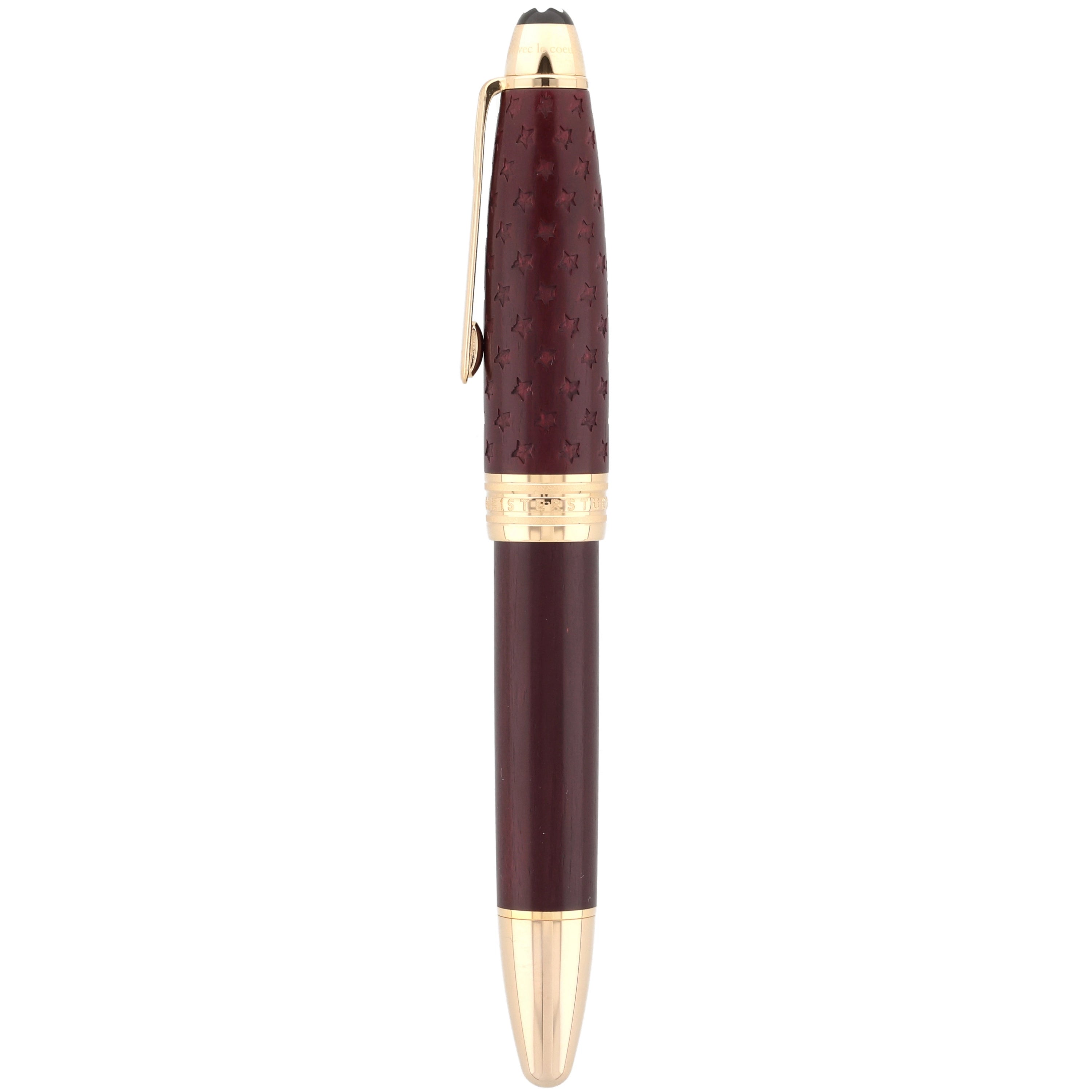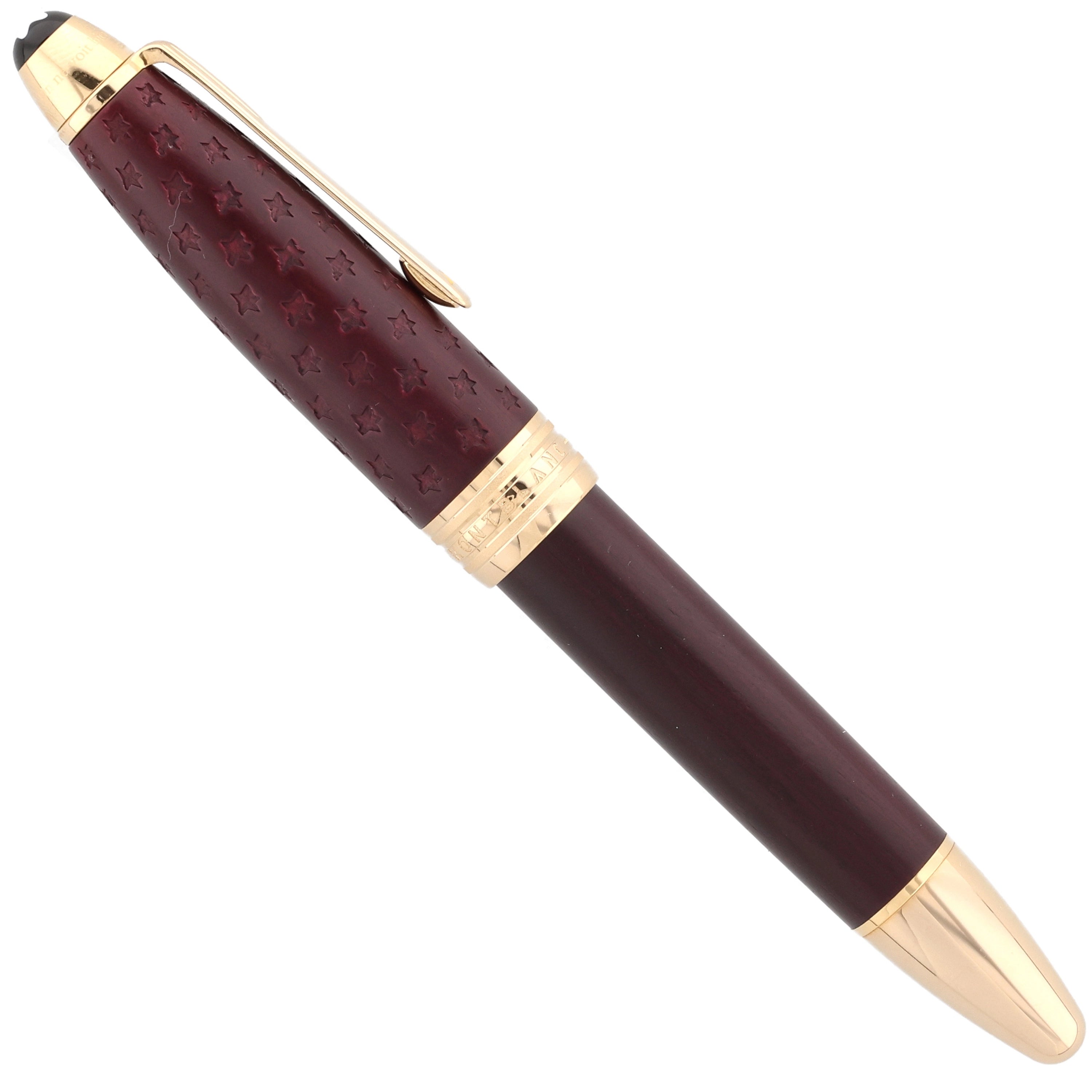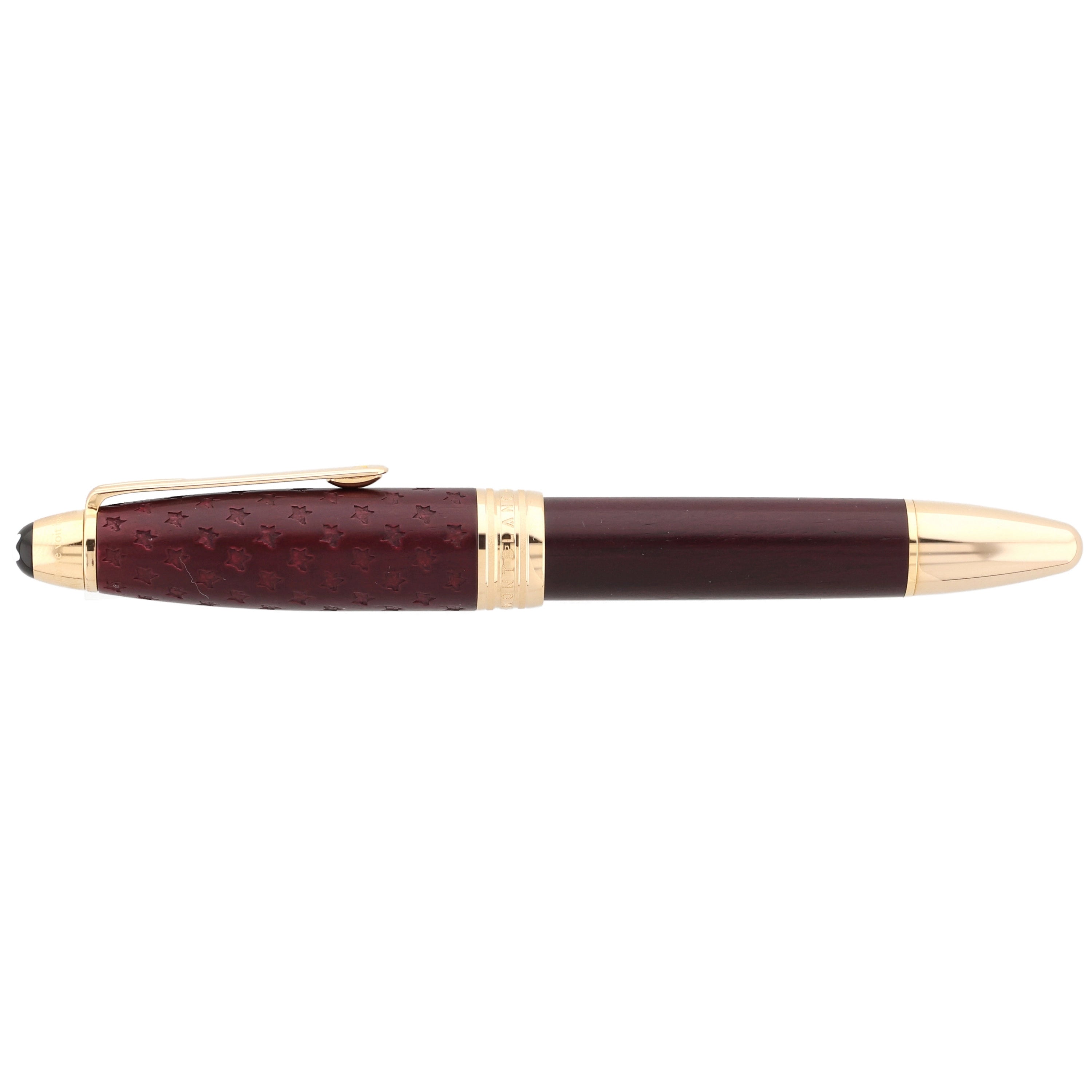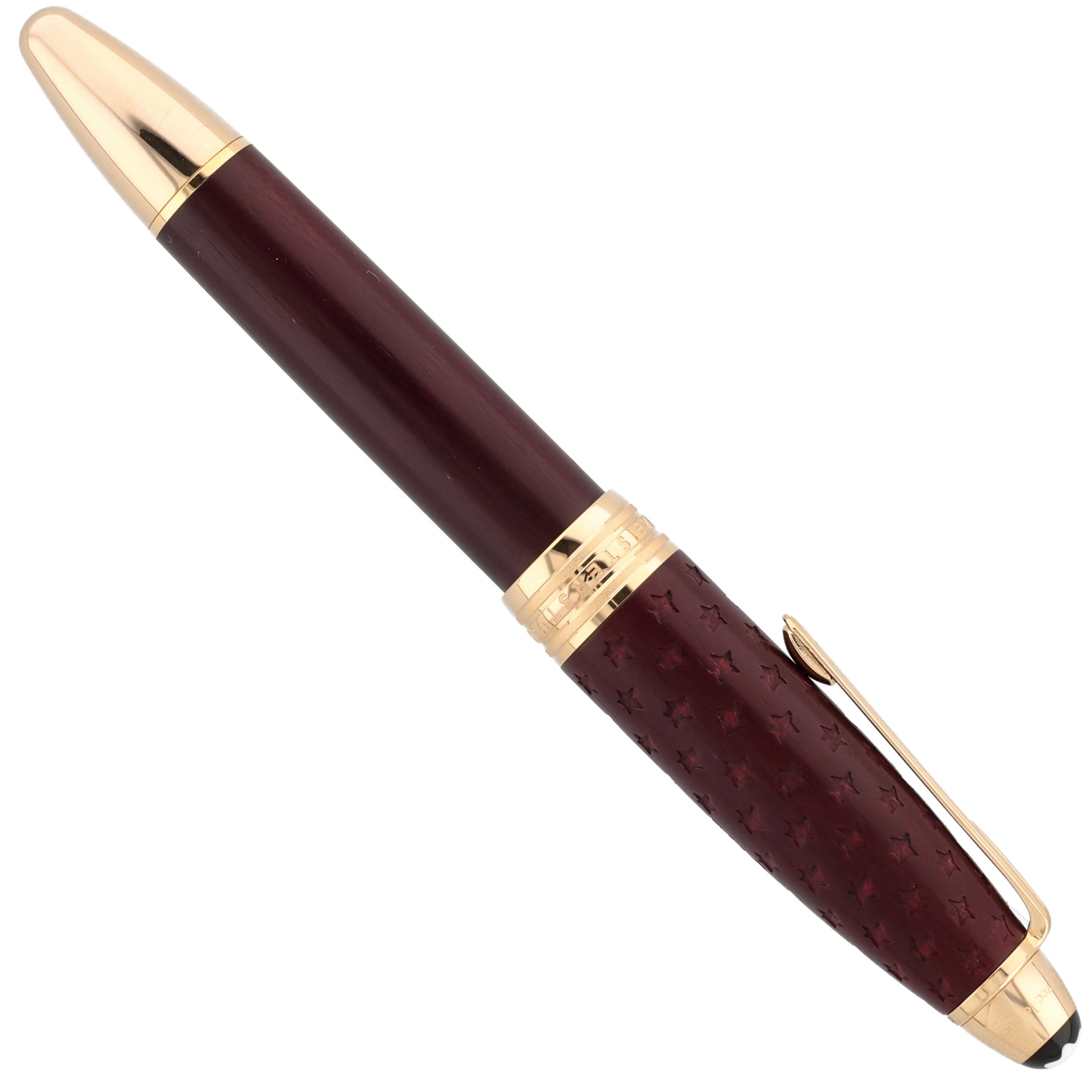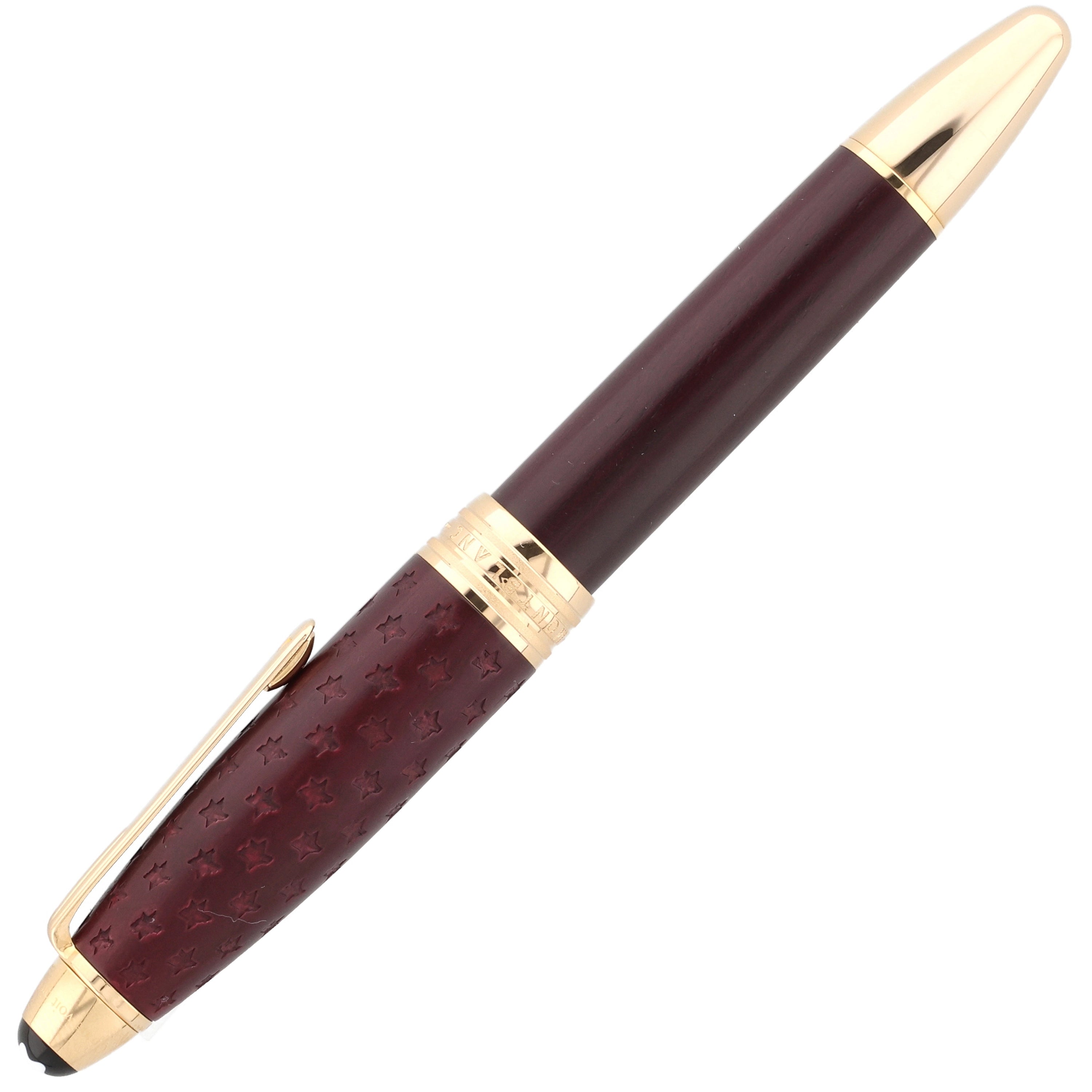 Gefertigt aus fein verarbeitetem Holz, das anschließend in einem tiefen Burgundton lackiert wurde, präsentiert sich dieses Schreibgerät als außergewöhnliche Interpretation des Meisterstücks. In das Holz sind kunstvoll filigrane Motive – insbesondere Sterne – eingearbeitet, die dem Schreibgerät eine besondere Tiefe und Struktur verleihen. Vergoldete Beschläge setzen edle Akzente und unterstreichen den luxuriösen Charakter des Designs. Ein lackierter Stern am Clip sowie die Gravuren am Kappenkopf greifen zusätzlich Symboliken aus Antoine de Saint-Exupérys Meisterwerk „Der kleine Prinz“ auf und machen dieses Schreibgerät zu einer stilvollen Hommage an die poetische Welt der berühmten Erzählung.