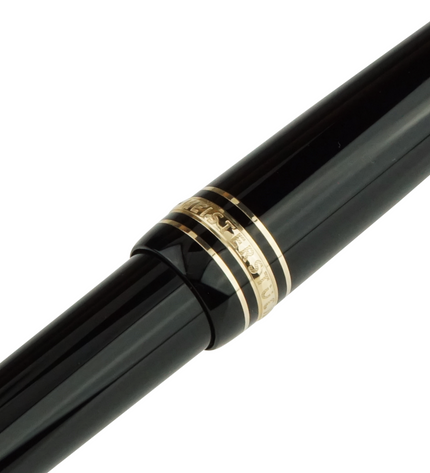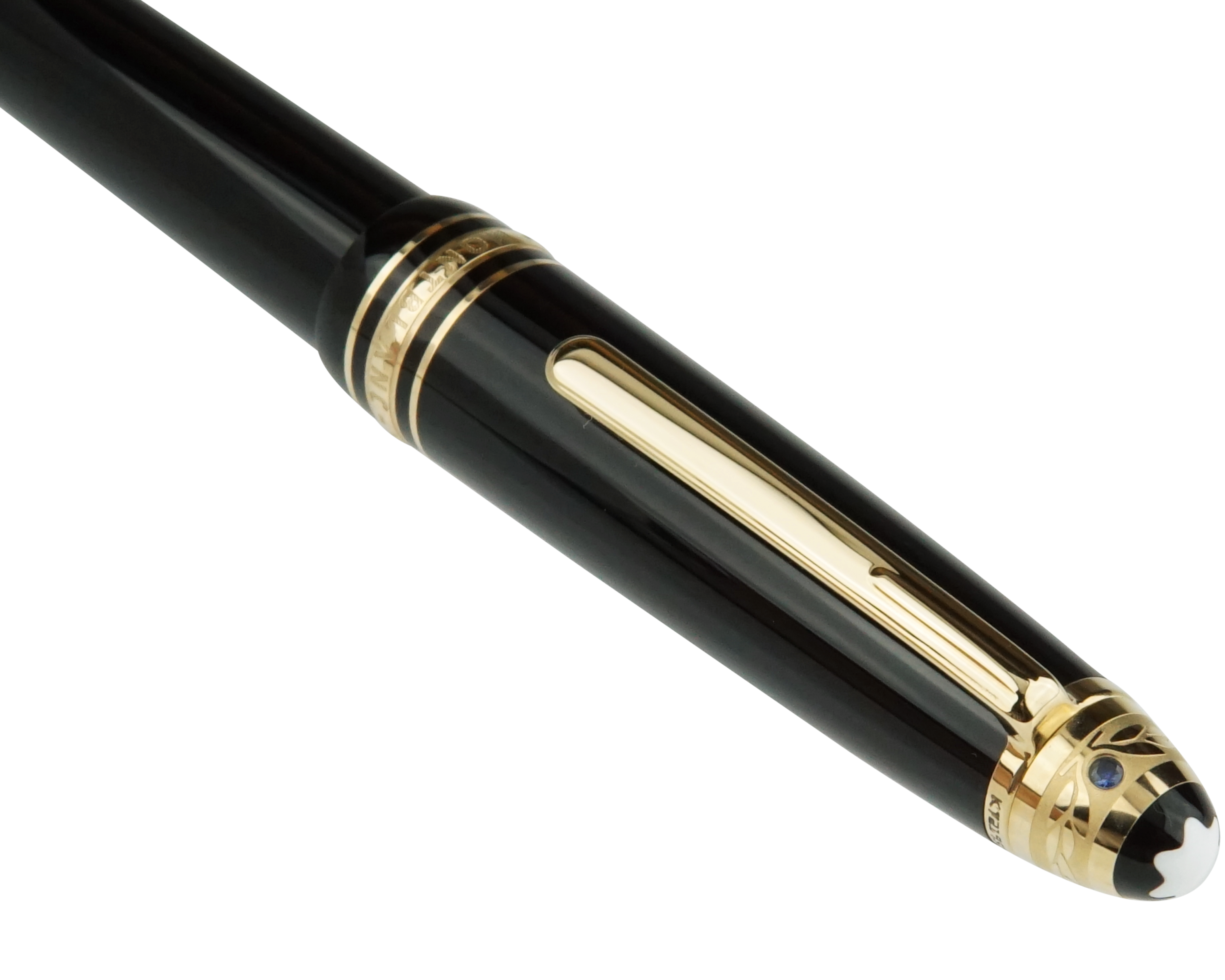 Dieses Schreibgerät besticht durch sein edles schwarzes Edelharz und die vergoldeten Details, darunter der Clip und die Beschläge. Ein besonderes Highlight der UNICEF-Kooperation ist der goldene Ring oberhalb des Clips, in den ein Olivenkranz und ein strahlender Saphir (ca. 0,02 ct.) eingearbeitet wurden. Dieses Detail verleiht dem zeitlosen, klassischen Design der Meisterstück-Serie eine luxuriöse Note.