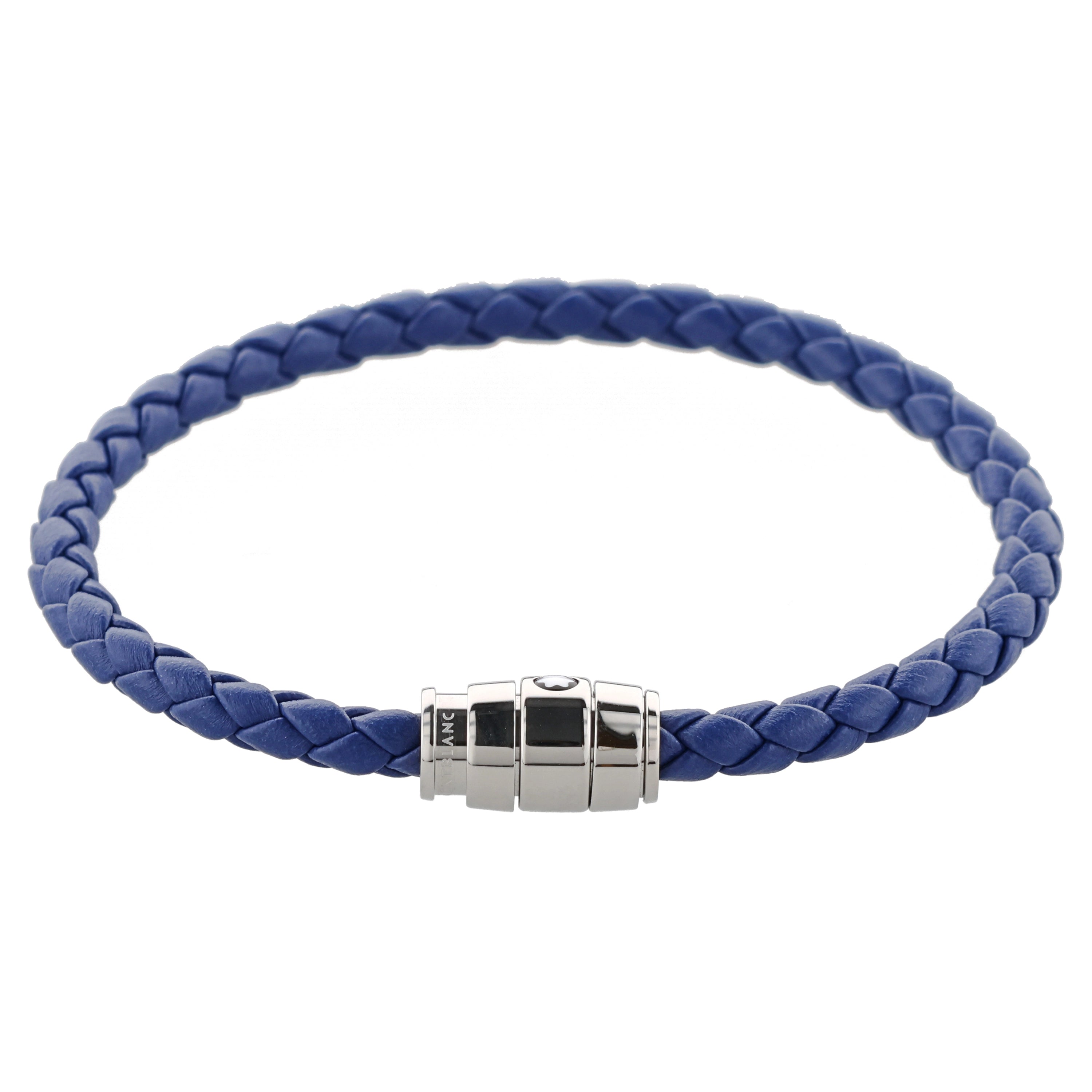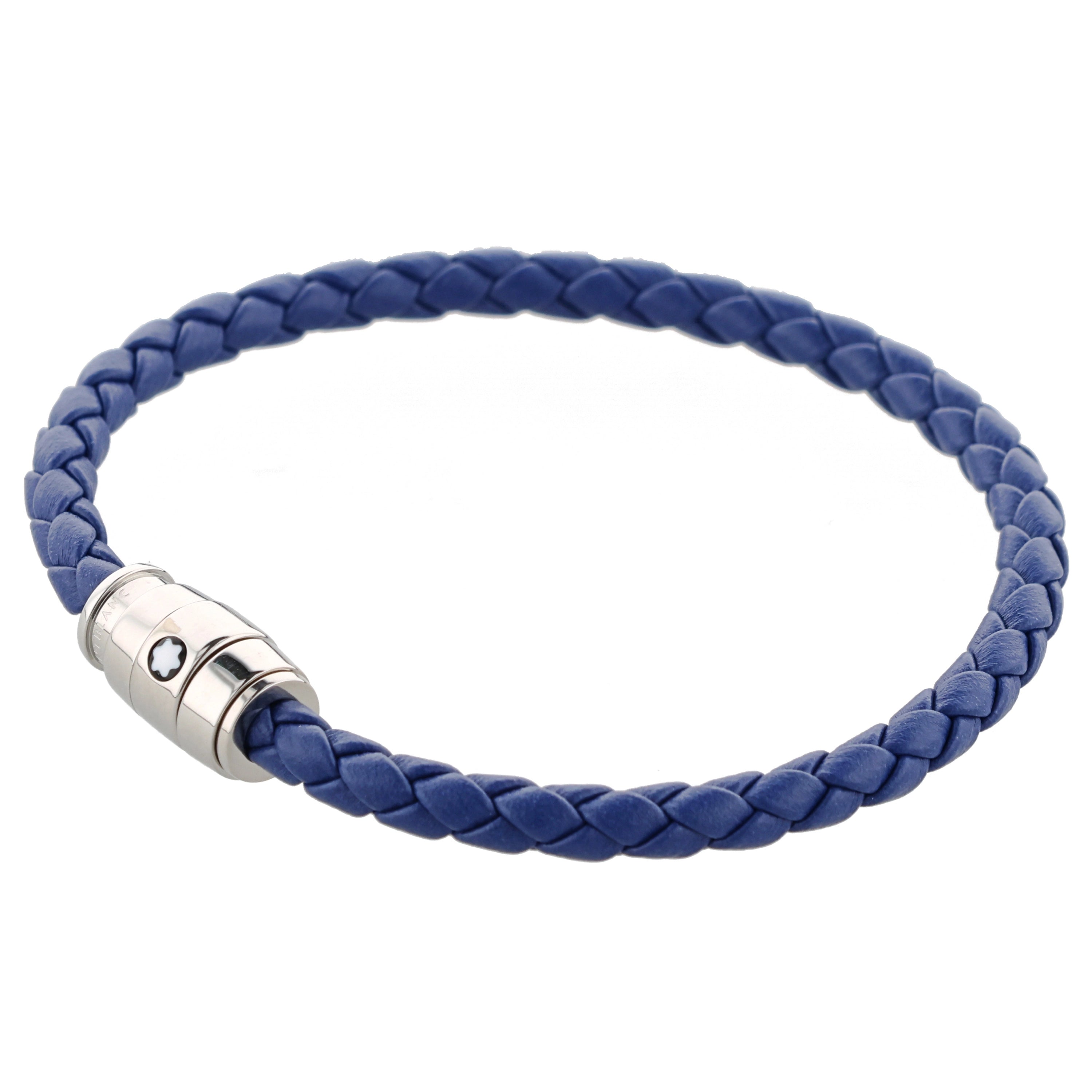 Montblanc Meisterstück Schmuckarmband Geflochtenes Leder Stainless Steel Blau - ID: 130899