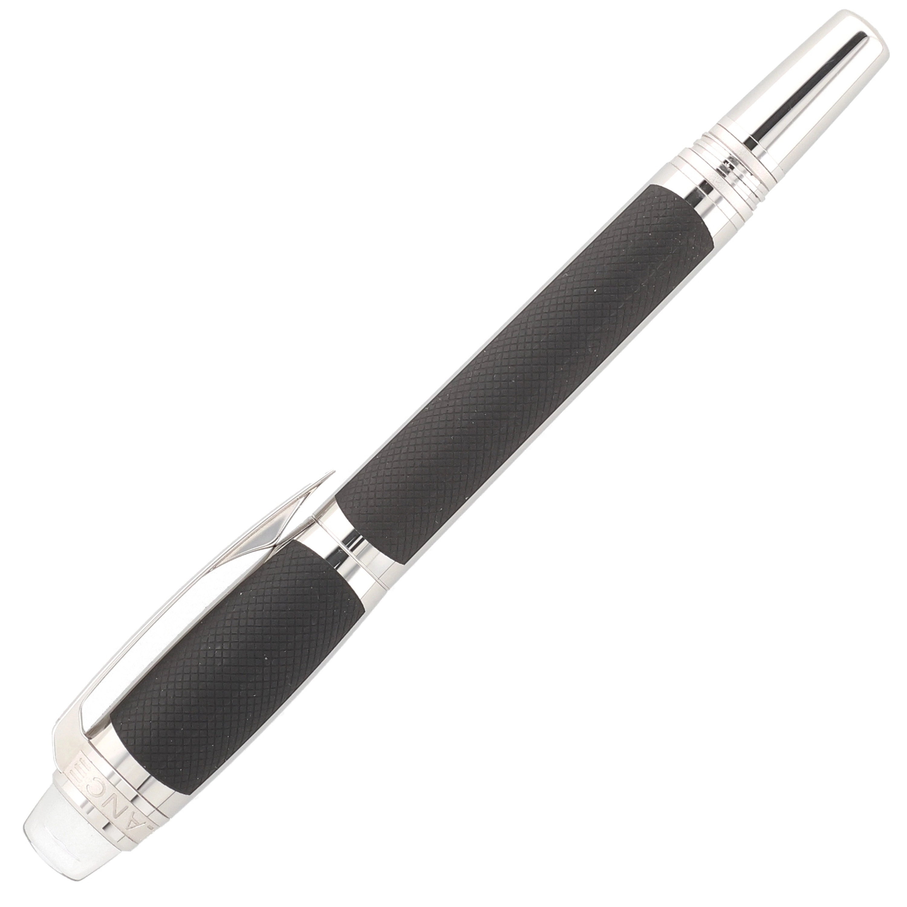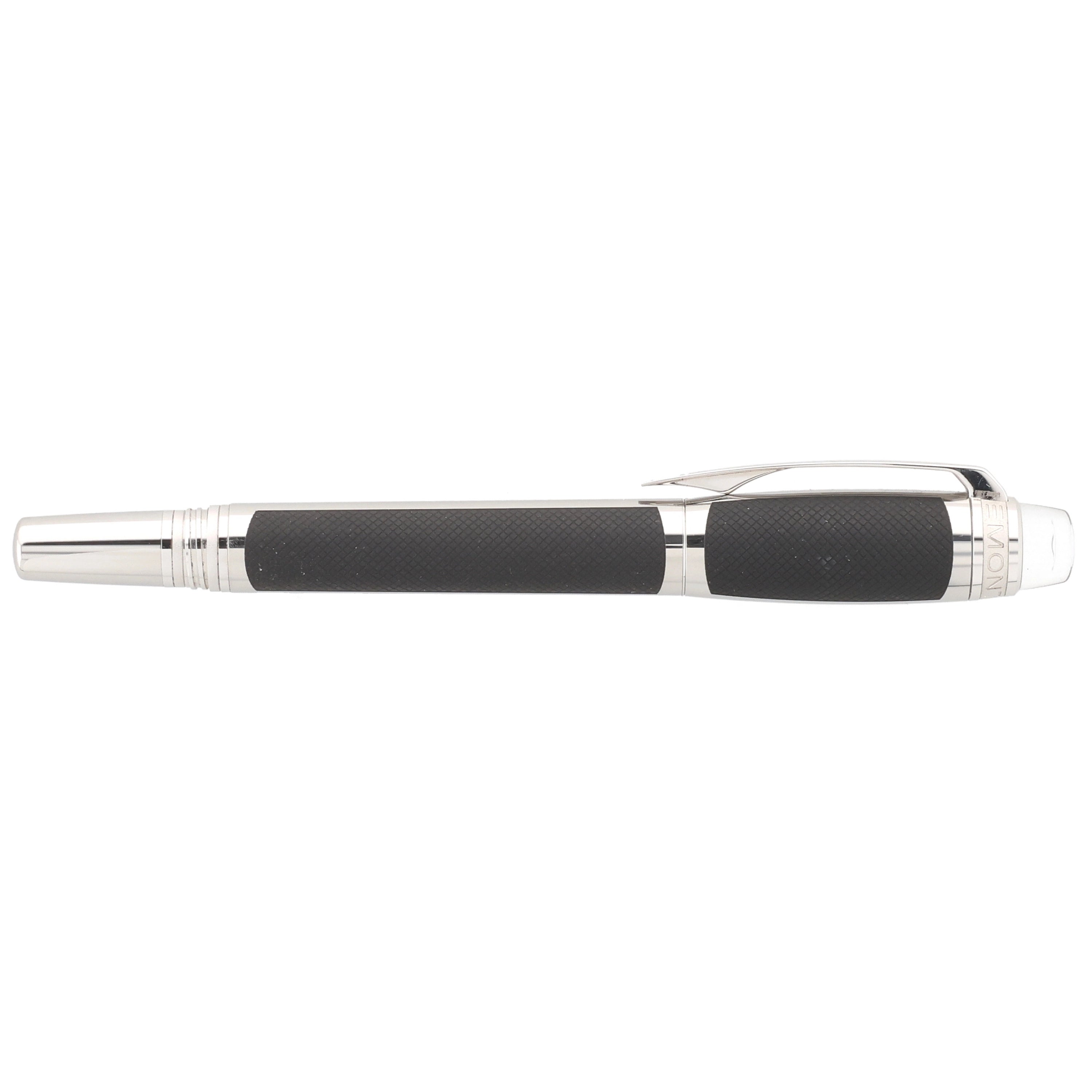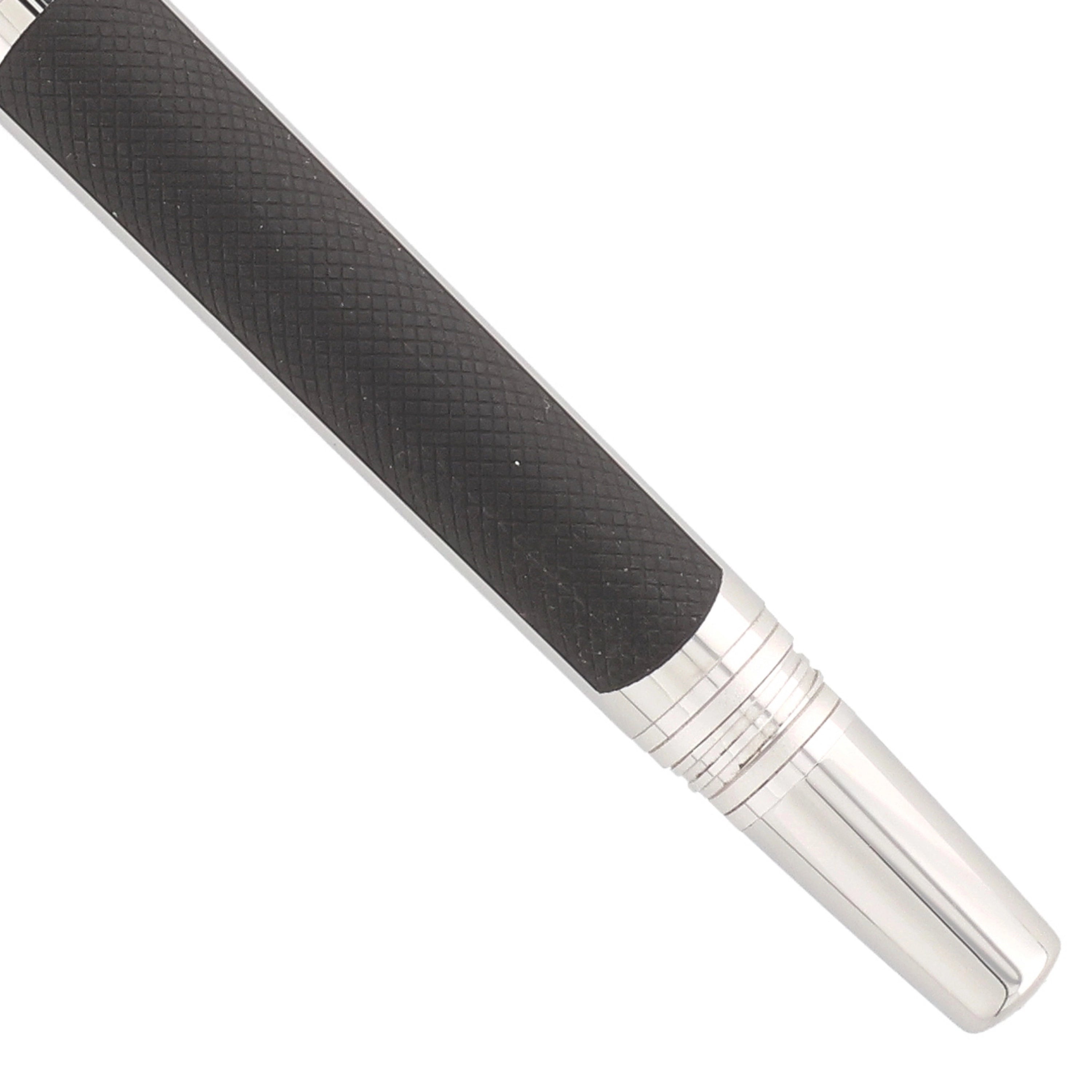 Korpus und Kappe des Schreibgeräts wurden aus hochwertigem Stainless Steel gefertigt und mit dunkelgrauen Intarsien versehen, deren fein strukturierte Oberfläche ein gleichermaßen visuelles wie haptisches Erlebnis schafft. Platinierte Details, darunter der Clip, fügen sich harmonisch ins Gesamtbild ein und vollenden das sportlich-elegante Design stimmig.