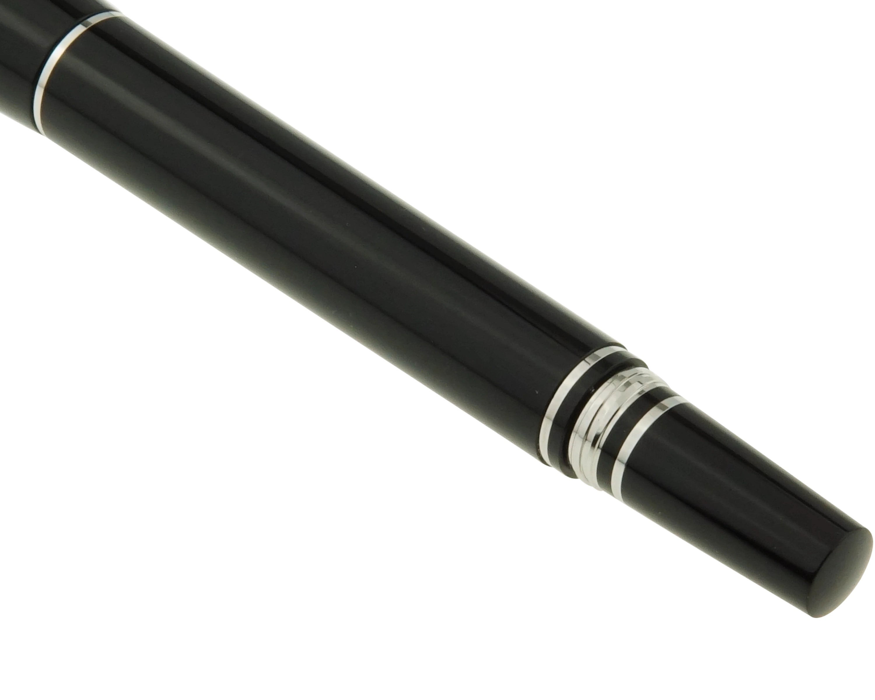 Gefertigt aus tiefschwarzem Edelharz und veredelt mit platinierten Akzenten, strahlt dieses Schreibgerät moderne Eleganz aus.