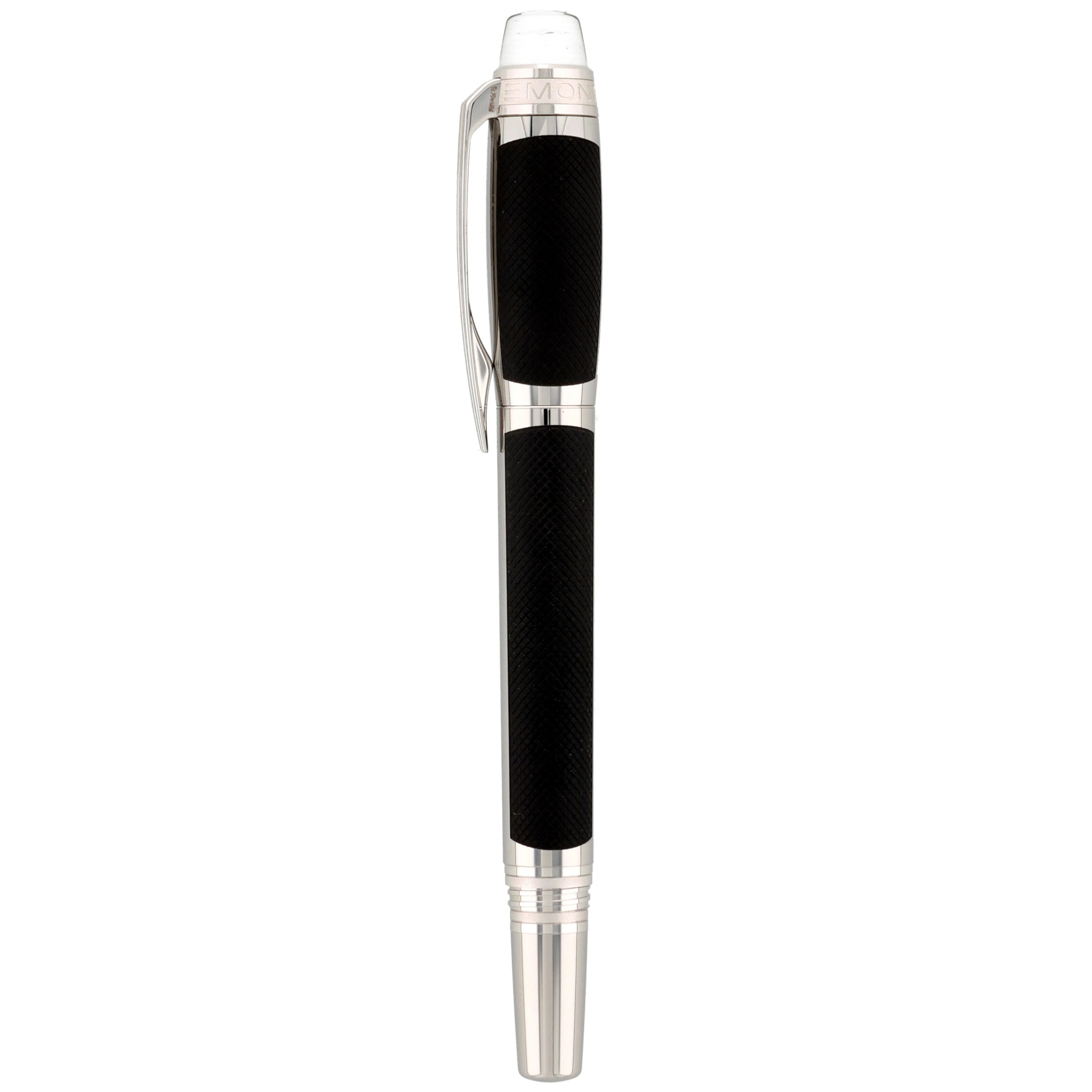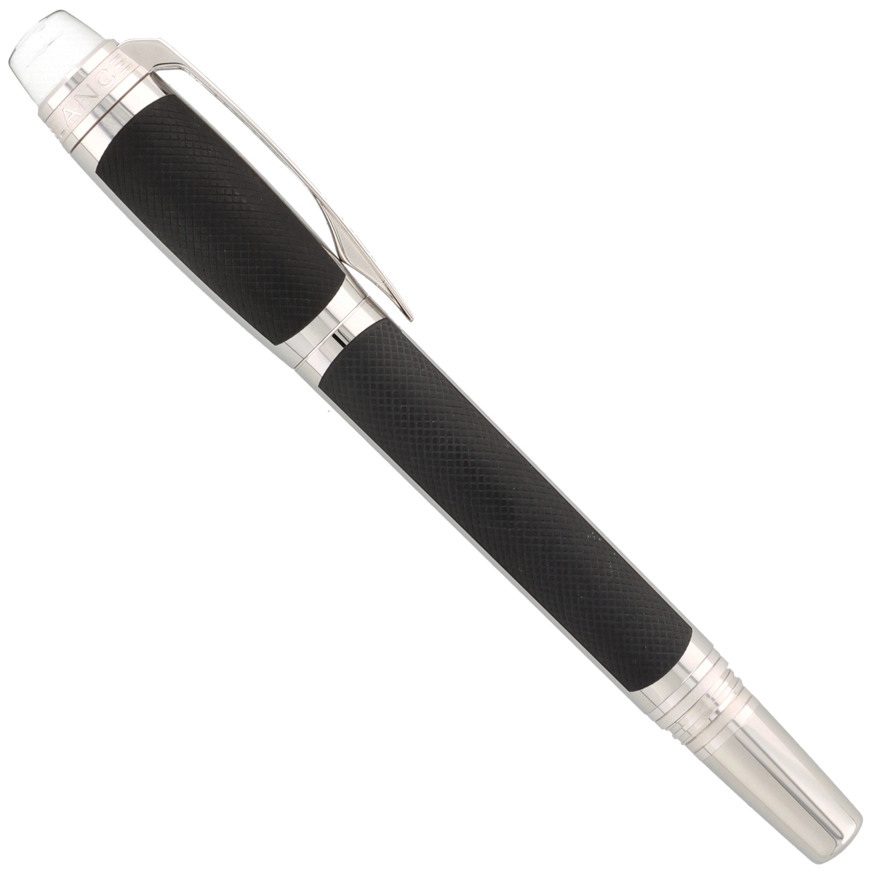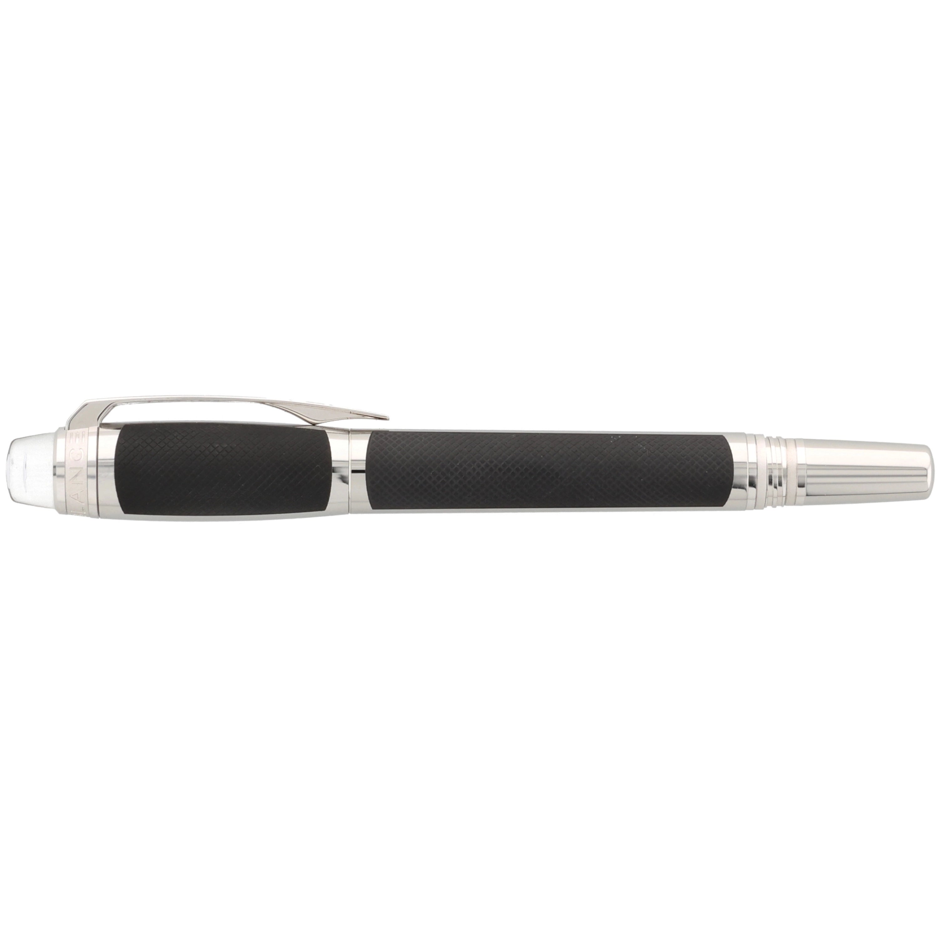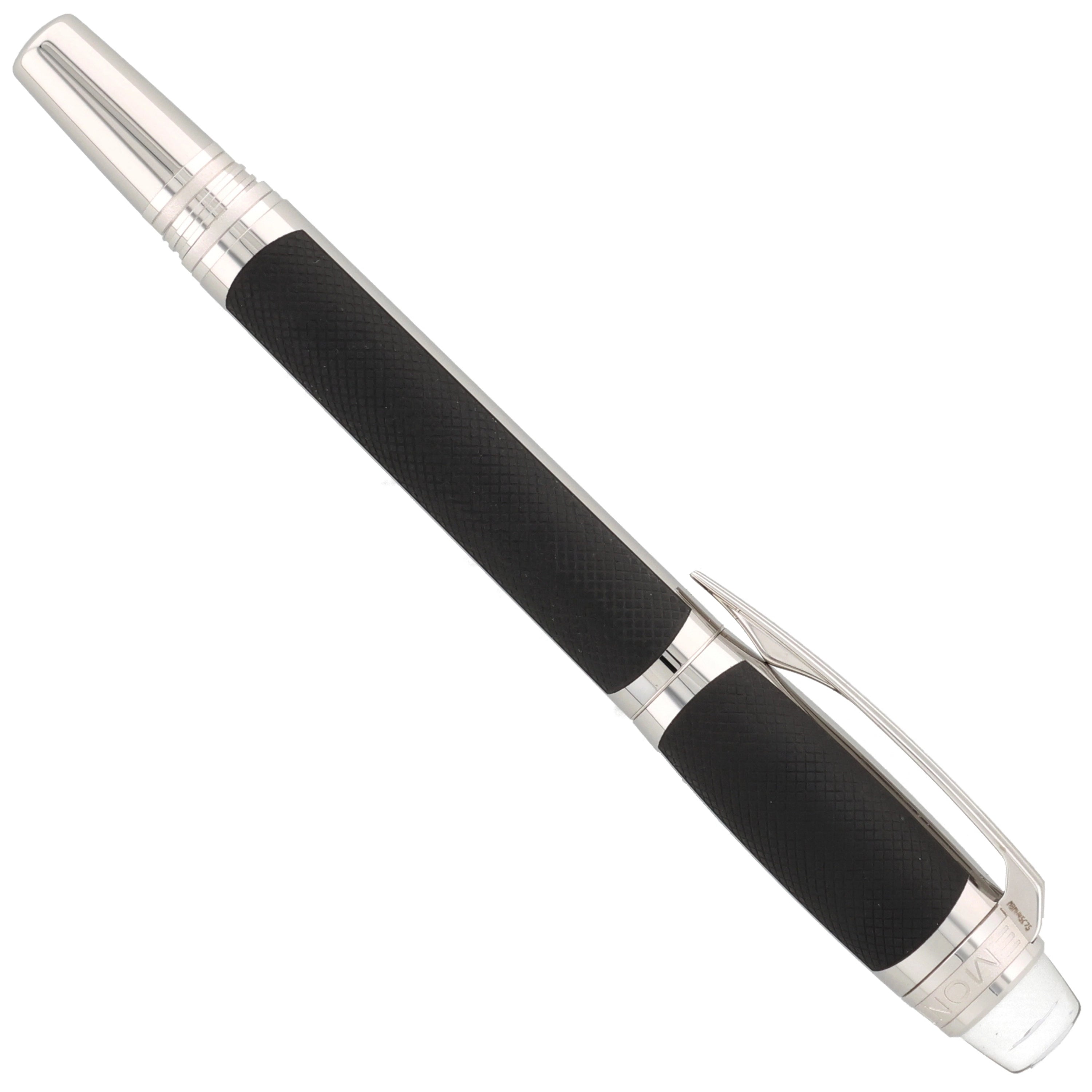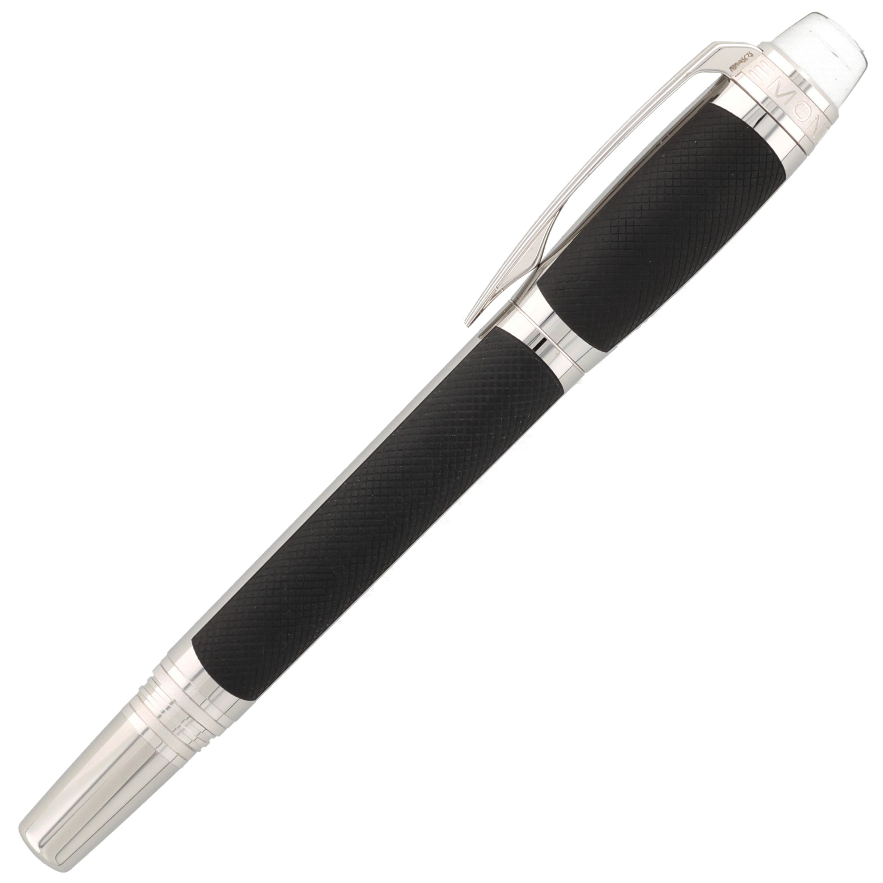 Der aus Edelstahl gefertigte Schreiber besticht durch seine moderne Gestaltung. Kappe und Korpus sind teilweise mit einer grauen PVD-Beschichtung versehen, in die ein haptisch ansprechendes Muster eingearbeitet wurde. Die platinierten Details, darunter Clip und Beschläge, setzen elegante Akzente und runden das Design harmonisch ab. Ein weiteres Highlight ist das Griffstück, das mit einem präzisen Rautenmuster veredelt wurde und für eine angenehme Haptik sorgt.