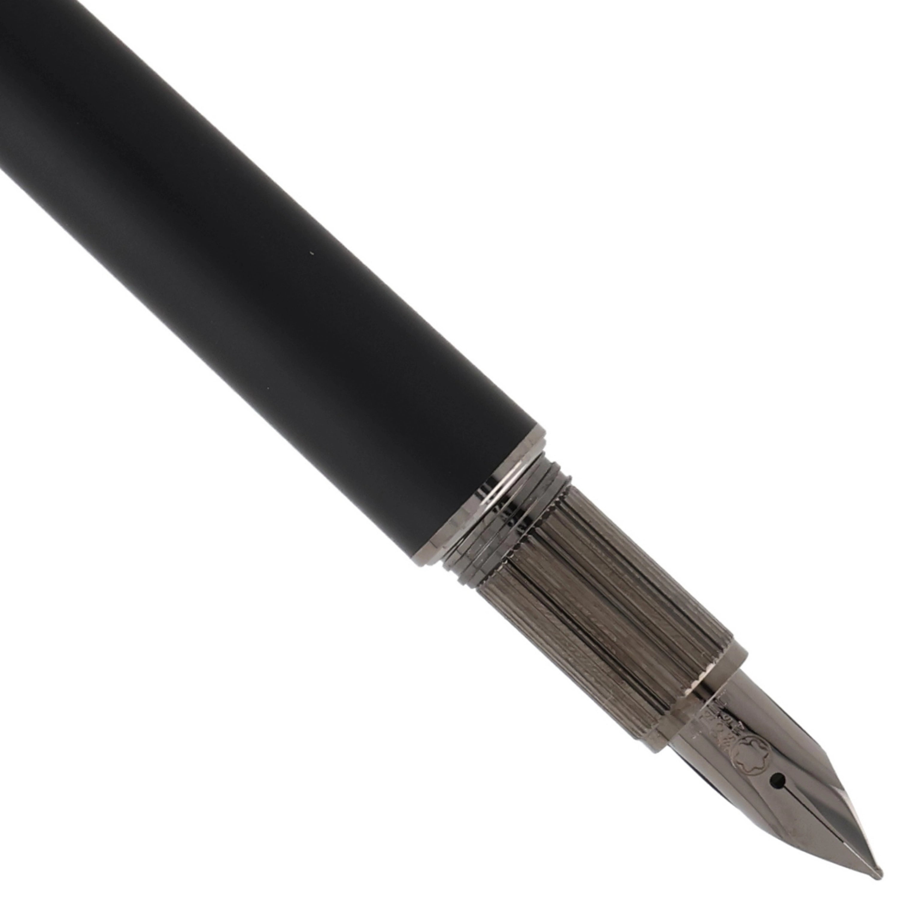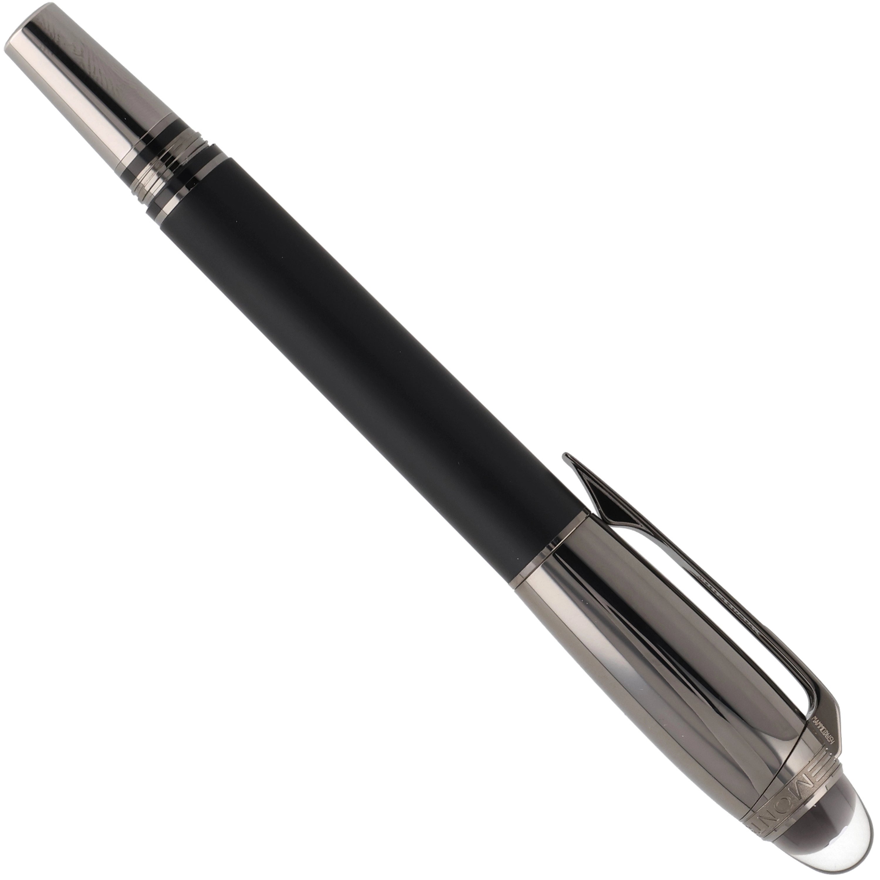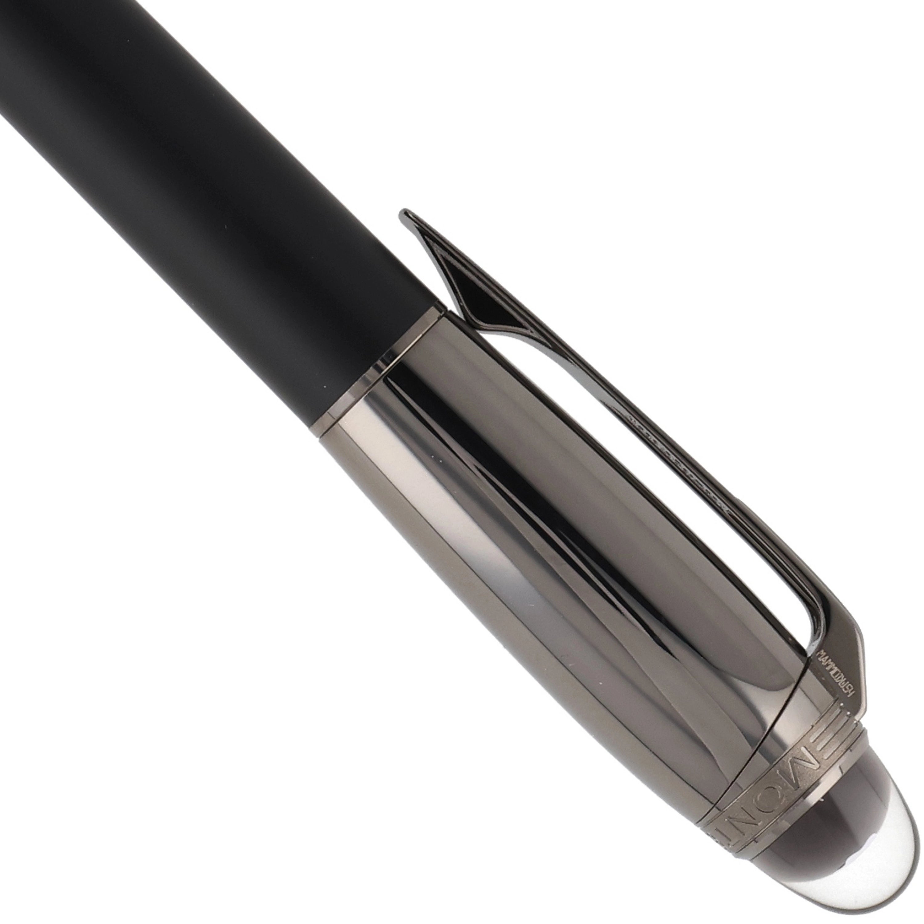 Gefertigt aus mattschwarzem Edelharz, bildet der Korpus die perfekte Basis für die mit Ruthenium beschichtete Edelstahlkappe. Die Details, darunter das Griffstück und der Clip, sind ebenfalls mit einer eleganten Ruthenium-Beschichtung versehen. Ein besonderes Highlight bildet der schwebende ,,Montblanc-Stern'' in der dunkel durchscheinenden Kuppel, das dem Schreibgerät eine unverwechselbare, moderne Note verleiht.
