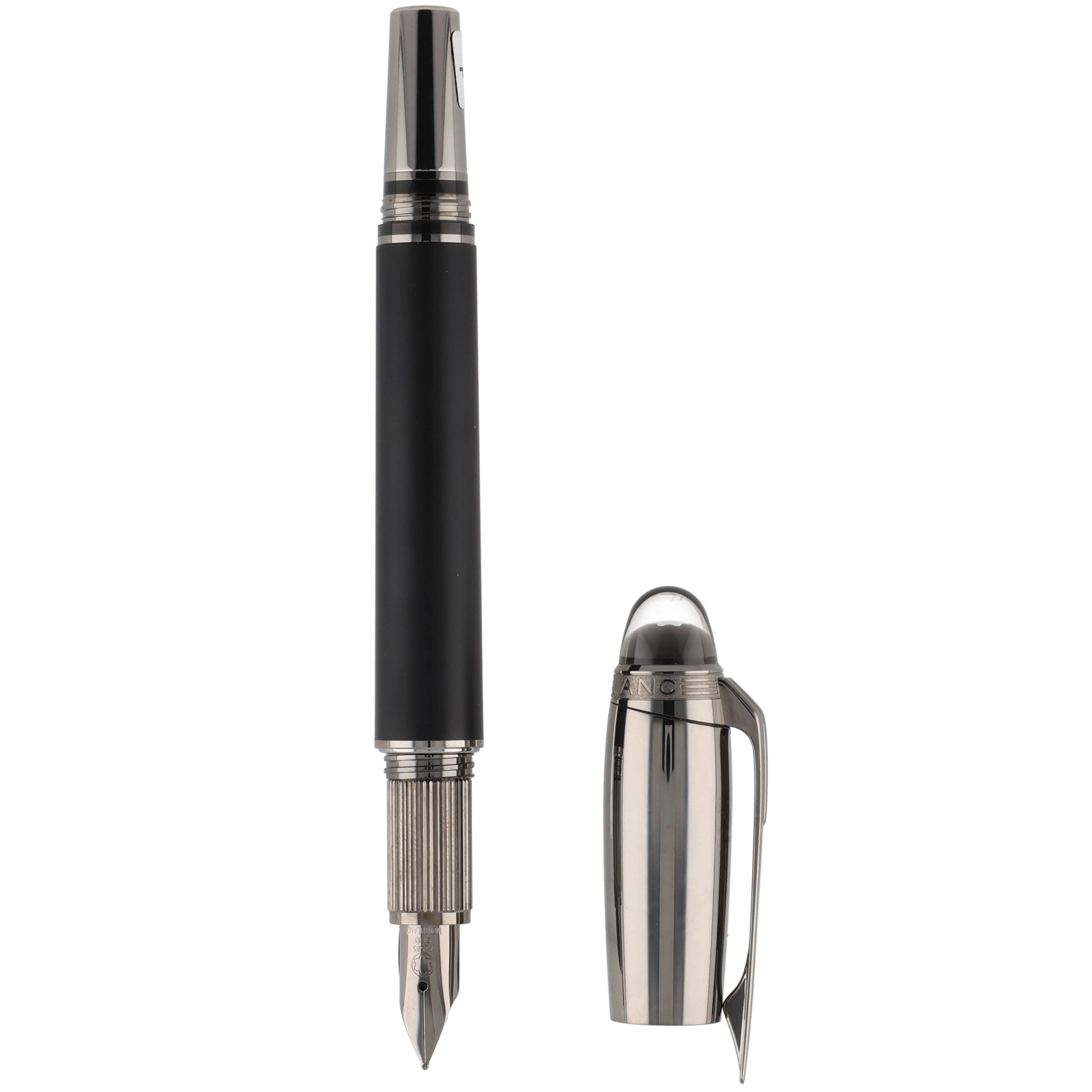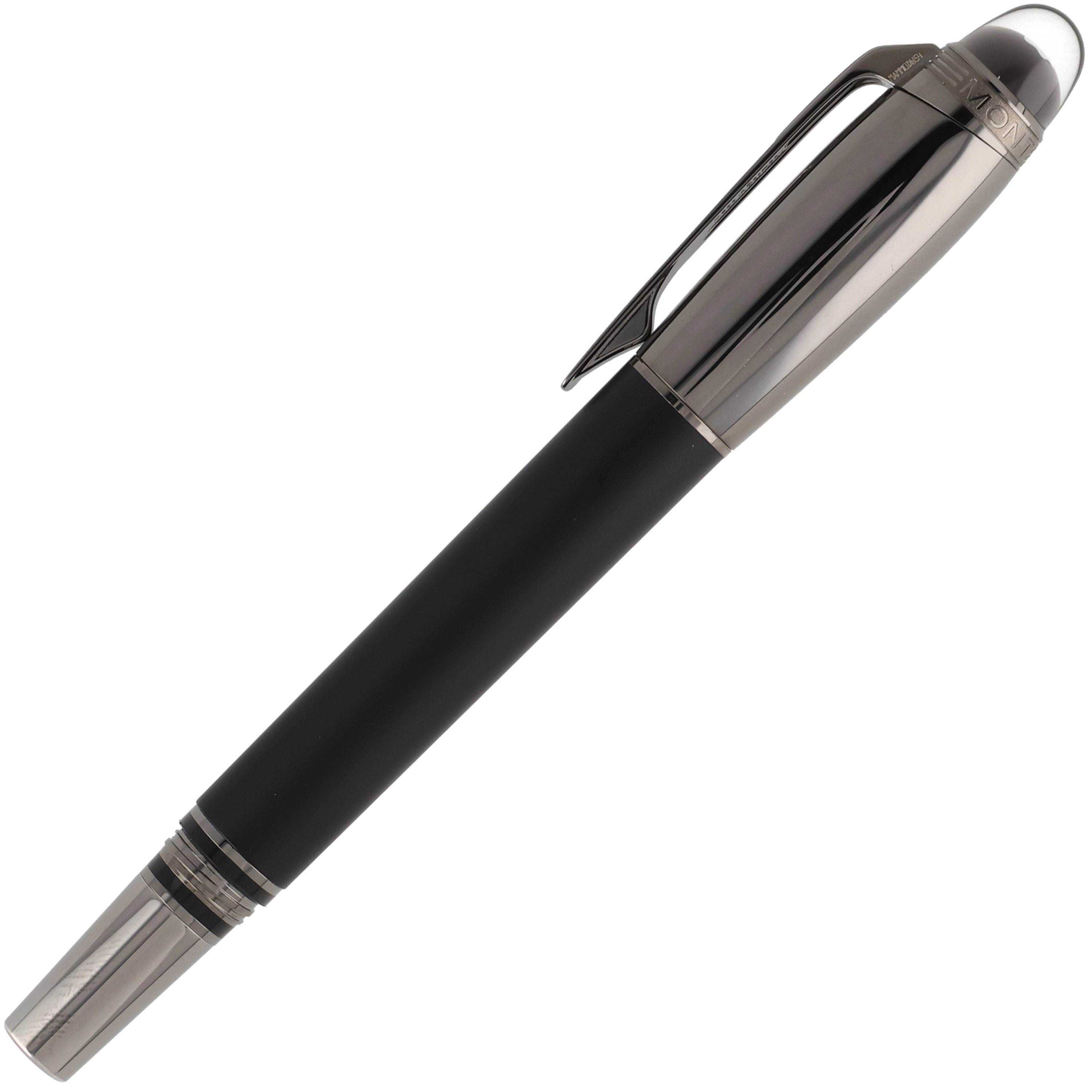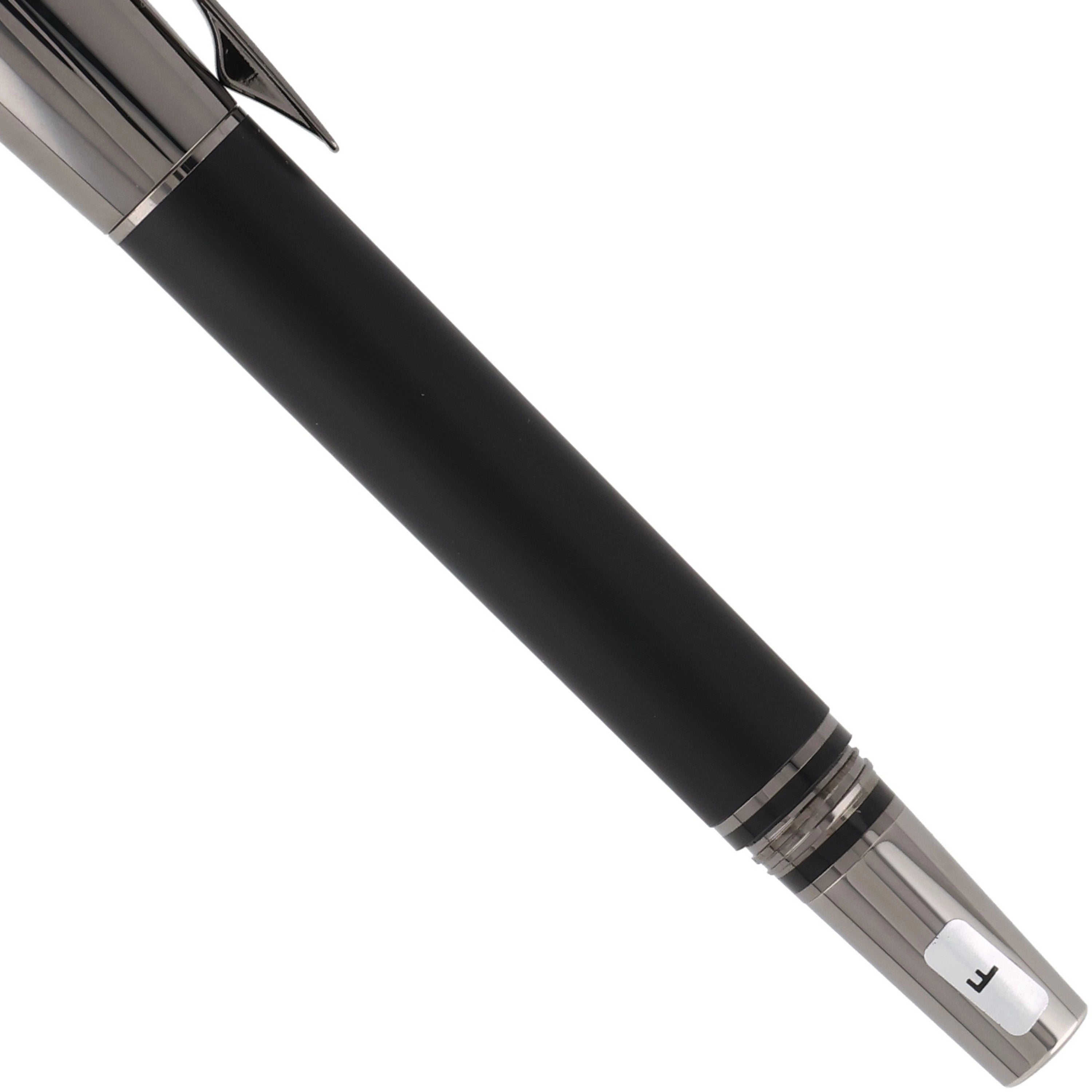 Gefertigt aus mattschwarzem Edelharz, bildet der Korpus die perfekte Basis für die mit Ruthenium beschichtete Edelstahlkappe. Die Details, darunter das Griffstück und der Clip, sind ebenfalls mit einer eleganten Ruthenium-Beschichtung versehen. Ein besonderes Highlight bildet der schwebende ,,Montblanc-Stern'' in der dunkel durchscheinenden Kuppel, das dem Schreibgerät eine unverwechselbare, moderne Note verleiht.