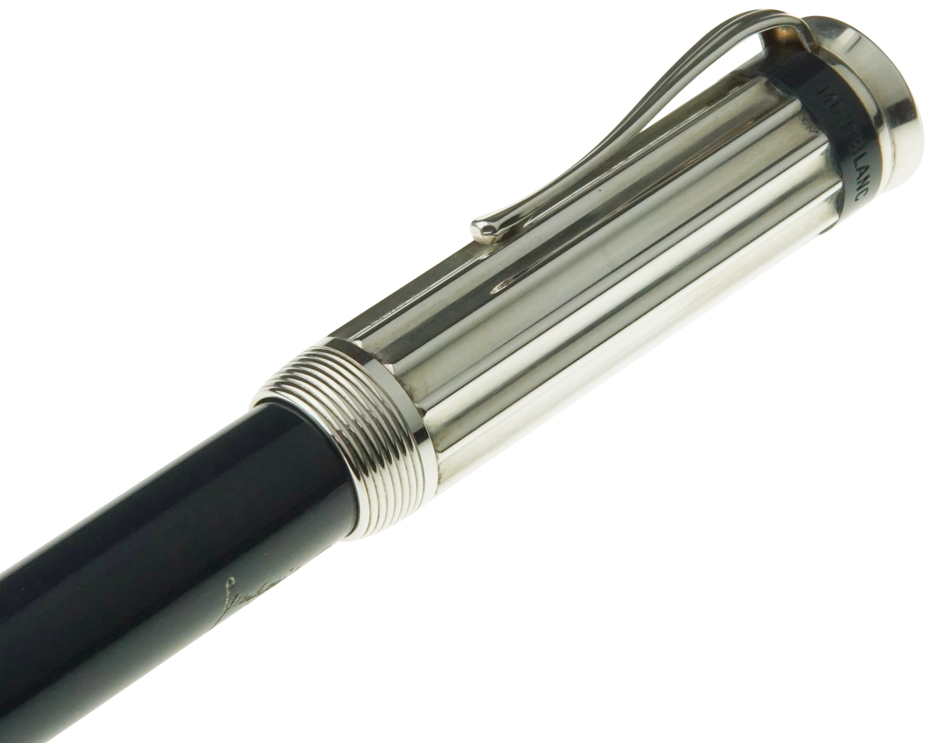 Der Korpus des Schreibers wurde aus petrolfarbenem Edelharz gefertigt und mit der Signatur des Schriftstellers veredelt. Die Kappe und die Beschläge aus edlem 925er Sterlingsilber verleihen dem Schreibgerät wiederum eine exklusive und luxuriöse Note.