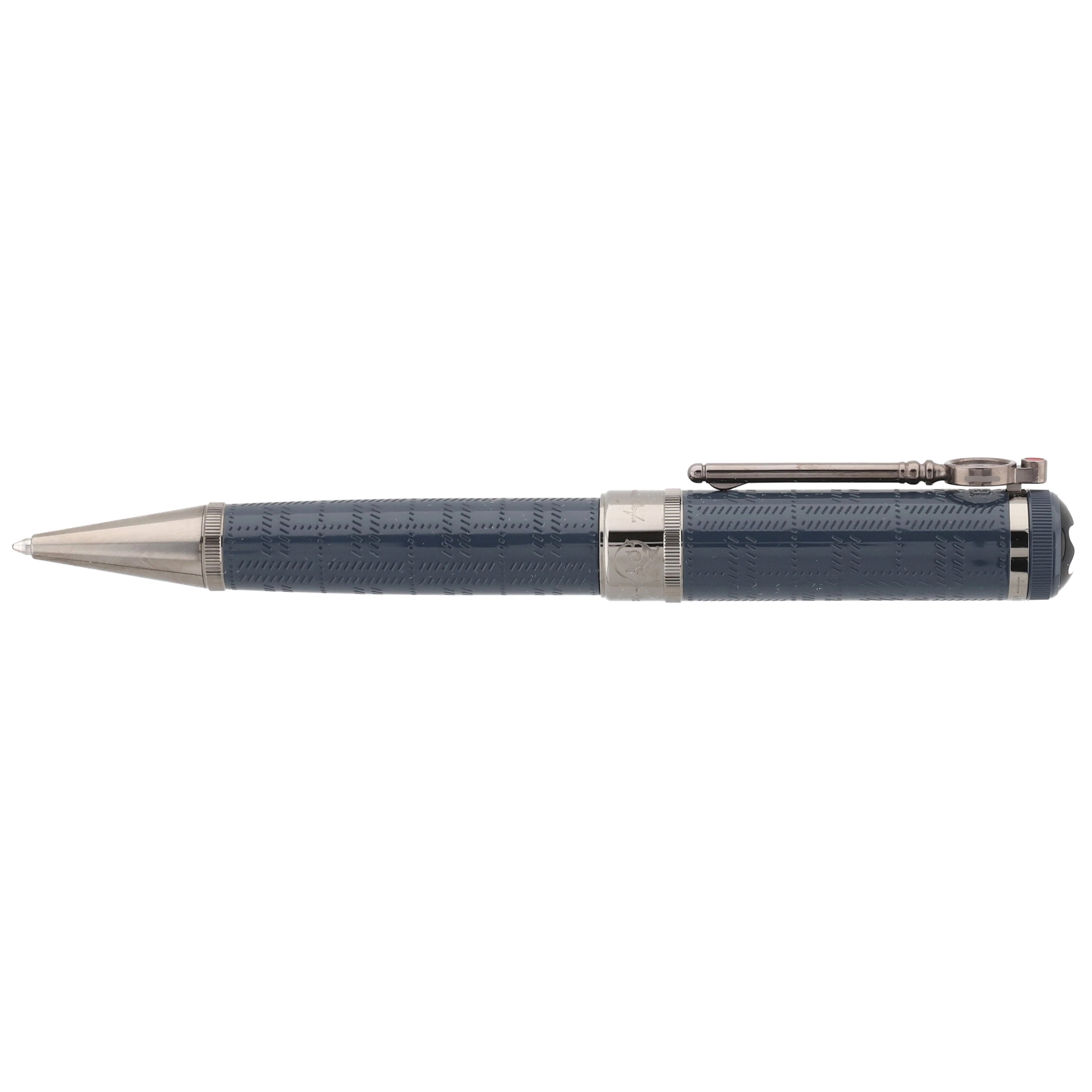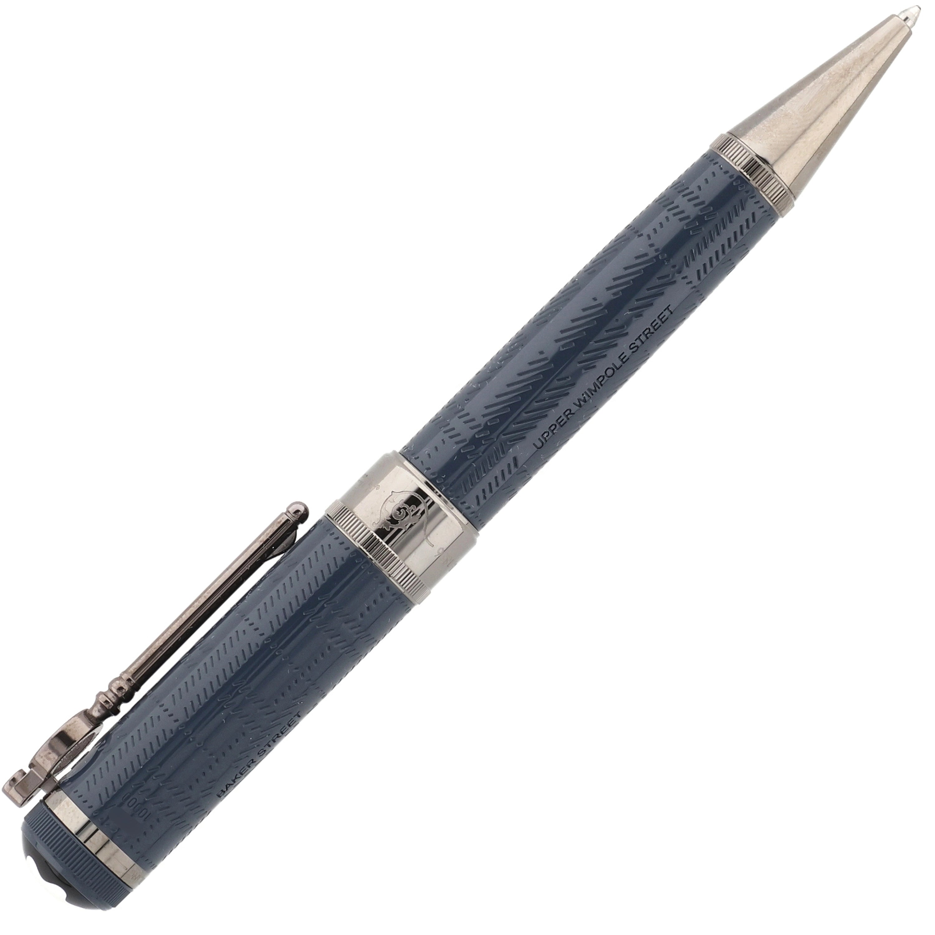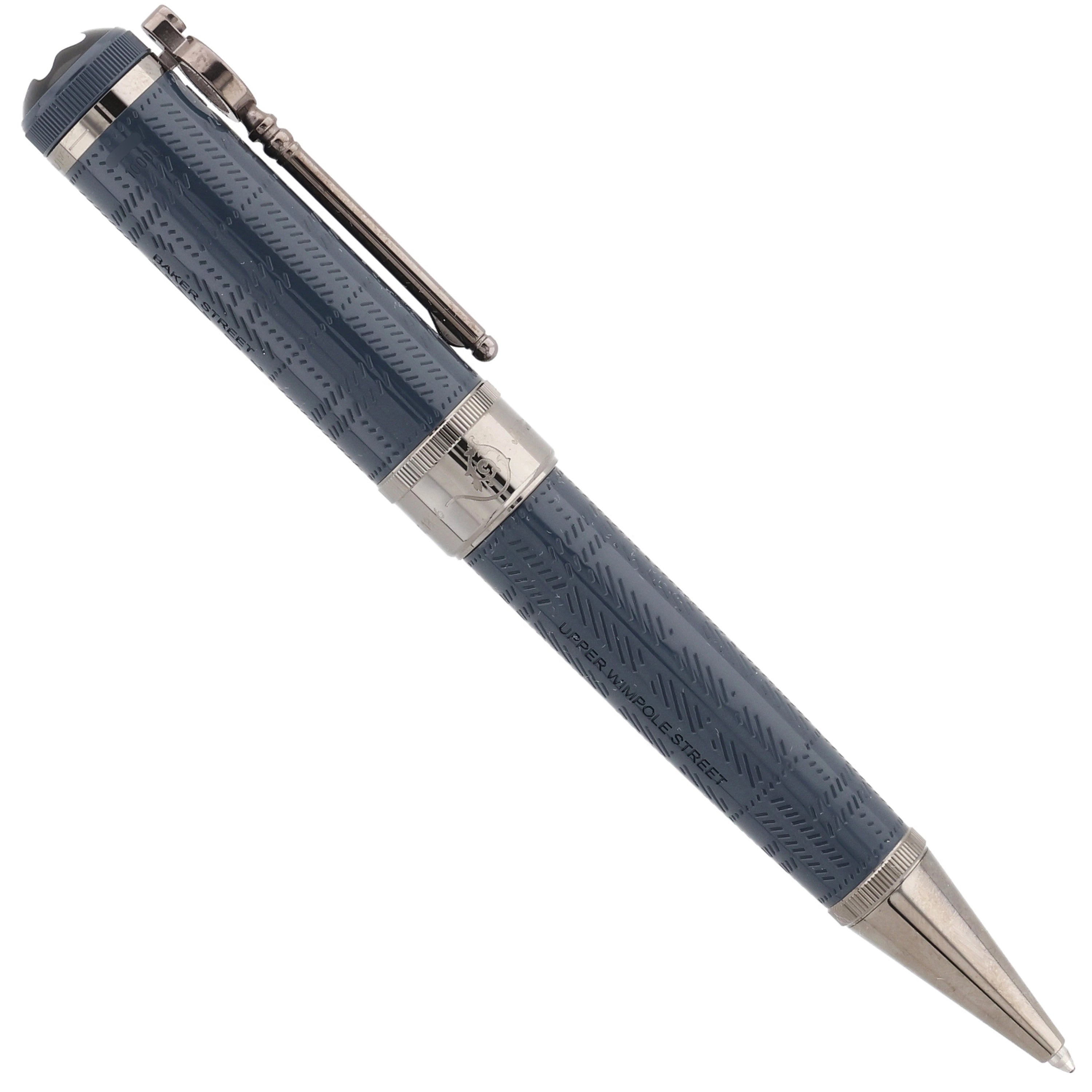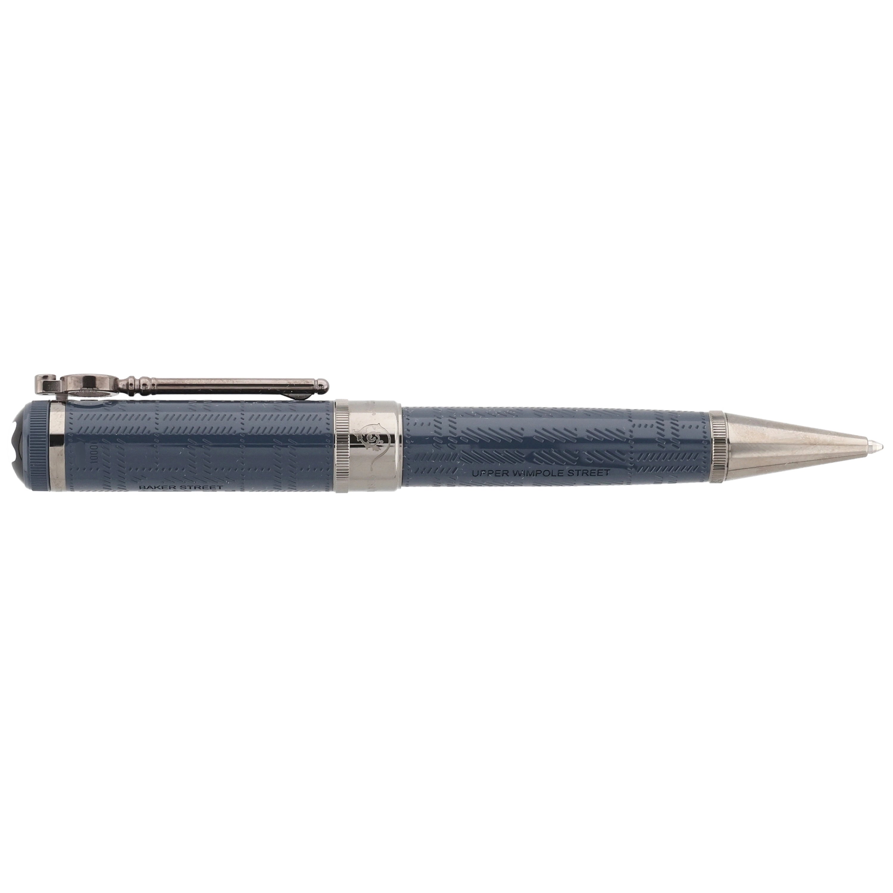 Dieses Schreibgerät besteht aus edlem blau-grauem Edelharz, dessen feine Muster die neblige Atmosphäre des viktorianischen Londons widerspiegeln. Der lupenförmige, ruthenium beschichtete Clip, die eleganten Metallbeschläge und die gravierte Unterschrift von Sir Arthur Conan Doyle würdigen den berühmten Schriftsteller und seine Sherlock-Holmes-Geschichten.