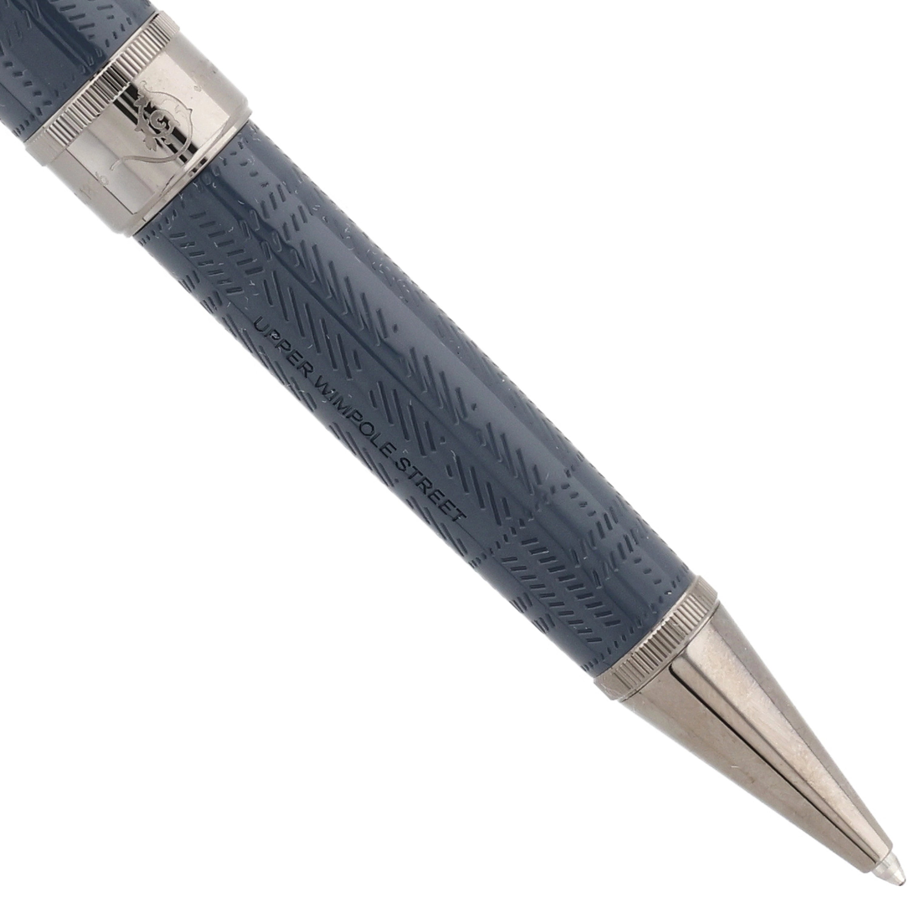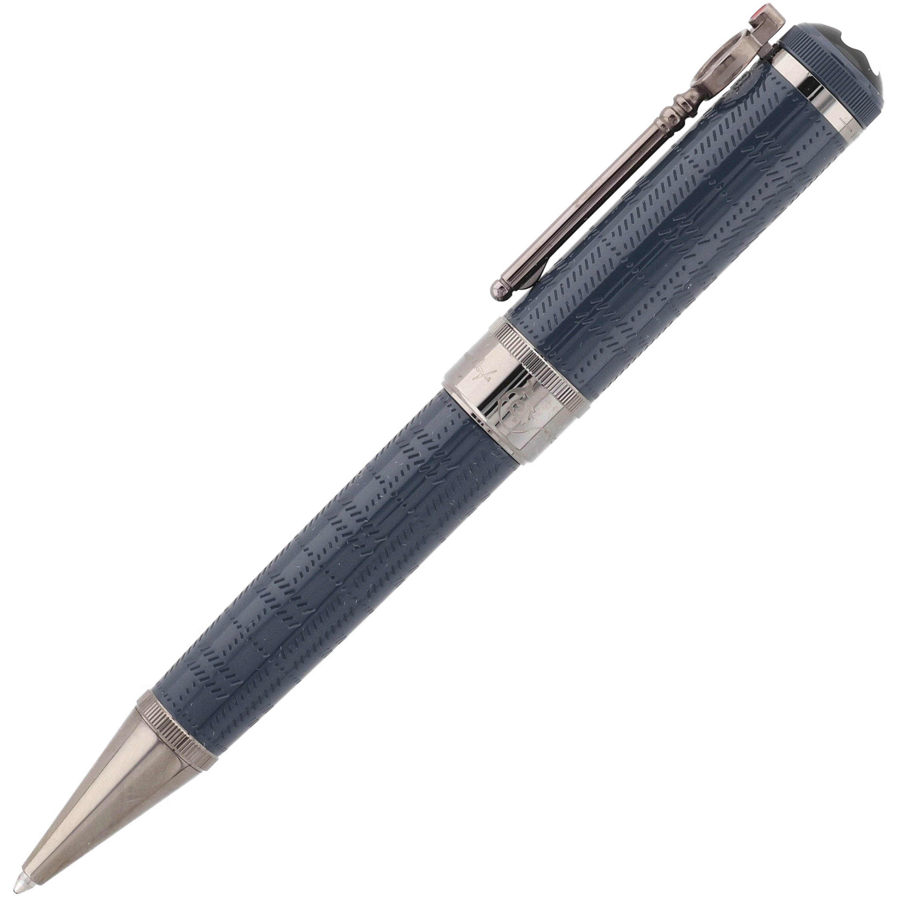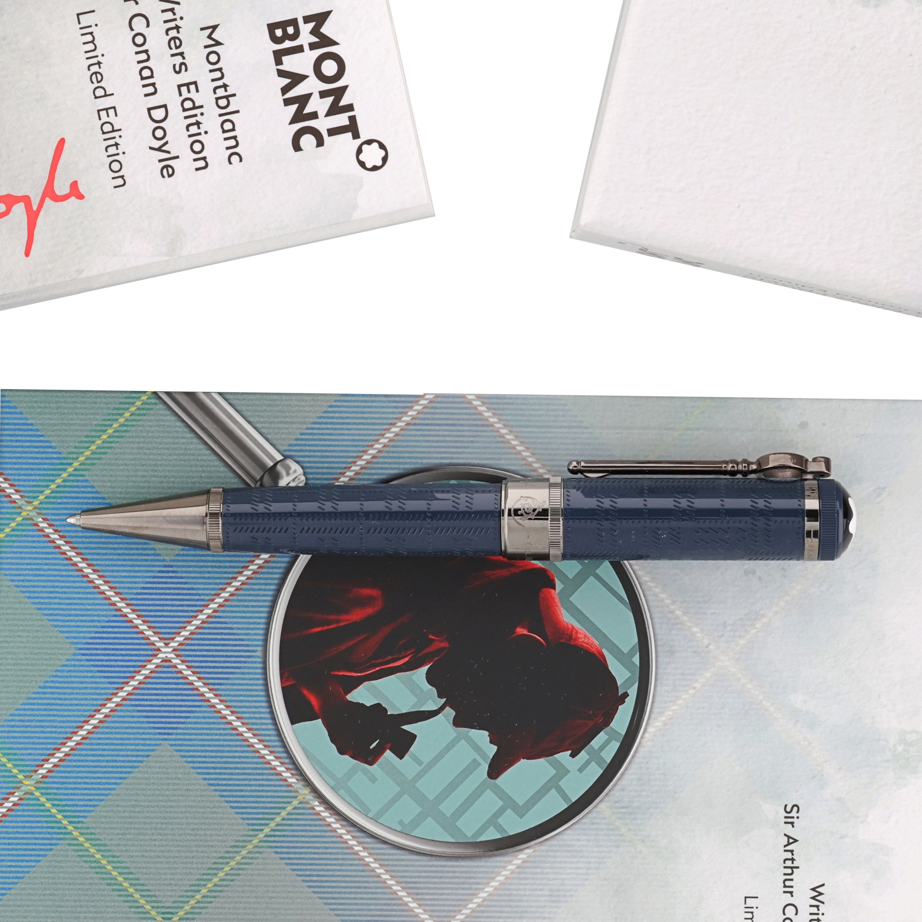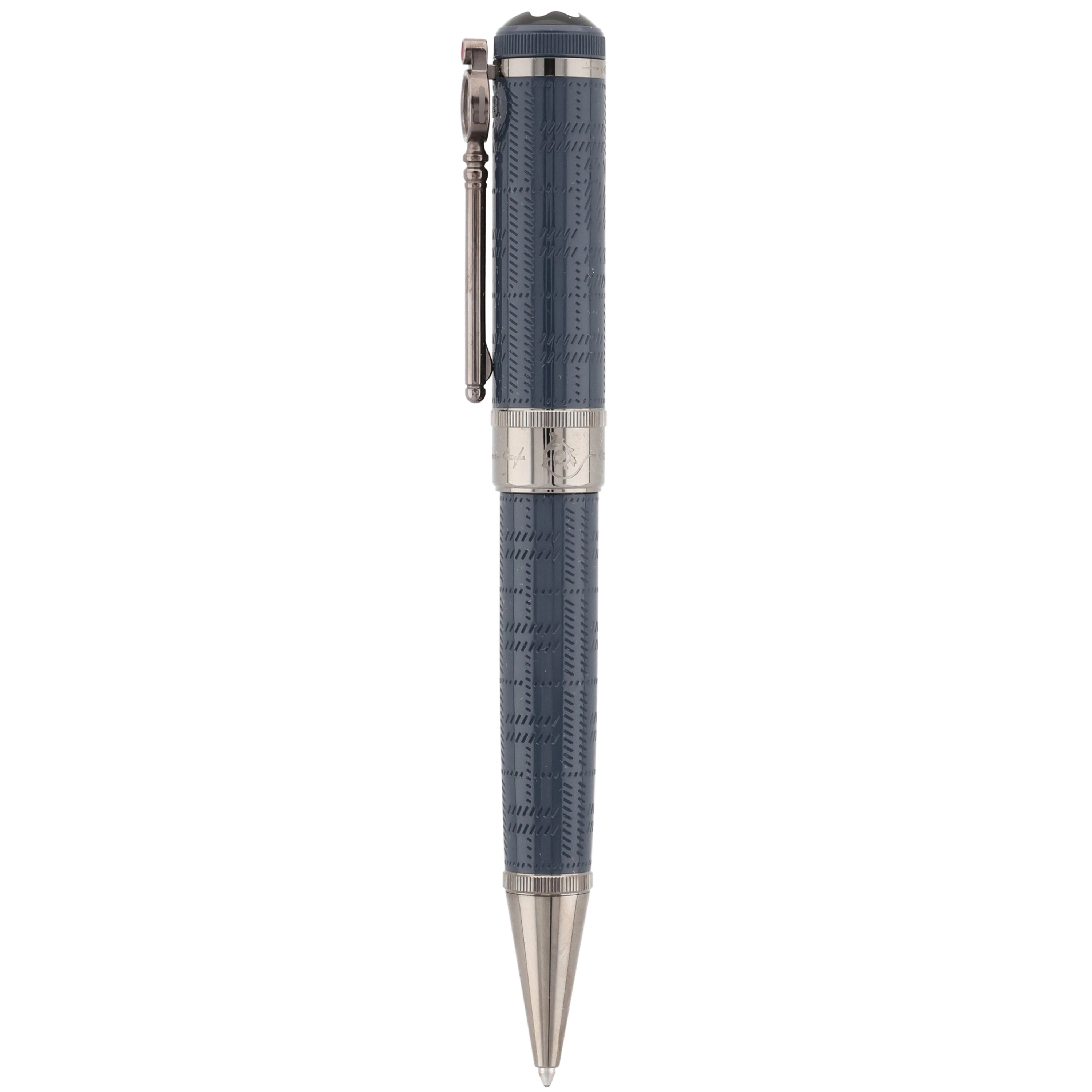 Dieses Schreibgerät besteht aus edlem blau-grauem Edelharz, dessen feine Muster die neblige Atmosphäre des viktorianischen Londons widerspiegeln. Der lupenförmige, ruthenium beschichtete Clip, die eleganten Metallbeschläge und die gravierte Unterschrift von Sir Arthur Conan Doyle würdigen den berühmten Schriftsteller und seine Sherlock-Holmes-Geschichten.