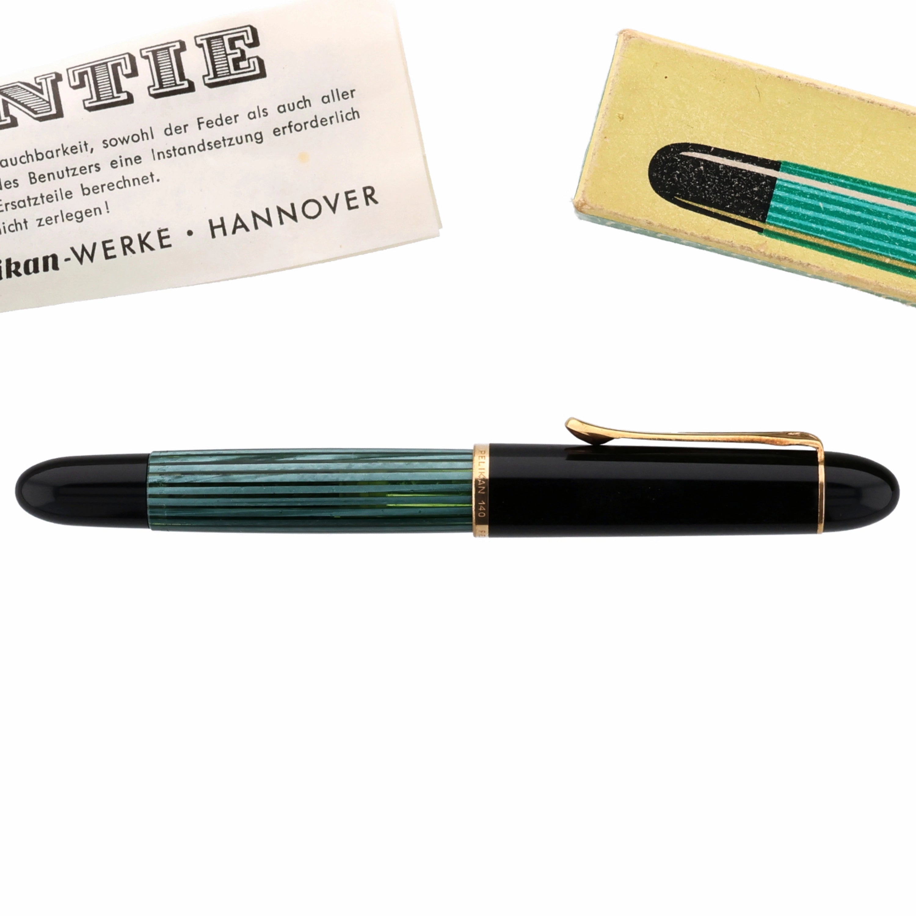 Der Pelikan 140 ist ein klassischer Füllfederhalter, der als Nachfolger des 1952 eingestellten Pelikan IBIS entwickelt wurde. Er ist häufig in grün gestreifter Ausführung zu finden und wurde unter verschiedenen Herstellernamen, z.B. RUF-Buchhaltung, produziert – oft ohne Hinweise auf Pelikan. Zudem gab es Versionen nach Kundenwunsch, was die Modellvielfalt erhöht. Während der Produktion wurden mehrere Design- und Technikänderungen vorgenommen, die anhand von etwa 50 Füllhaltern datiert wurden. Der Pelikan 140 gilt als bedeutendes Modell in der Geschichte der Marke.