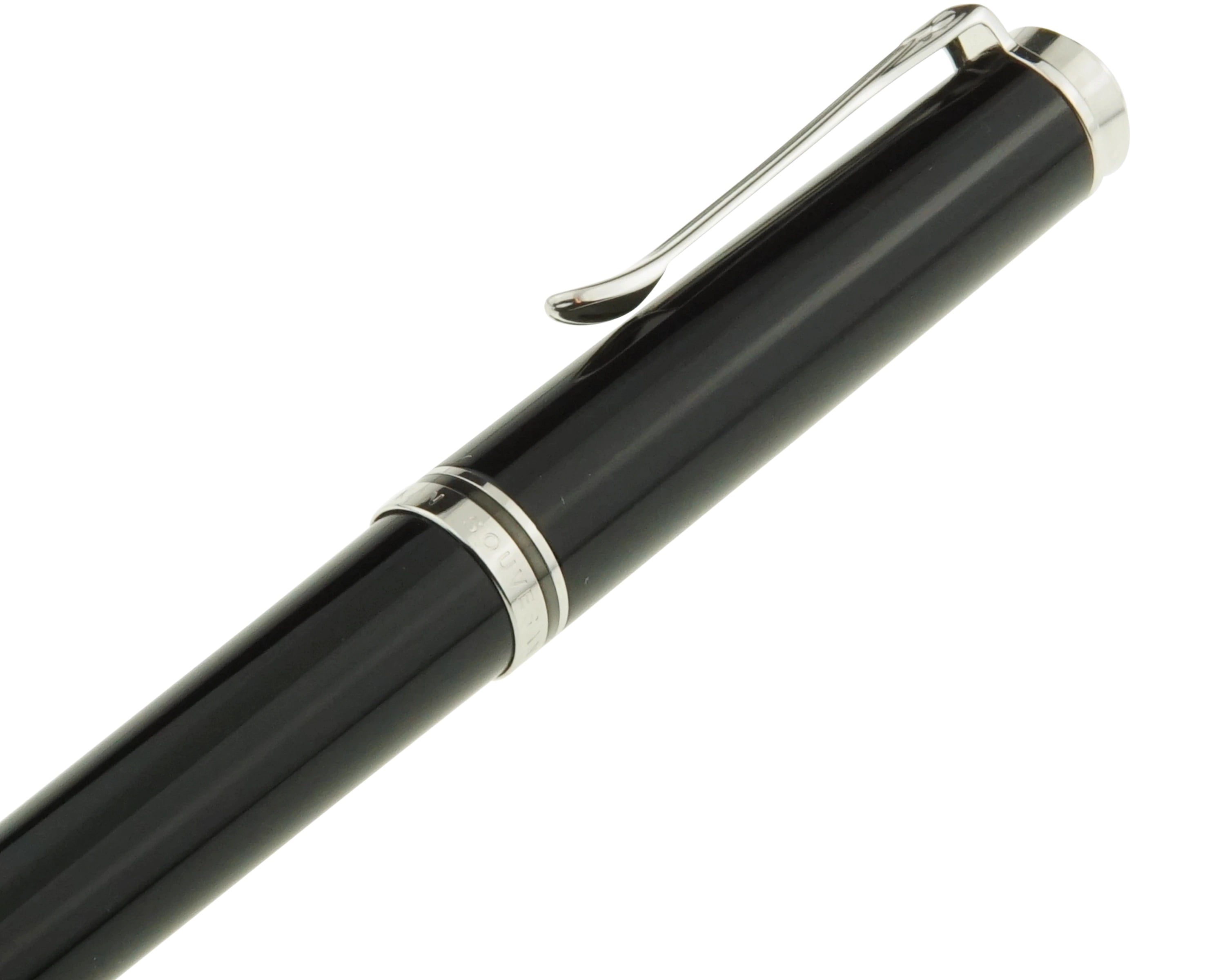 Gefertigt aus schwarzem Edelharz und ergänzt durch fein ausgearbeitete Details aus Edelstahl, besticht dieses Schreibgerät durch seine zurückhaltende Eleganz. Der cliptypische Pelikan-Schnabel rundet das Erscheinungsbild ab und verleiht dem klassischen Design eine charakteristische Note.