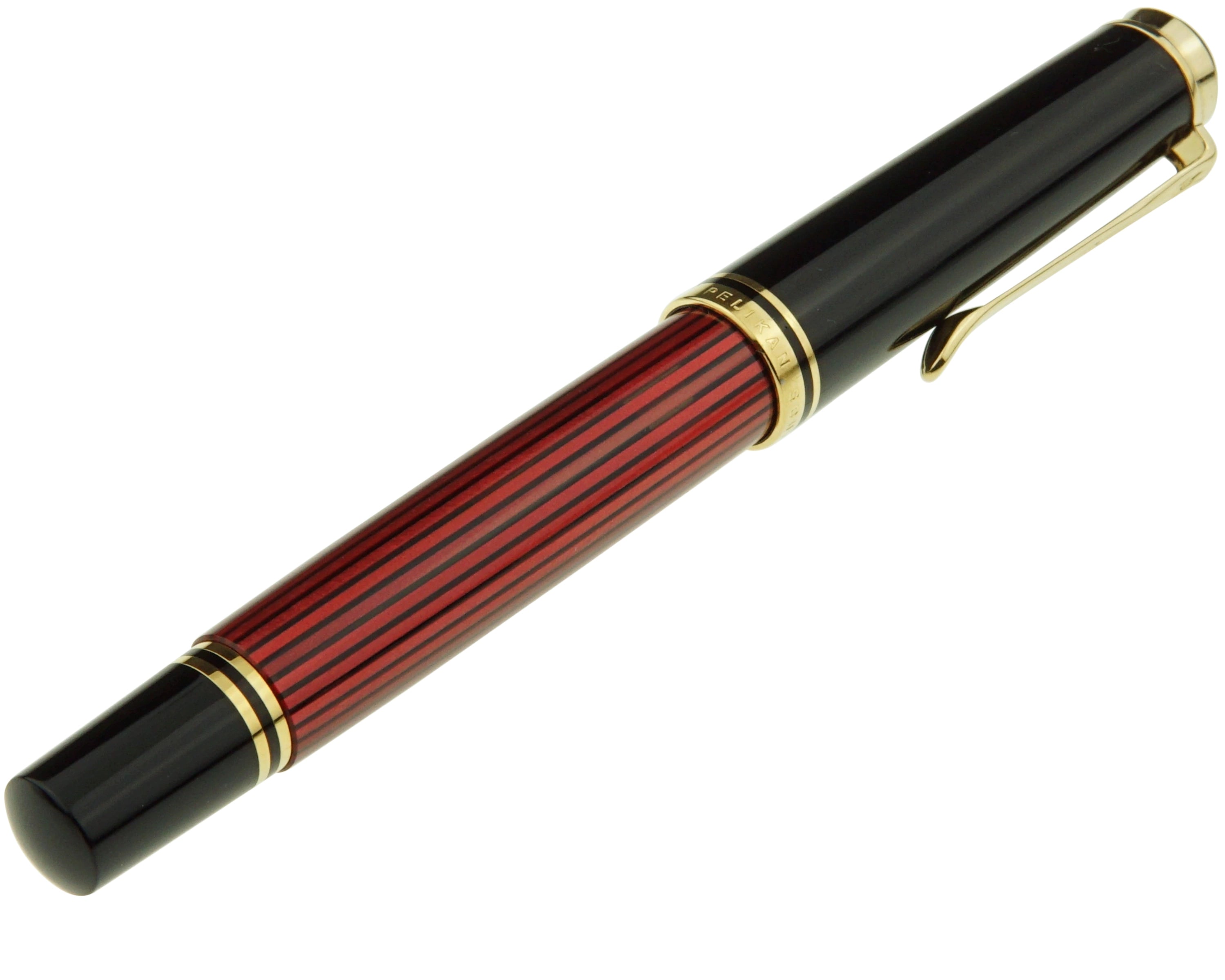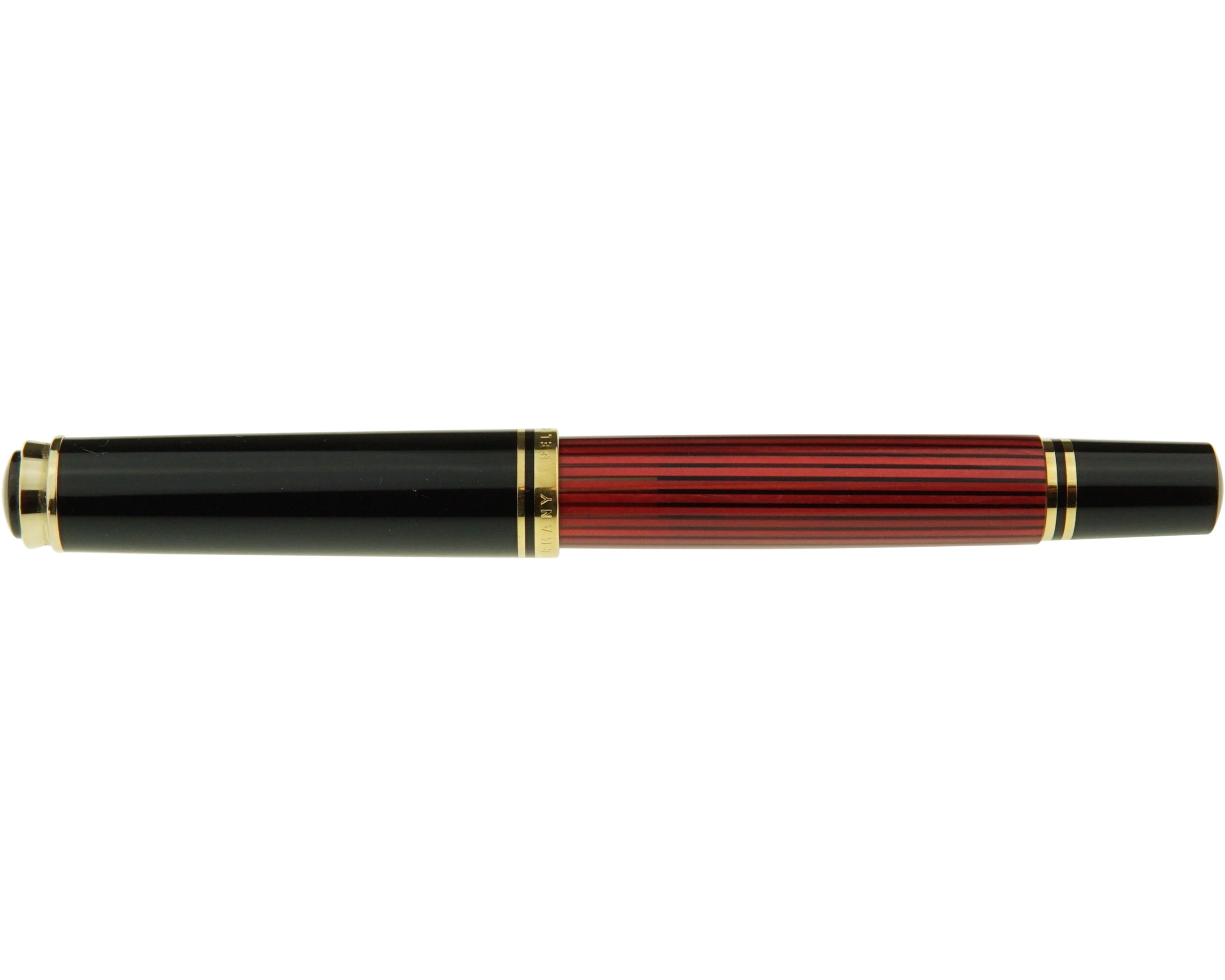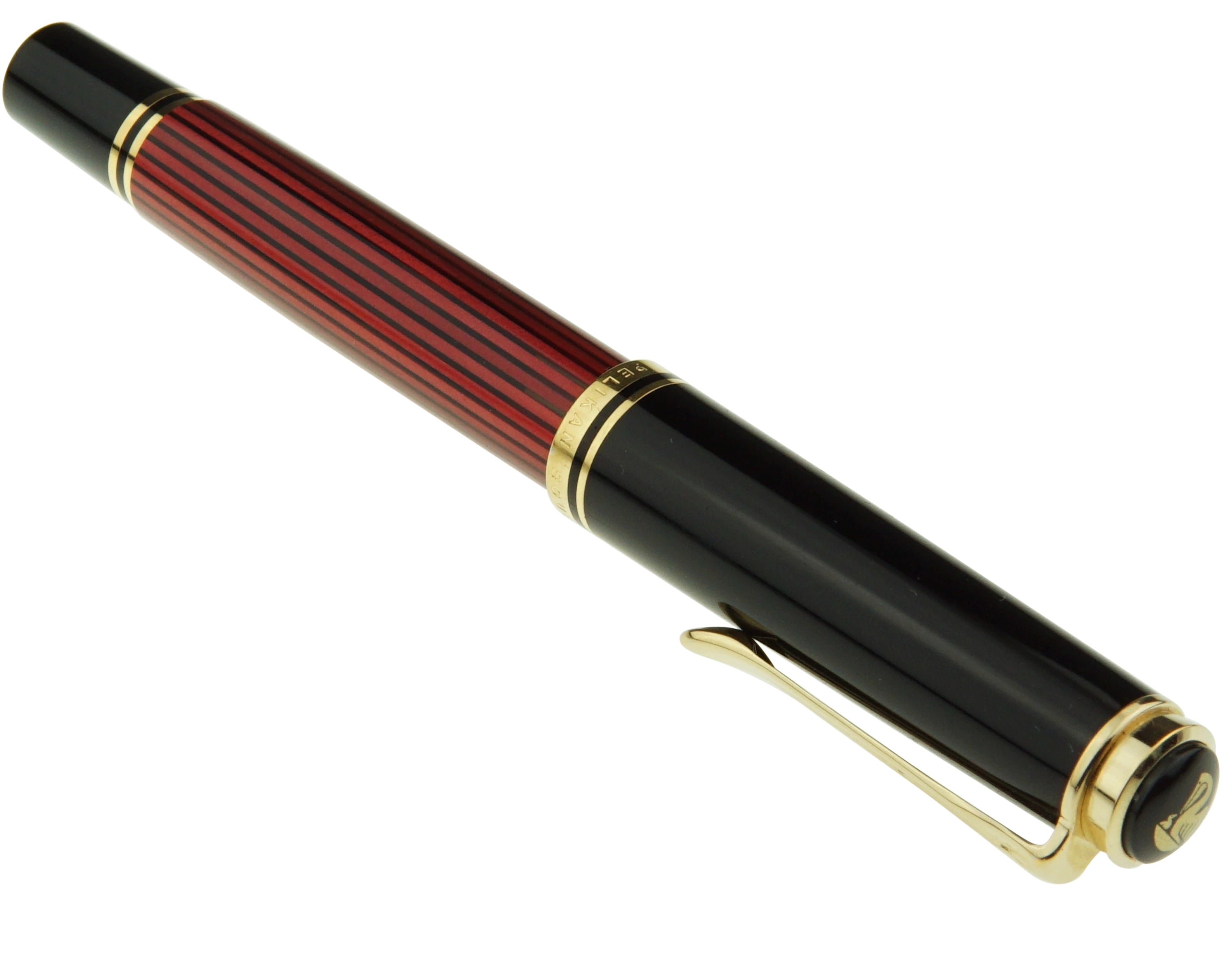 Gefertigt aus Edelharz mit dem einzigartigen schwarz-rot gestreiften Muster und ergänzt durch fein ausgearbeitete Details aus Edelstahl mit einer edlen Goldbeschichtung, besticht dieses Schreibgerät durch seine zurückhaltende Eleganz. Der cliptypische Pelikan-Schnabel rundet das Erscheinungsbild ab und verleiht dem klassischen Design eine charakteristische Note.