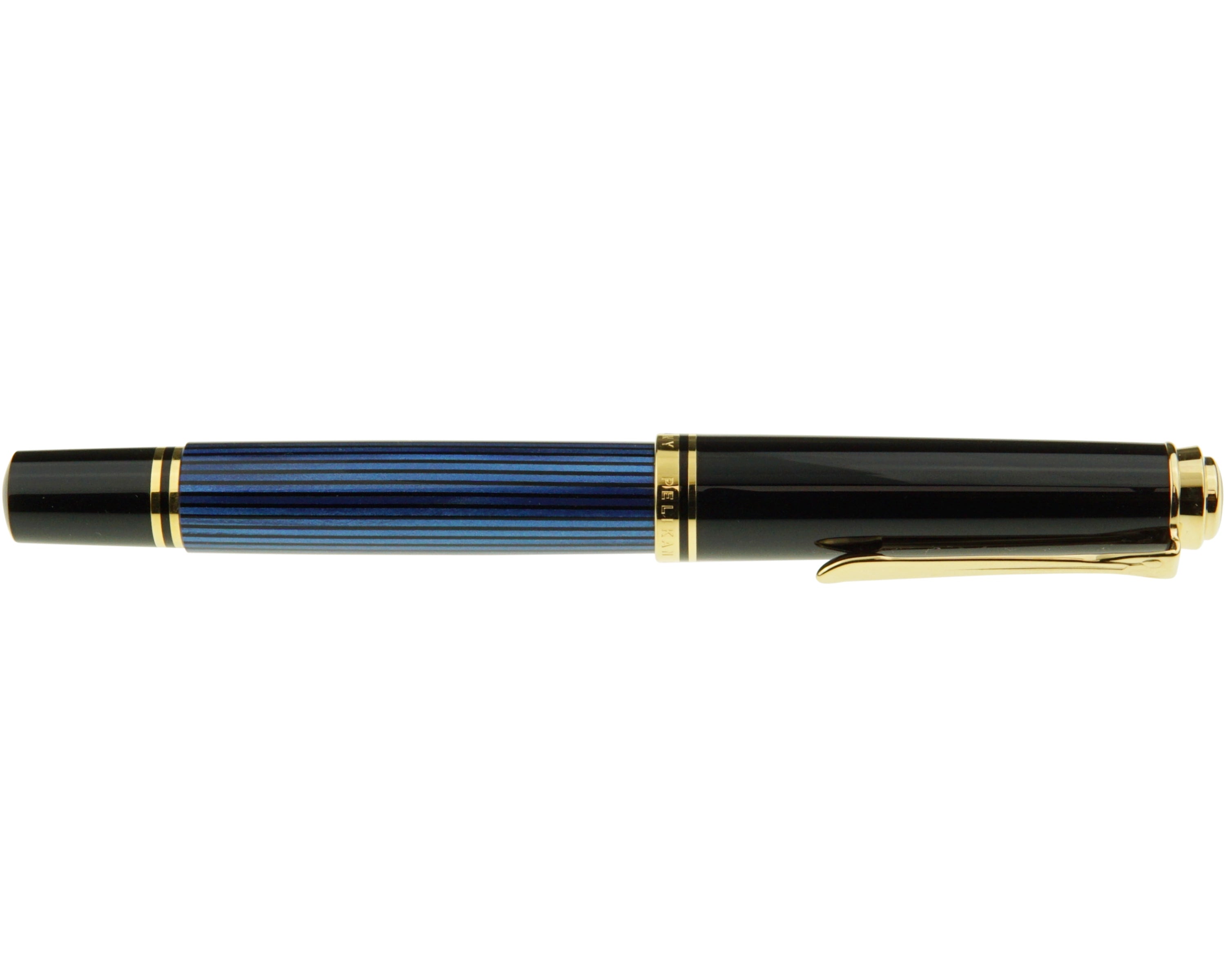 Gefertigt aus Edelharz mit dem einzigartigen schwarz-blau gestreiften Muster und ergänzt durch fein ausgearbeitete Details aus Edelstahl mit einer edlen Goldbeschichtung, besticht dieses Schreibgerät durch seine zurückhaltende Eleganz. Der cliptypische Pelikan-Schnabel rundet das Erscheinungsbild ab und verleiht dem klassischen Design eine charakteristische Note.